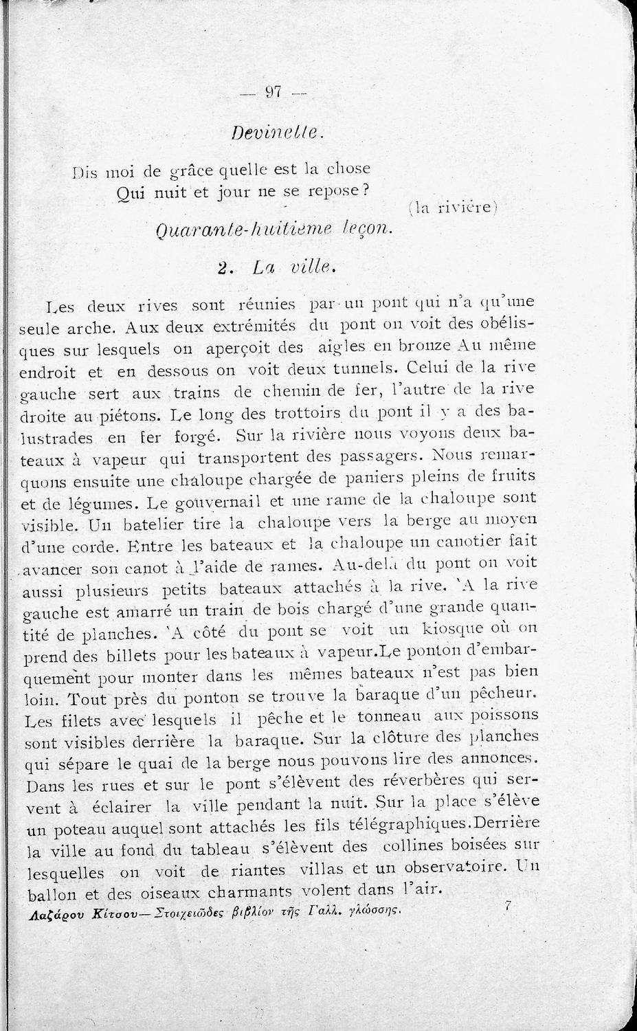 Τίτλος: Στοιχειώδες βιβλίον της γαλλικής γλώσσης δια την Β΄ και Γ΄ τάξιν των Ελληνικών Σχολείων και τας αντιστοίχους τάξεις των Αστικών Σχολείων και Παρθεναγωγείων