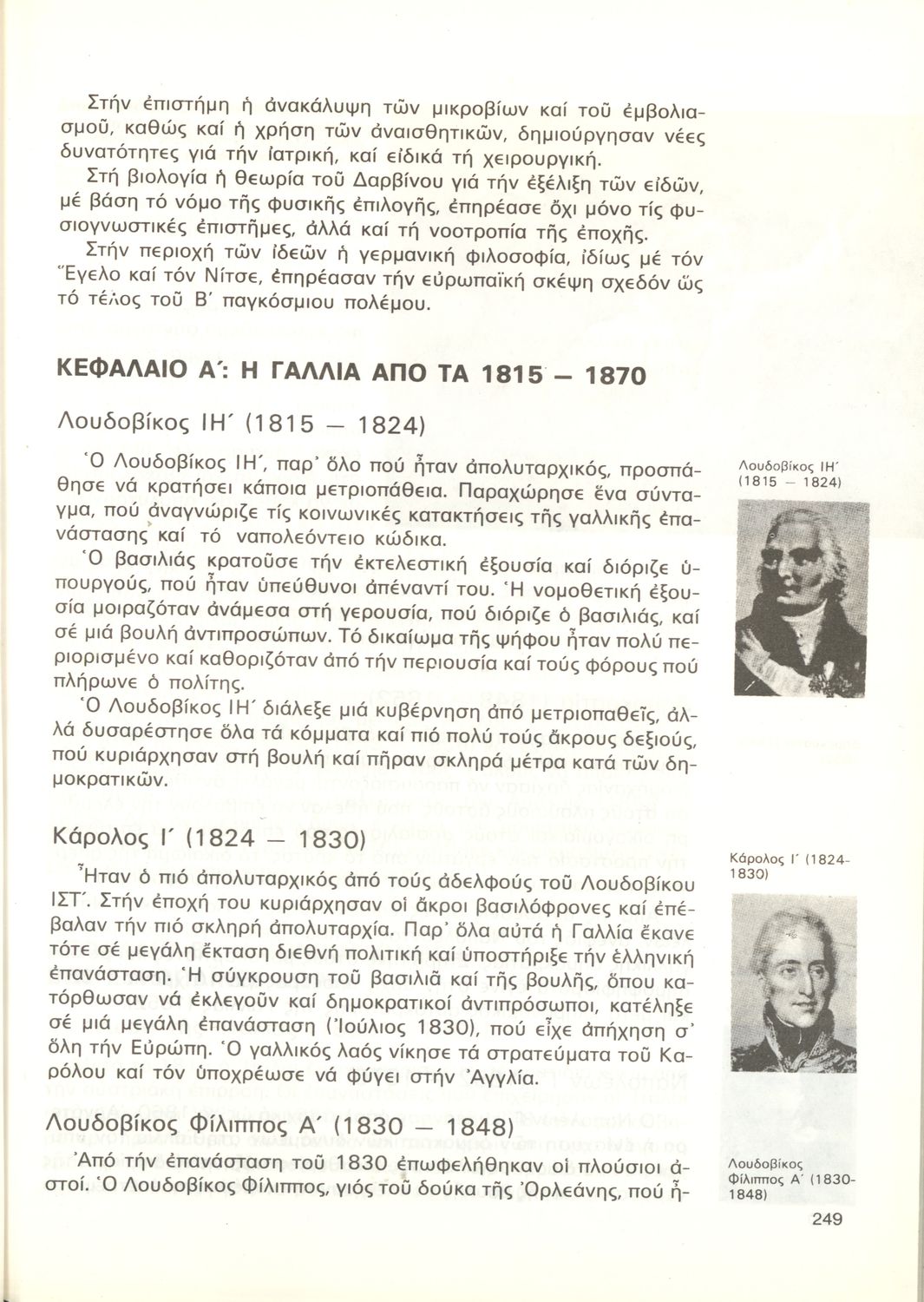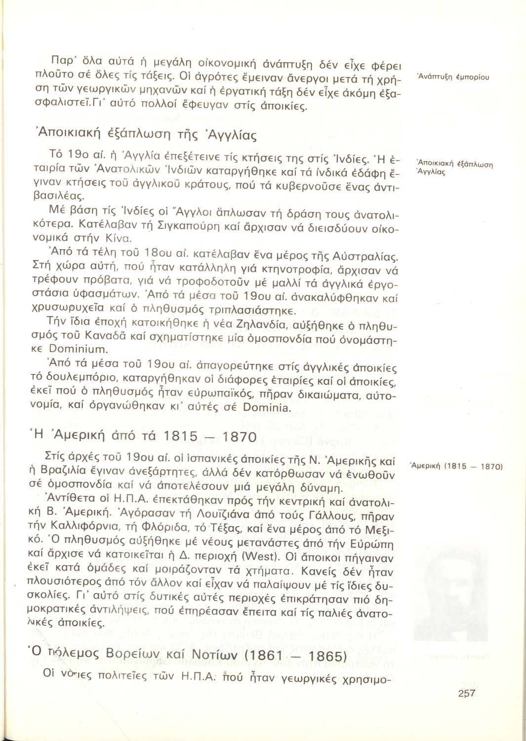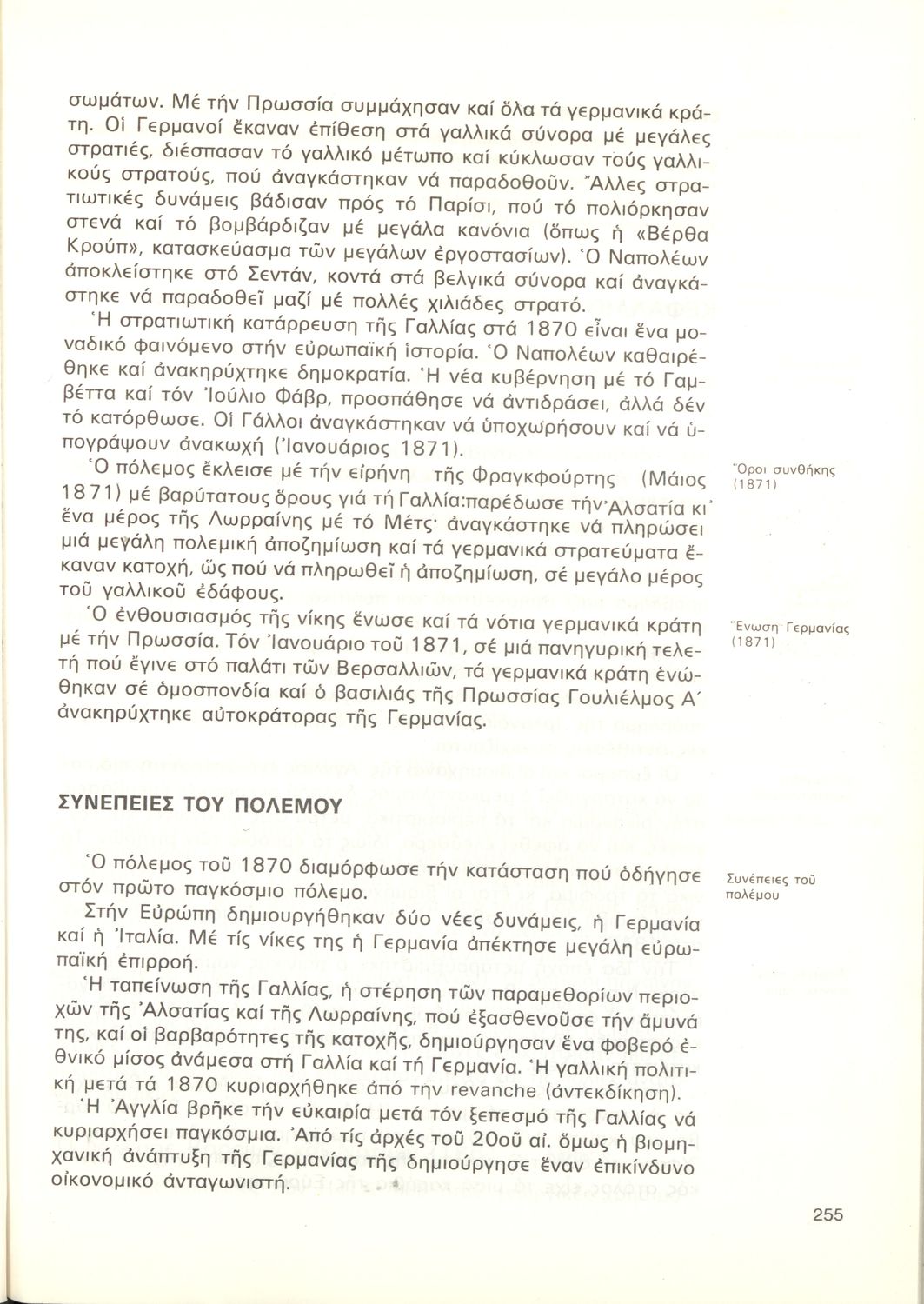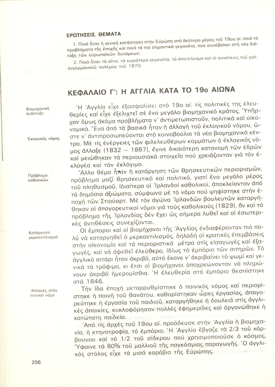 Σχολικό εγχειρίδιο της Γ΄ Γυμνασίου για το μάθημα της Ιστορίας. Καλύπτει την ευρωπαϊκή ιστορία από το Συνέδριο της Βιέννης, την περίοδο της Αναγέννησης του διαφωτισμού και τα επιτεύγματά τους. Συνεχίζει με την Γαλλική Επανάσταση, τους Ναπολεόντειους πολέμους, την προεπαναστατική περίοδο για τους Έλληνες, την Επανάσταση του 1821. Συνεχίζει με τα ιστορικά γεγονότα και τα ζητήματα που απασχολούσαν το ανεξάρτητο ελληνικό κράτος, τη Μ. Ιδέα, τους Βαλκανικούς, τον Α΄ Παγκόσμιο, τη Μικρασιατική Καταστροφή και φτάνει μέχρι τον Β΄ Παγκόσμιο. Τα τελευταία ιστορικά γεγονότα παρουσιάζονται συνοπτικά.