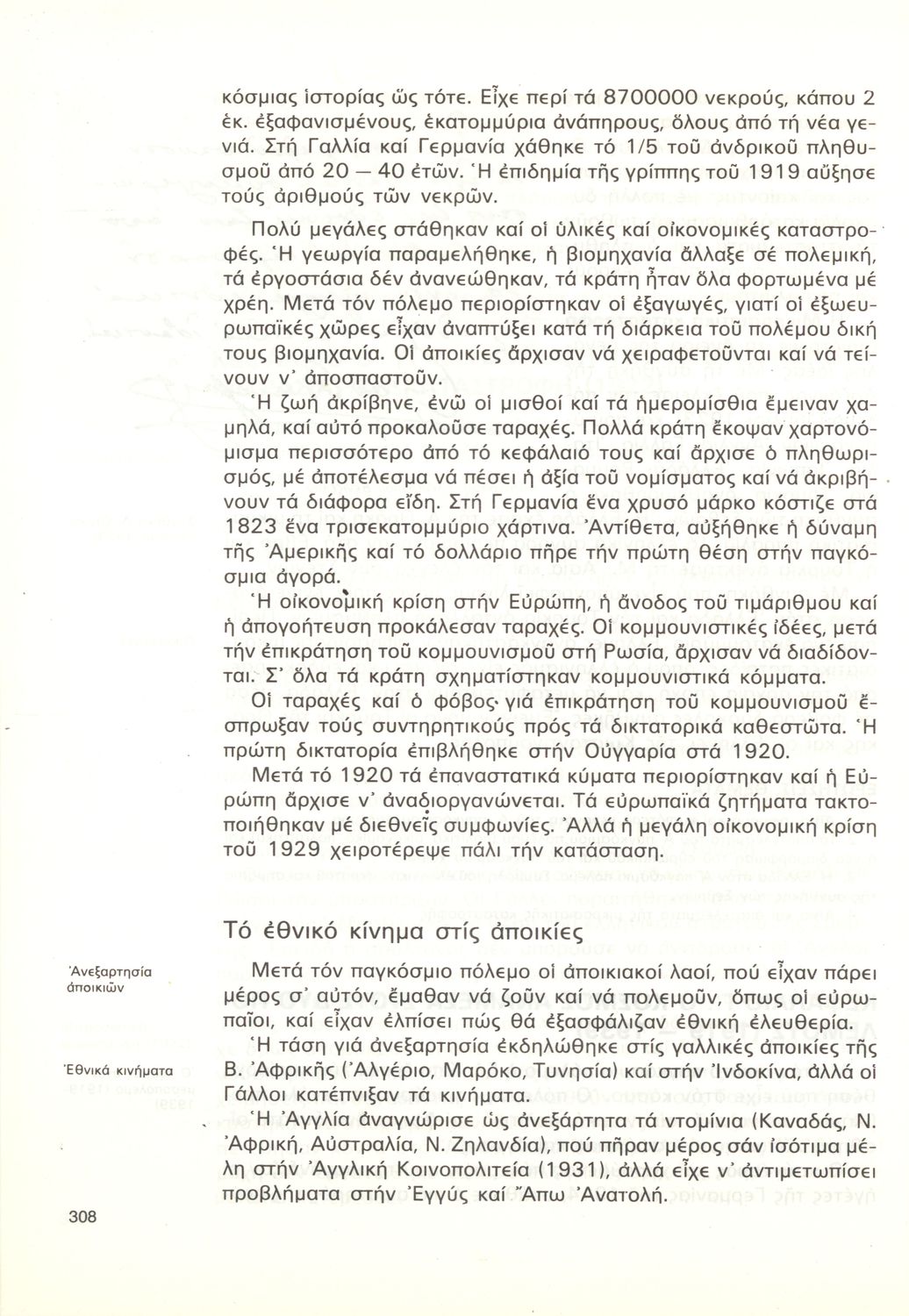Σχολικό εγχειρίδιο της Γ΄ Γυμνασίου για το μάθημα της Ιστορίας. Καλύπτει την ευρωπαϊκή ιστορία από το Συνέδριο της Βιέννης, την περίοδο της Αναγέννησης του διαφωτισμού και τα επιτεύγματά τους. Συνεχίζει με την Γαλλική Επανάσταση, τους Ναπολεόντειους πολέμους, την προεπαναστατική περίοδο για τους Έλληνες, την Επανάσταση του 1821. Συνεχίζει με τα ιστορικά γεγονότα και τα ζητήματα που απασχολούσαν το ανεξάρτητο ελληνικό κράτος, τη Μ. Ιδέα, τους Βαλκανικούς, τον Α΄ Παγκόσμιο, τη Μικρασιατική Καταστροφή και φτάνει μέχρι τον Β΄ Παγκόσμιο. Τα τελευταία ιστορικά γεγονότα παρουσιάζονται συνοπτικά.