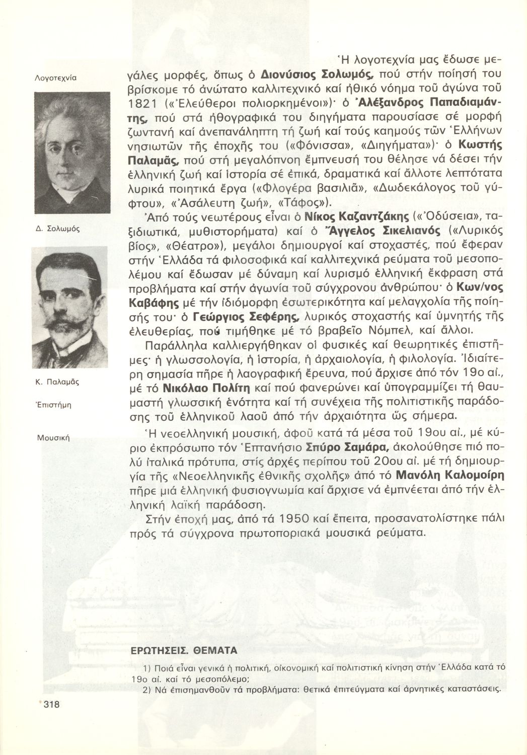 Σχολικό εγχειρίδιο Νέων Ελληνικών Γ΄ Γυμνασίου και Α' Αστικού Σχολείου που περιέχει πεζά και ποιήματα Ελλήνων συγγραφέων εμπνευσμένα από τη θρησκευτική και κοινωνική ζωή, την ελληνική μυθολογία, την αρχαία και