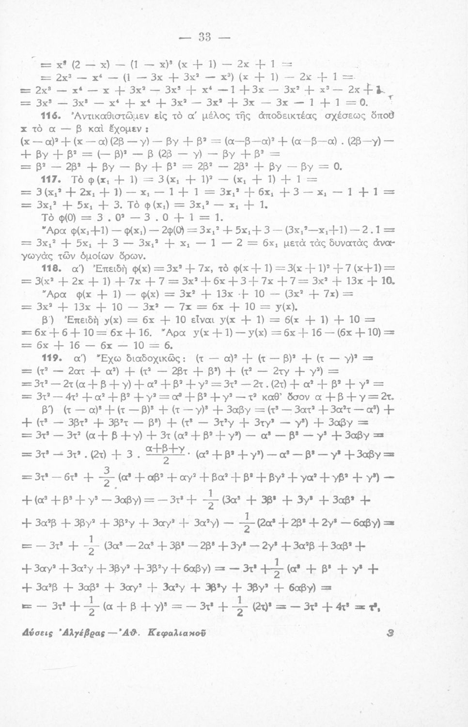 Σχολικό εγχειρίδιο Μαθηματικών Γυμνασίου που είναι χωρισμένο σε θεωρήματα, παραδείγματα και ασκήσεις και περιλαμβάνει στοιχεία Ανώτερης Άλγεβρας και Μαθηματικής Ανάλυσης.