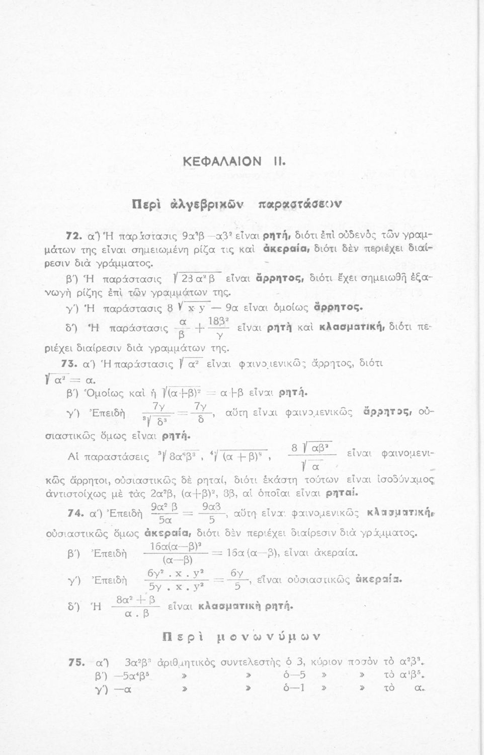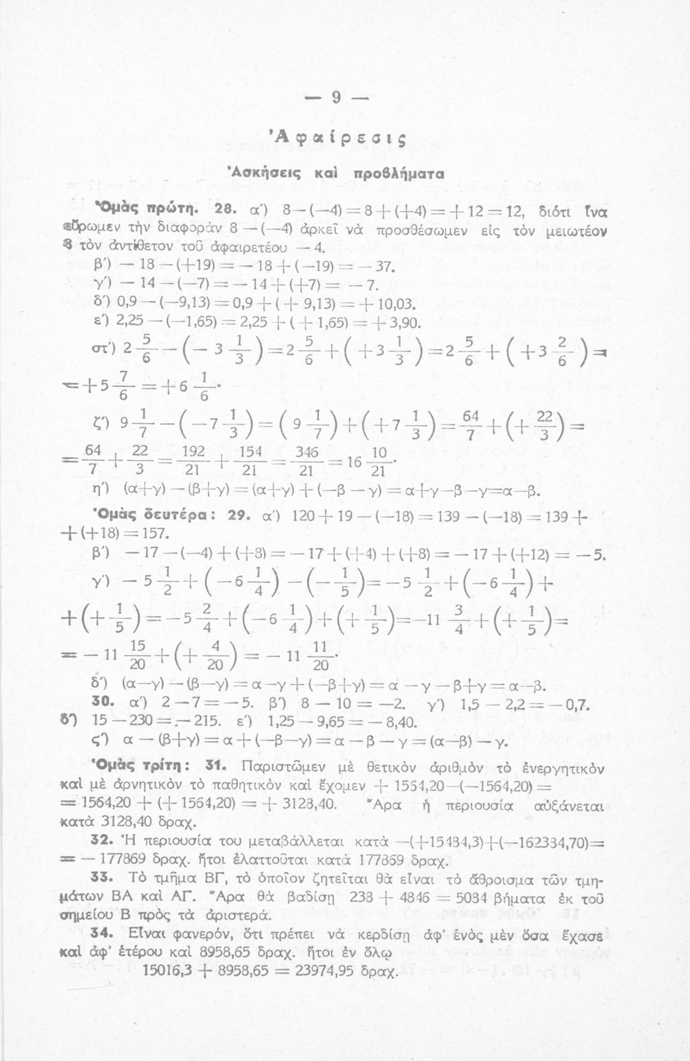 Σχολικό εγχειρίδιο Μαθηματικών Γυμνασίου που είναι χωρισμένο σε θεωρήματα, παραδείγματα και ασκήσεις και περιλαμβάνει στοιχεία Ανώτερης Άλγεβρας και Μαθηματικής Ανάλυσης.