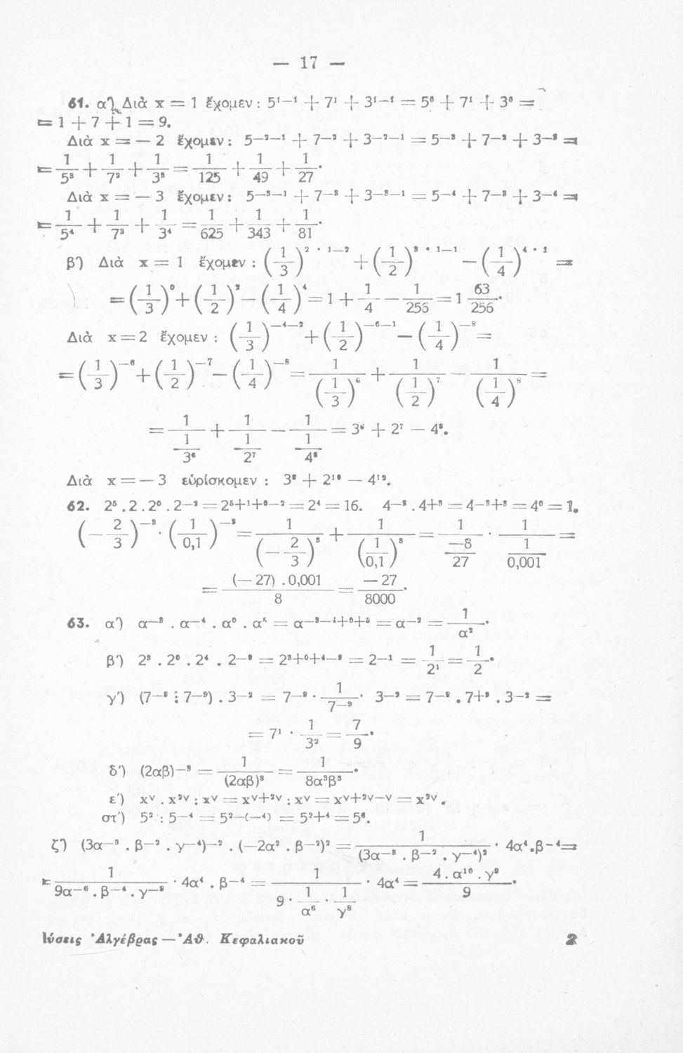 Λύσεις Άλγεβρας Ο.Ε.Σ.Β. τεύχος Α΄
