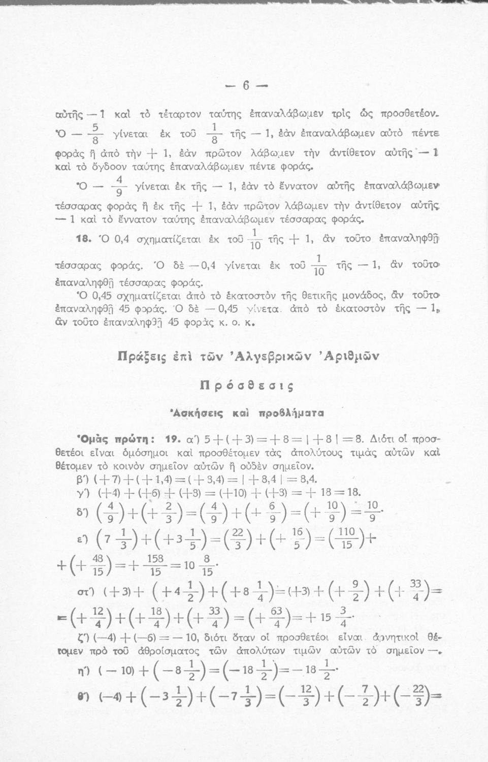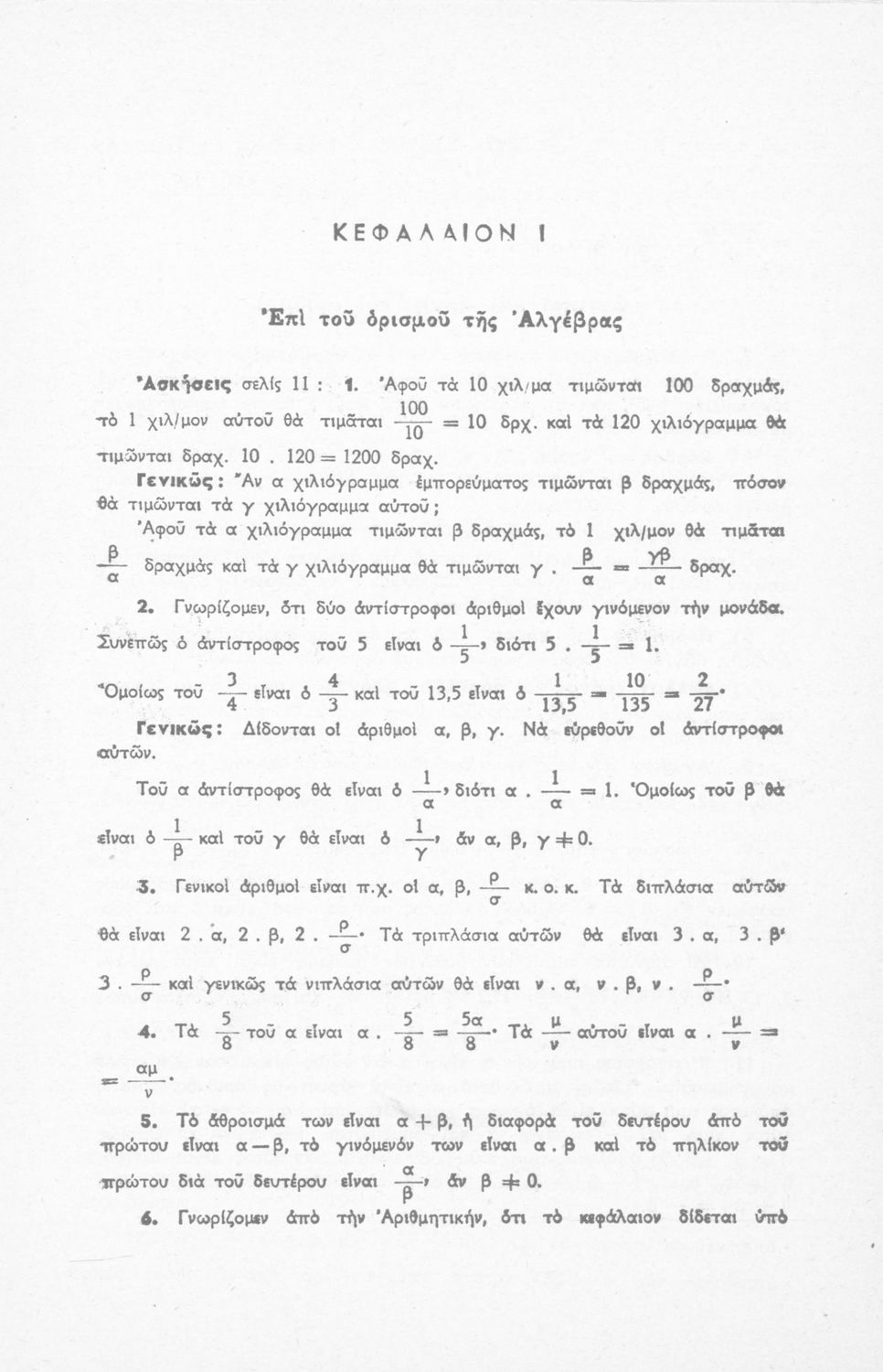 Σχολικό εγχειρίδιο Μαθηματικών ΣΤ΄ Γυμνασίου που είναι χωρισμένο σε θεωρήματα, παραδείγματα και ασκήσεις και περιλαμβάνει στοιχεία Ανώτερης Άλγεβρας και Μαθηματικής Ανάλυσης.