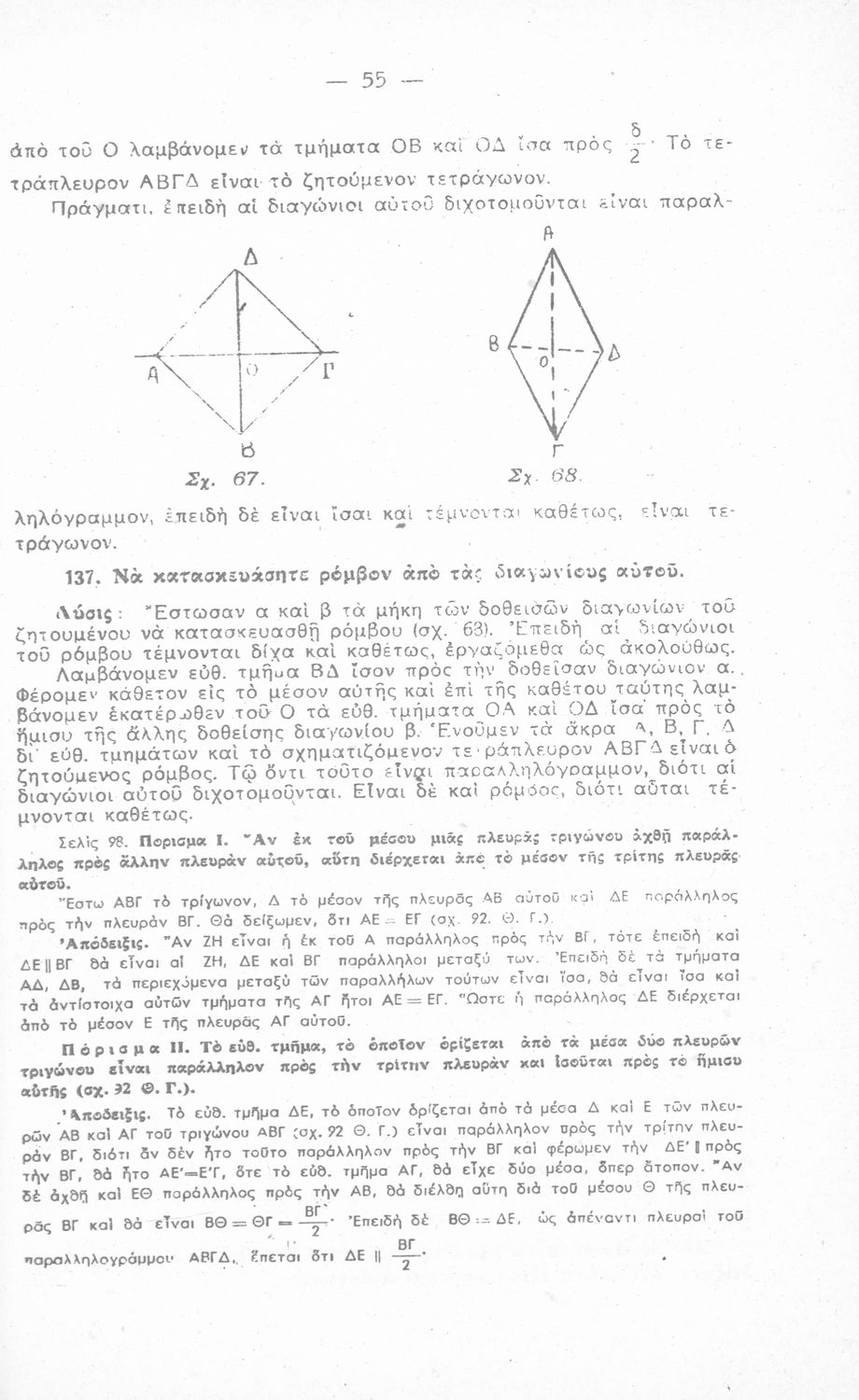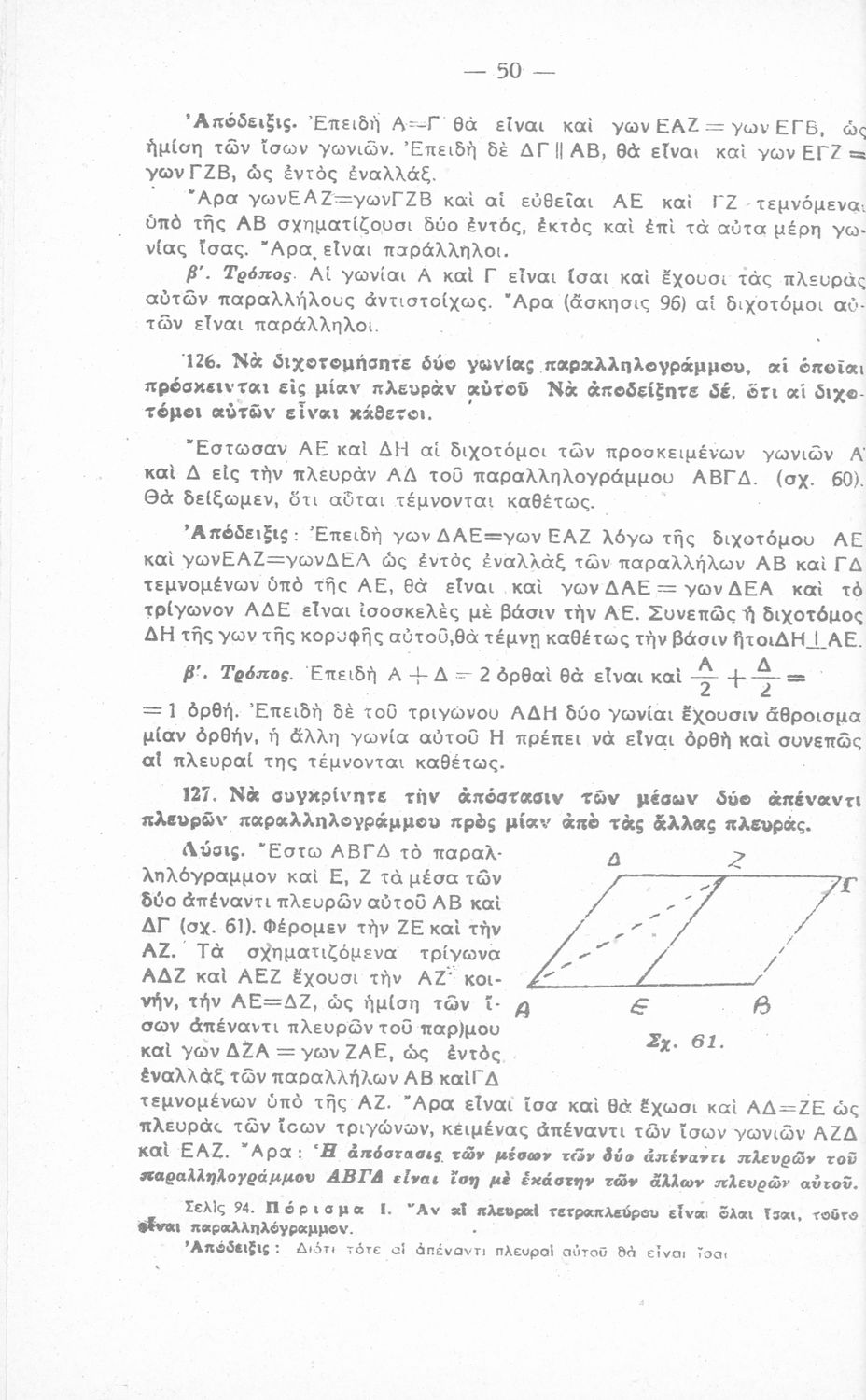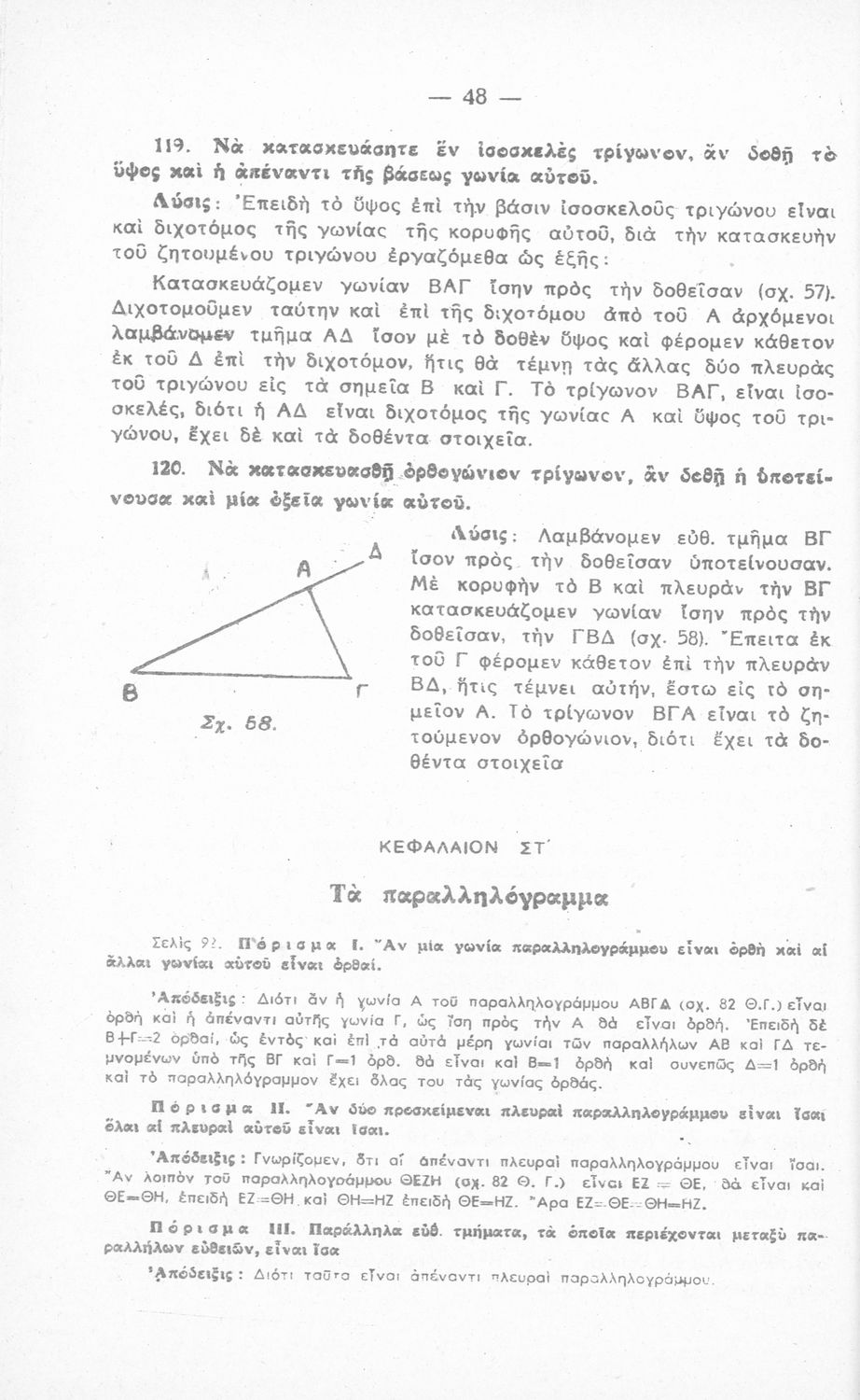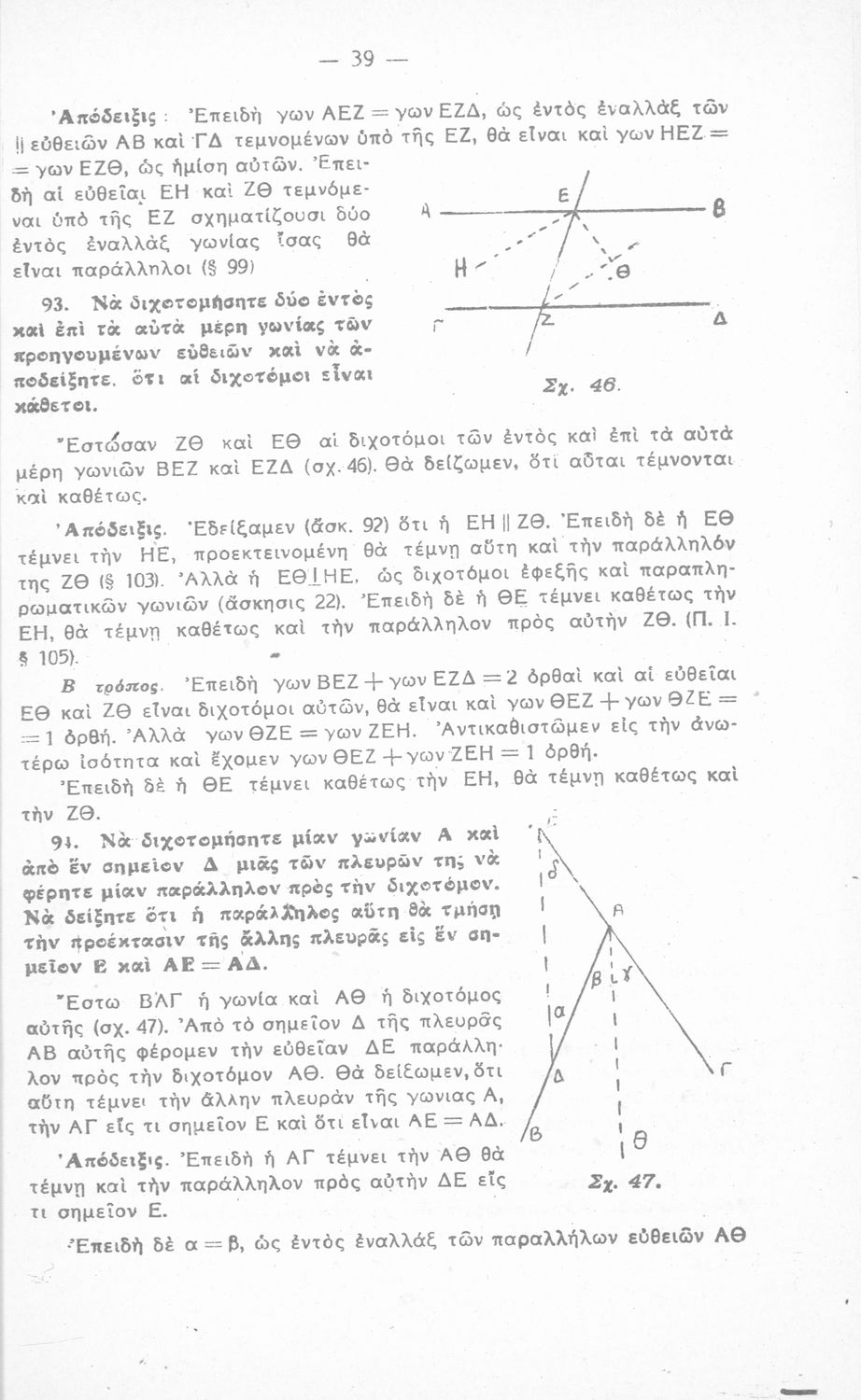 Βαθμίδα εκπαίδευσης: Δευτεροβάθμια Τάξη: Ε' Γυμνασίου / ΣΤ' Γυμνασίου Μάθημα: Μαθηματικά Γλώσσα: Καθαρεύουσα Παρουσίαση περιεχομένου: Μαθητικό βοήθημα Γεωμετρίας για τις Ε΄ και ΣΤ΄ Γυμνασίου με τις αποδείξεις των αναπόδεικτων πορισμάτων και τις λύσεις των ασκήσεων που περιέχονται στο Α΄ και Β΄ βιβλίο Γεωμετρίας του Ν. Νικολάου. |