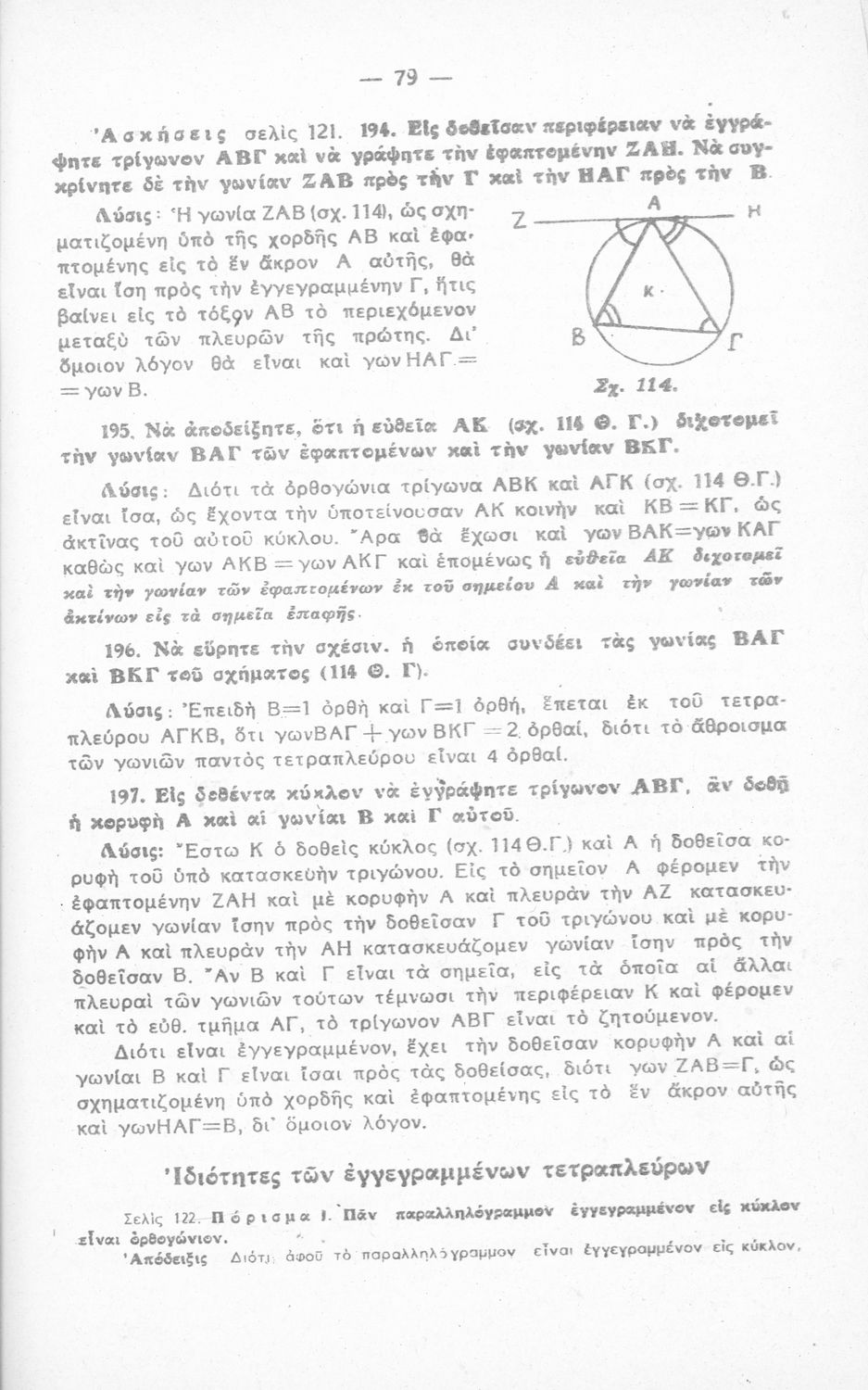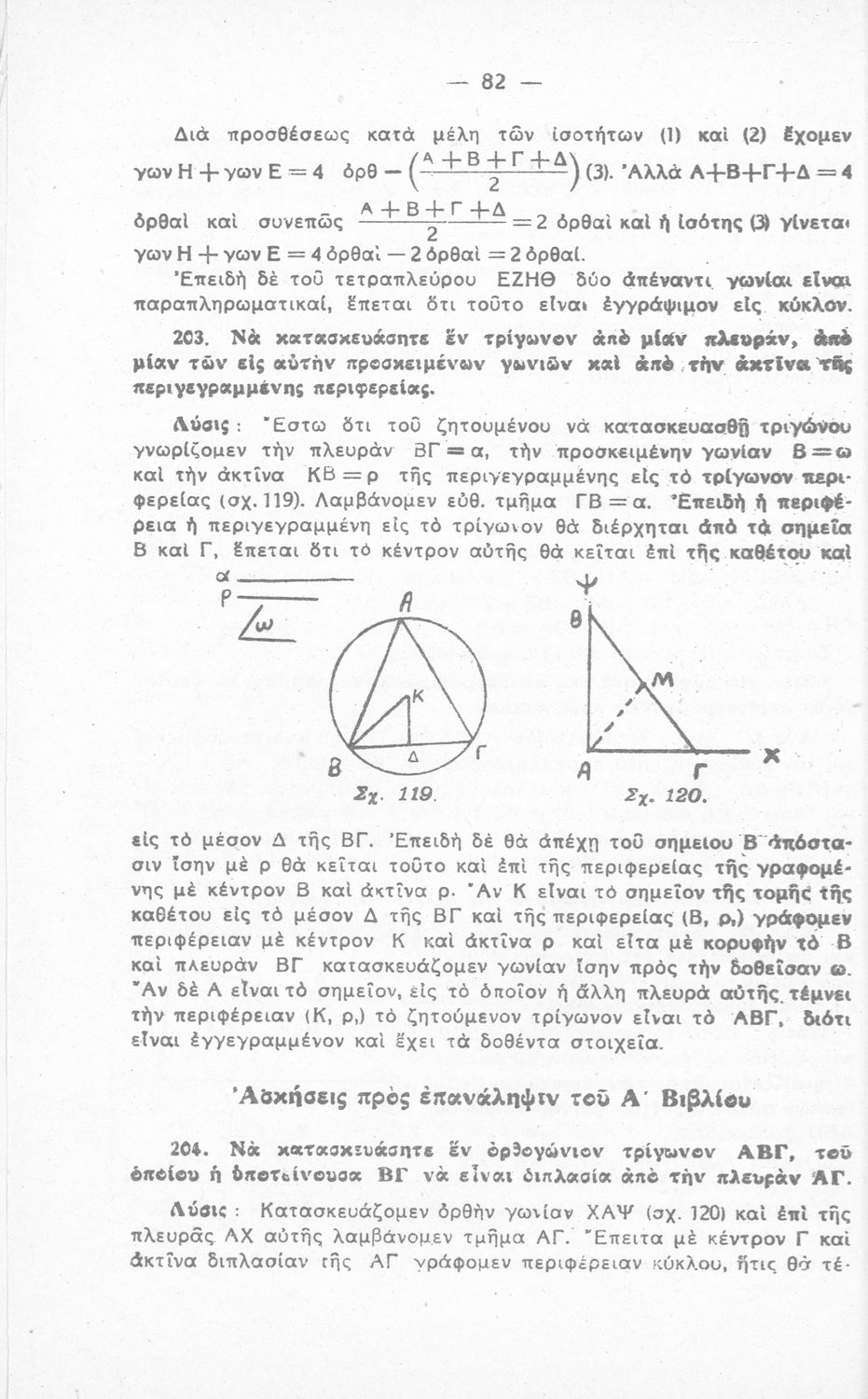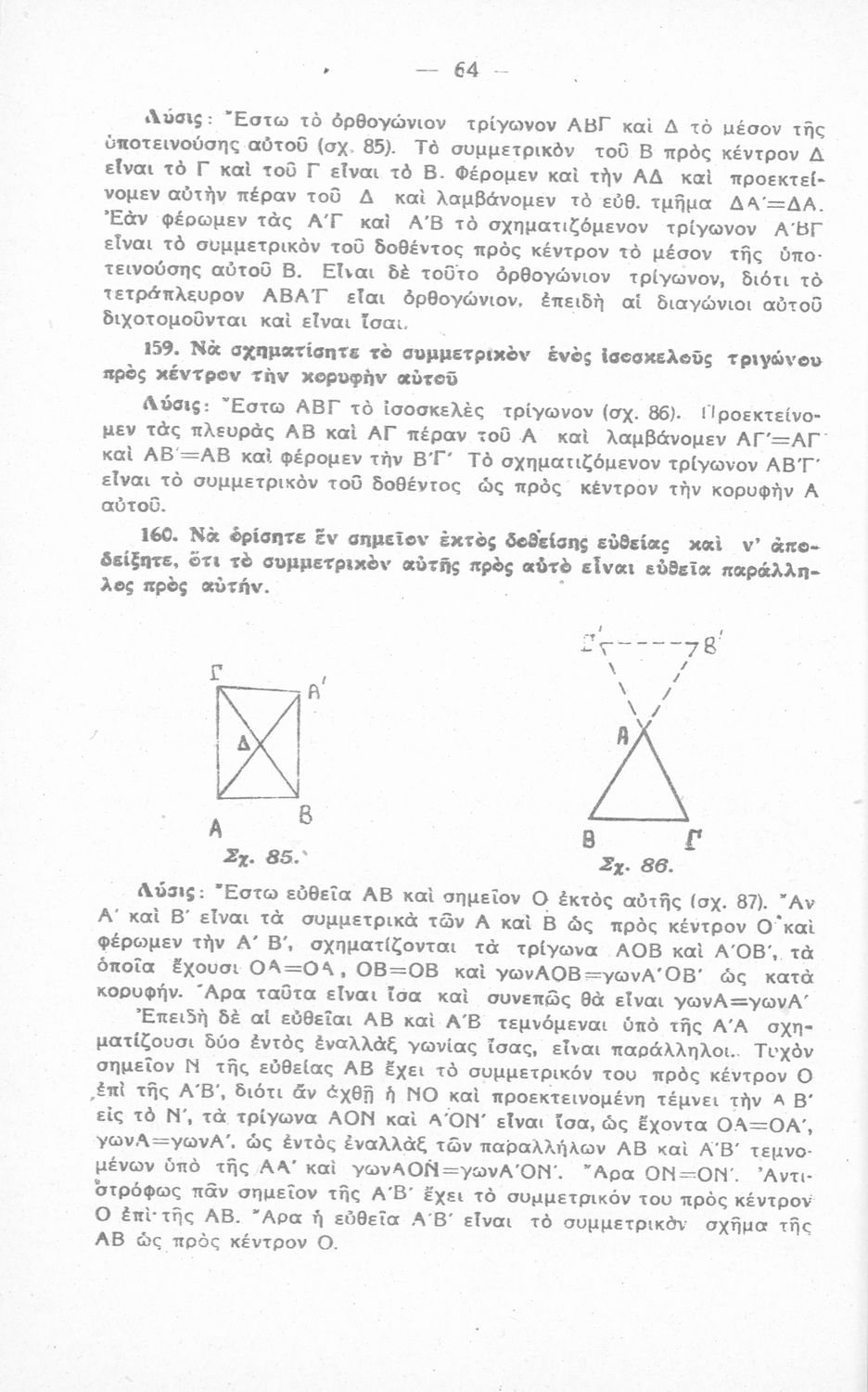 Βαθμίδα εκπαίδευσης: Δευτεροβάθμια Τάξη: Ε' Γυμνασίου / ΣΤ' Γυμνασίου Μάθημα: Μαθηματικά Γλώσσα: Καθαρεύουσα Παρουσίαση περιεχομένου: Μαθητικό βοήθημα Γεωμετρίας για τις Ε΄ και ΣΤ΄ Γυμνασίου με τις αποδείξεις των αναπόδεικτων πορισμάτων και τις λύσεις των ασκήσεων που περιέχονται στο Α΄ και Β΄ βιβλίο Γεωμετρίας του Ν. Νικολάου. |
