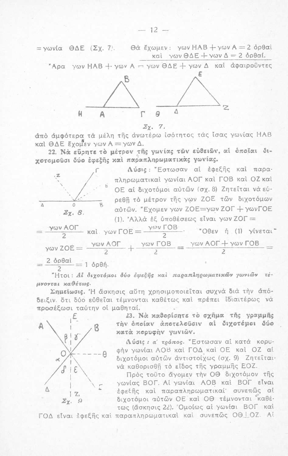 Λύσεις των ασκήσεων της εγκεκριμένης Θεωρητικής Γεωμετρίας Ο.Ε.Σ.Β. δια τους μαθητάς της Ε΄ & ΣΤ΄ τάξεως Οκταταξίου Γυμνασίου, τεύχος Α