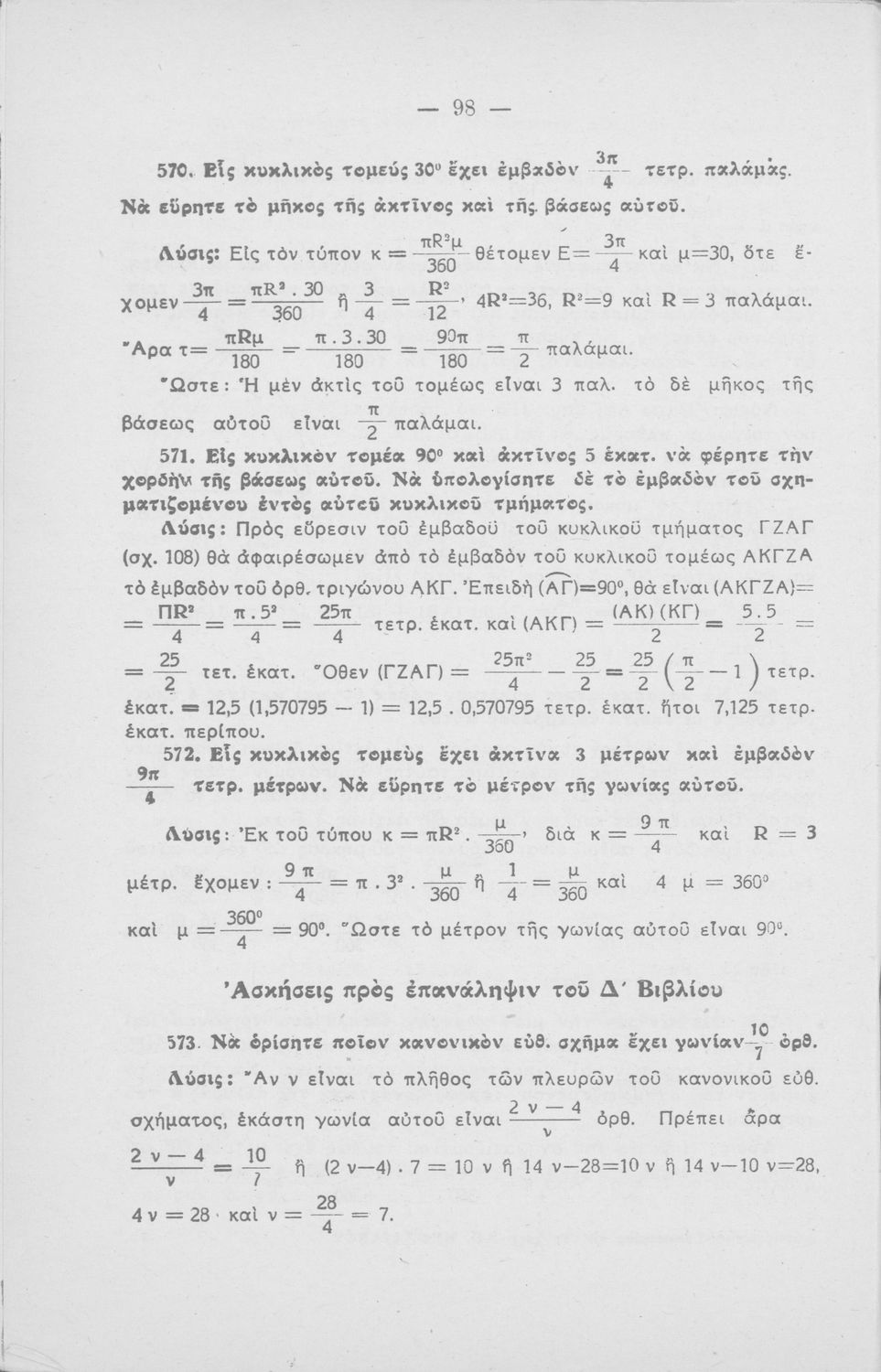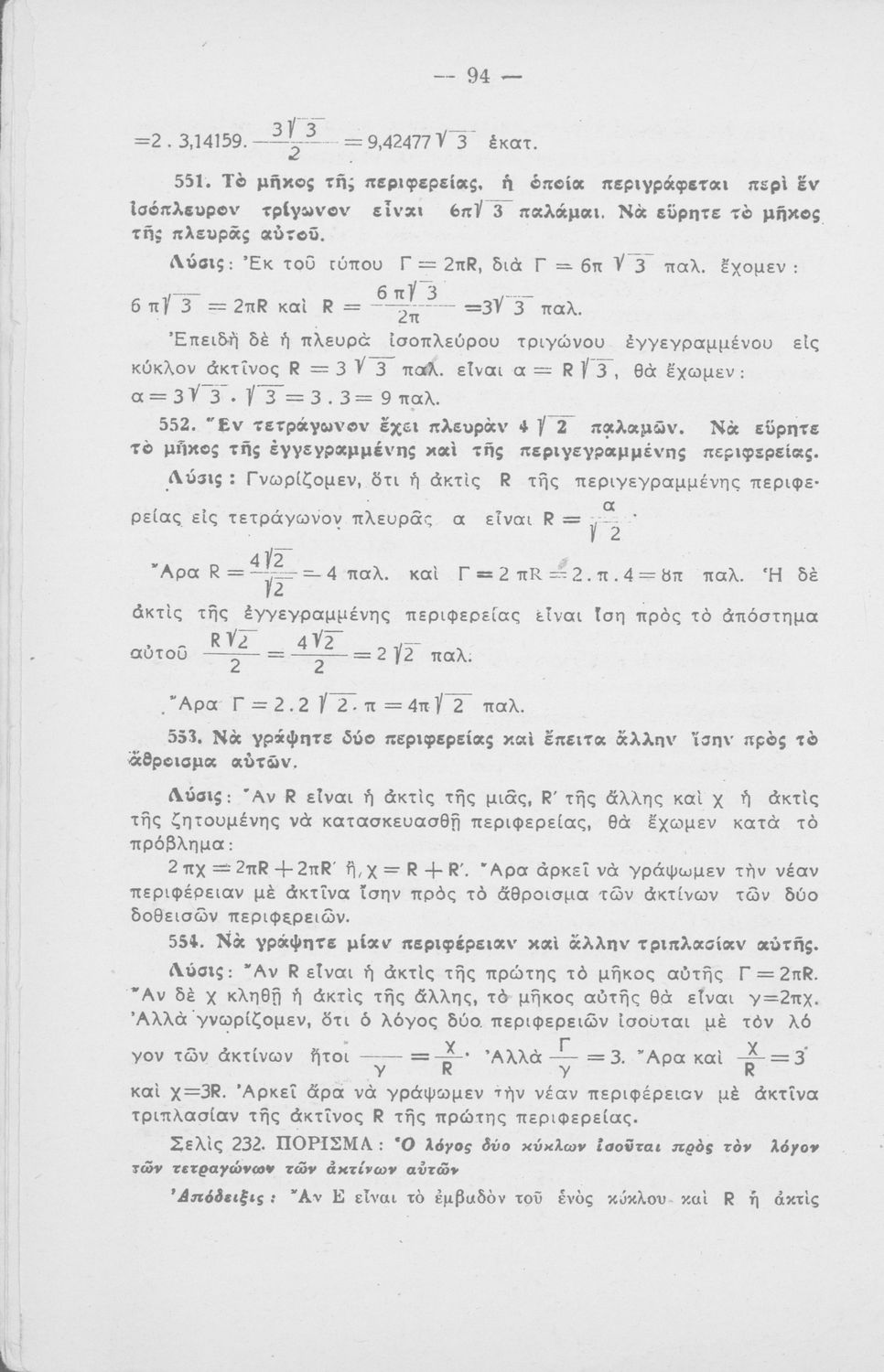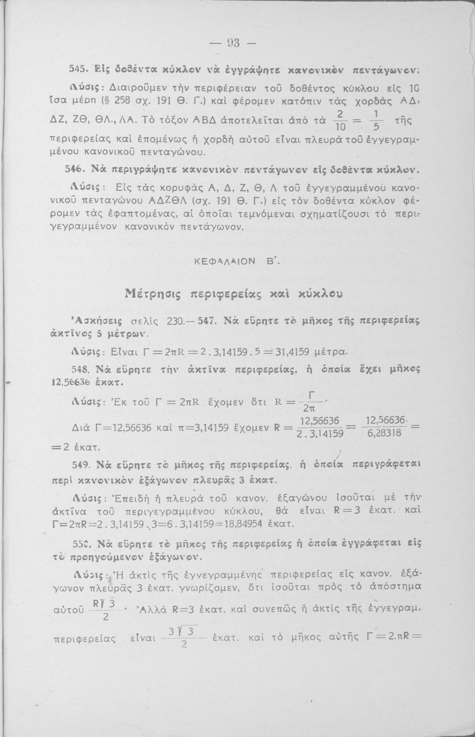 Λύσεις των ασκήσεων της εγκεκριμένης Θεωρητικής Γεωμετρίας Ο.Ε.Σ.Β. δια τους μαθητάς της Ζ΄ τάξεως Οκταταξίου Γυμνασίου, τεύχος Β