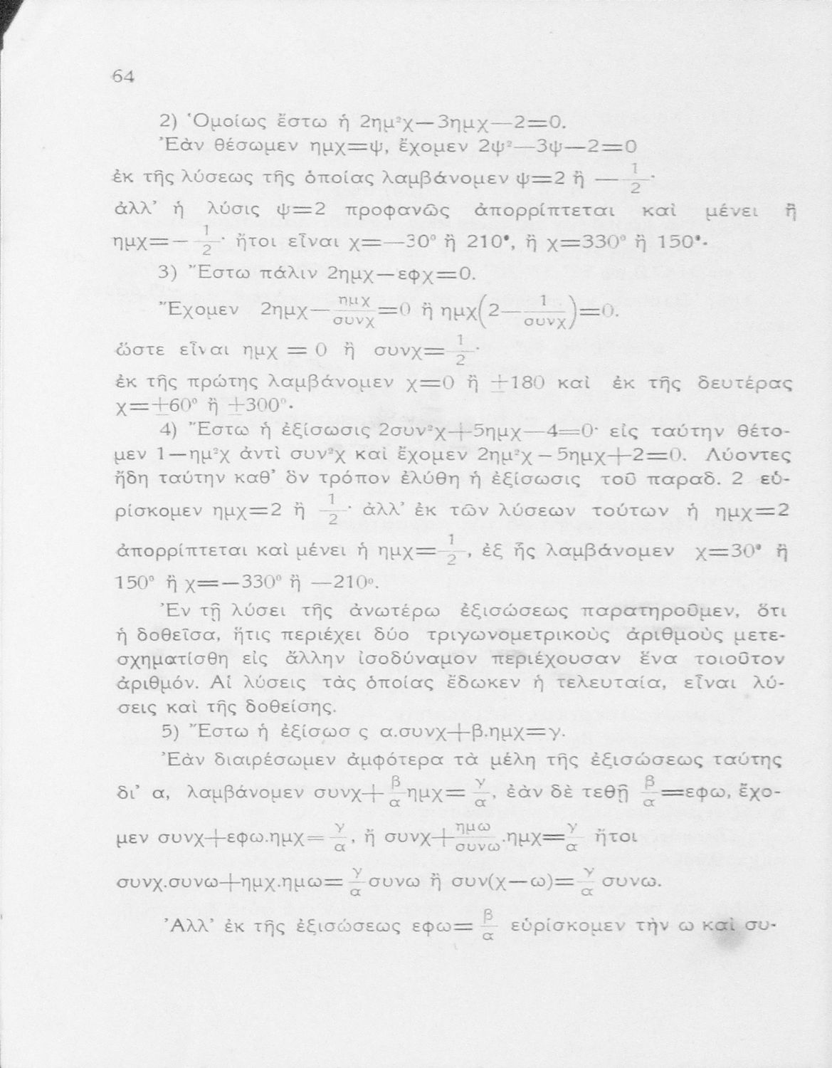 Τριγωνομετρία δια την ΣΤ΄ τάξιν των Γυμνασίων παλαιού τύπου