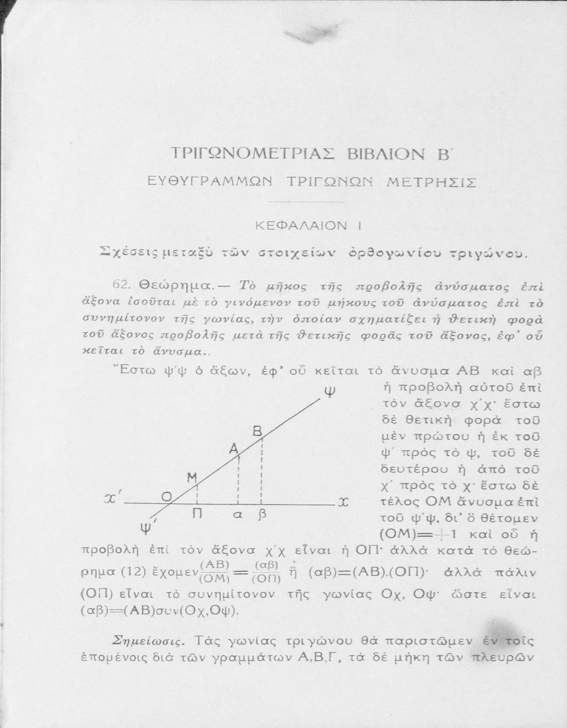 Τίτλος: Τριγωνομετρία δια την ΣΤ΄ τάξιν των Γυμνασίων παλαιού τύπου