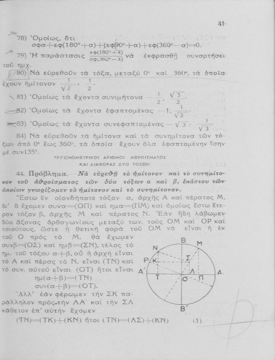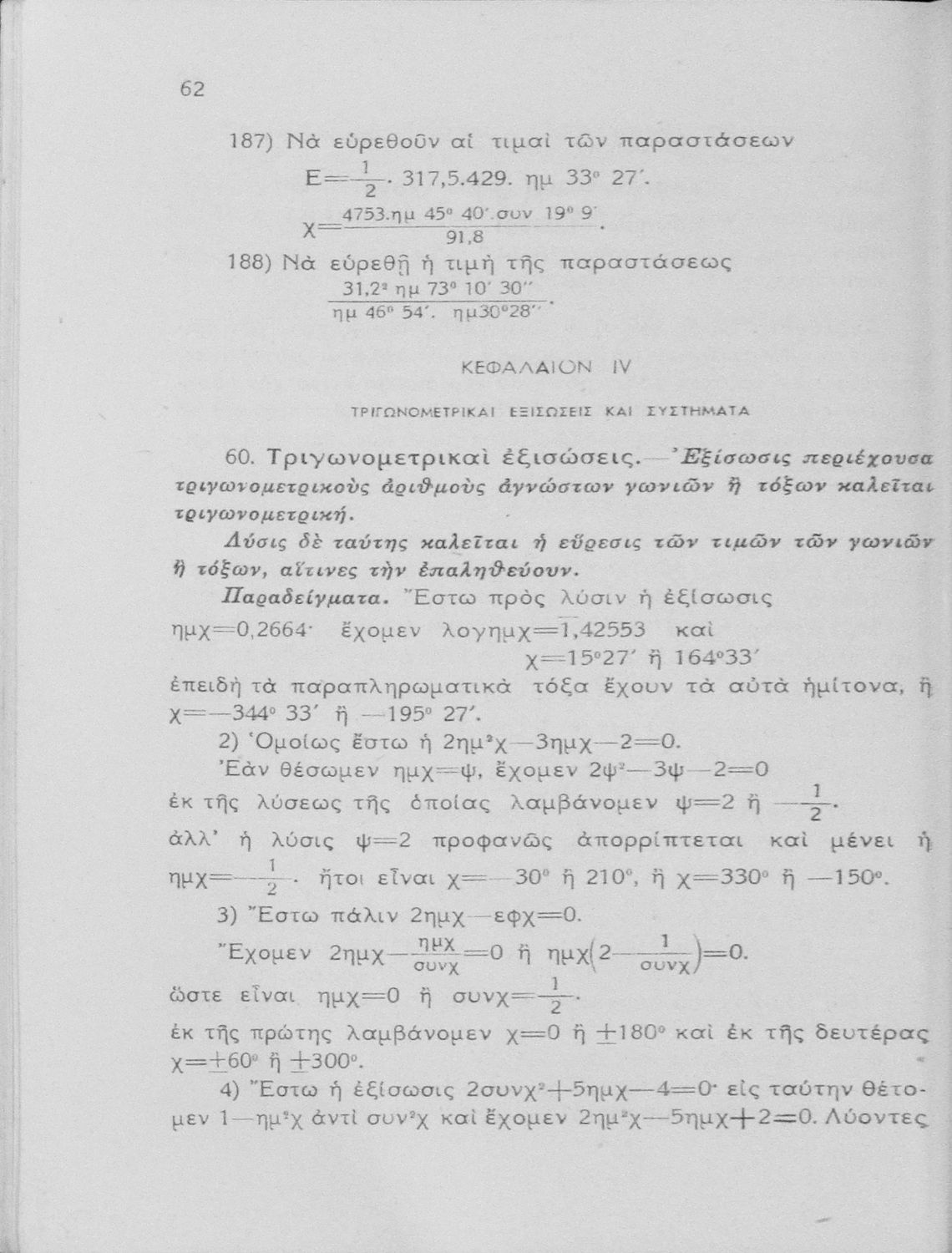 Τριγωνομετρία δια την ΣΤ΄ τάξιν των Γυμνασίων παλαιού τύπου