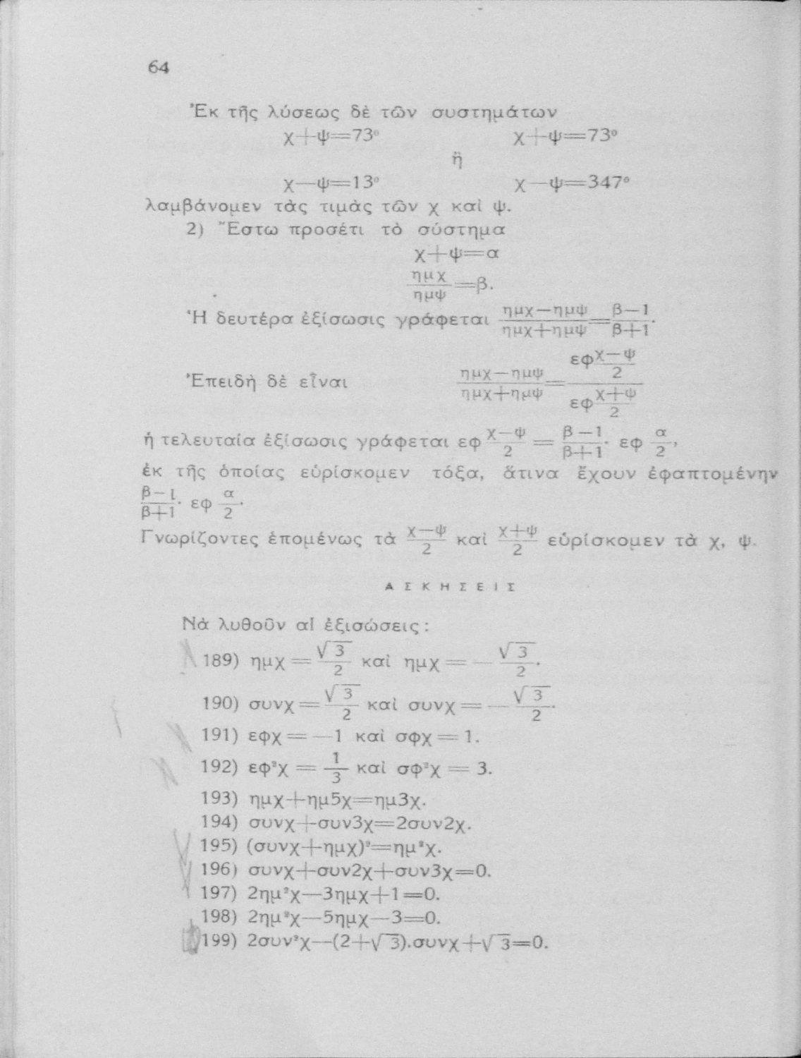 Τριγωνομετρία δια την ΣΤ΄ τάξιν των Γυμνασίων παλαιού τύπου