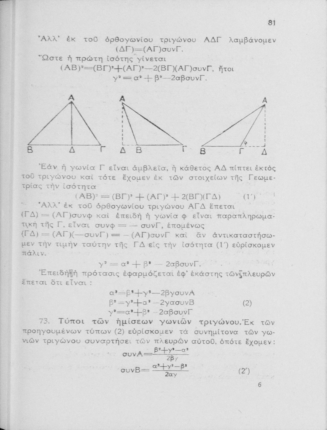 Σχολικό εγχειρίδιο Τριγωνομετρίας για την ΣΤ΄ Γυμνασίου που περιλαμβάνει θεωρήματα και ασκήσεις.