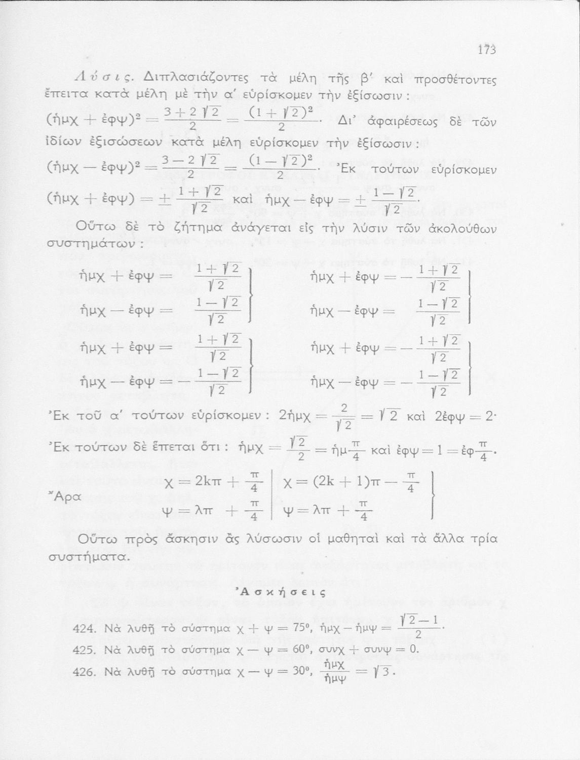 Τριγωνομετρία δια την Η΄ τάξιν των Γυμνασίων