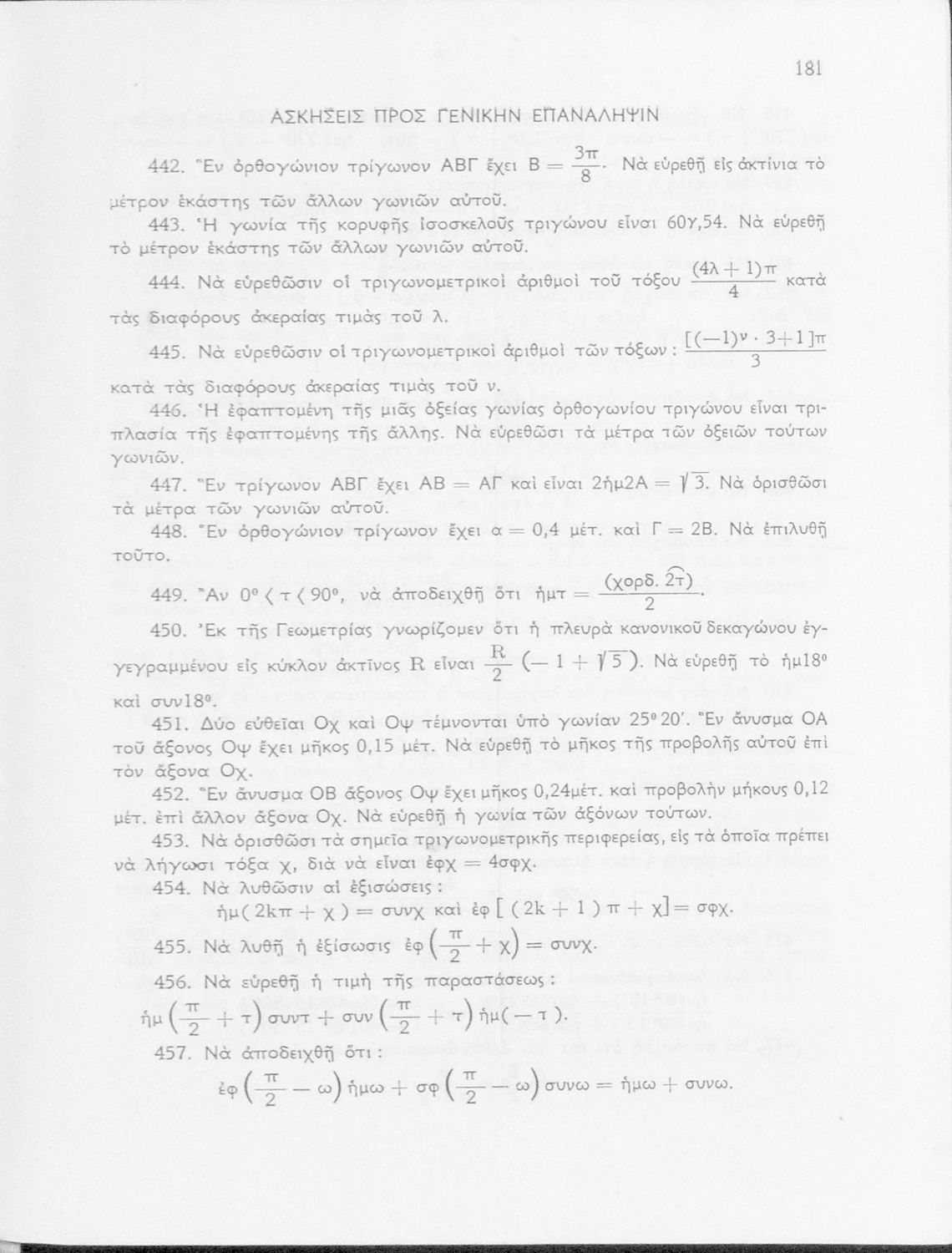 Σχολικό εγχειρίδιο Τριγωνομετρίας για την Η' Γυμνασίου που περιλαμβάνει θεωρία και ασκήσεις.