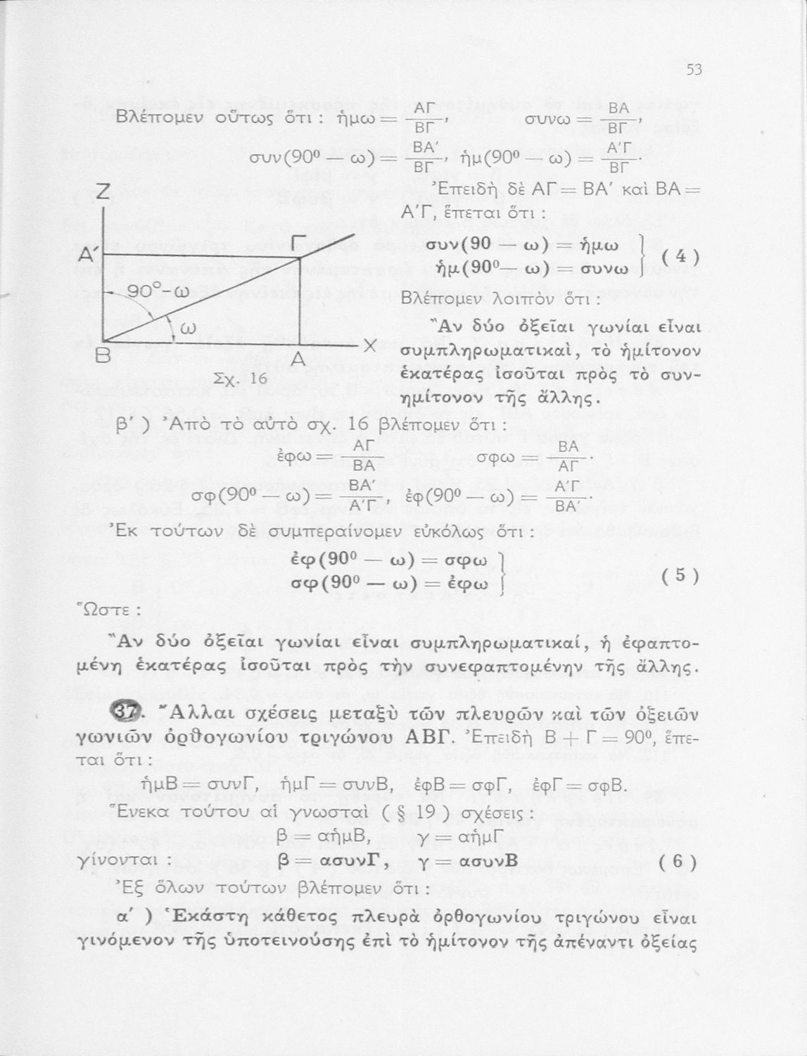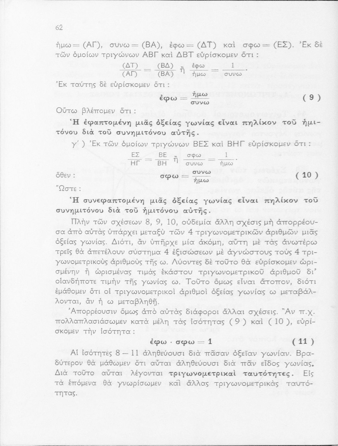 Σχολικό εγχειρίδιο Τριγωνομετρίας για την ΣΤ΄ Γυμνασίου που περιλαμβάνει θεωρήματα και ασκήσεις.