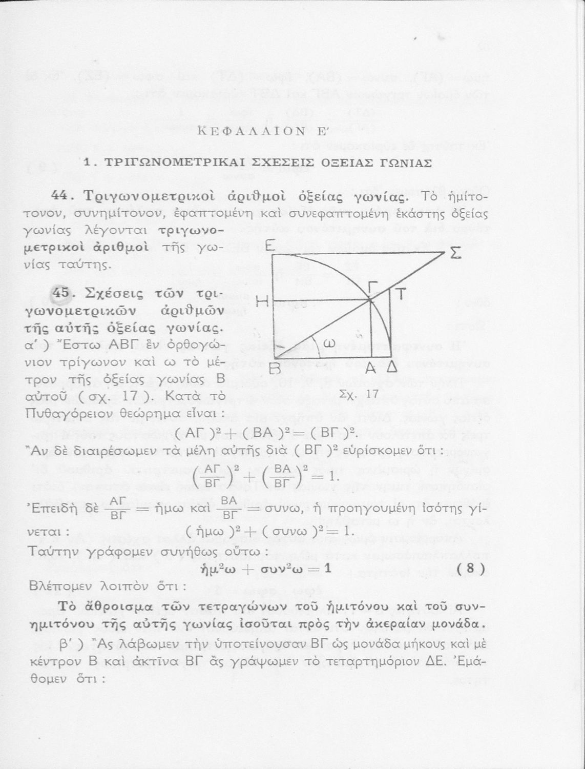 Σχολικό εγχειρίδιο Τριγωνομετρίας για την Η' Γυμνασίου που περιλαμβάνει θεωρία και ασκήσεις.