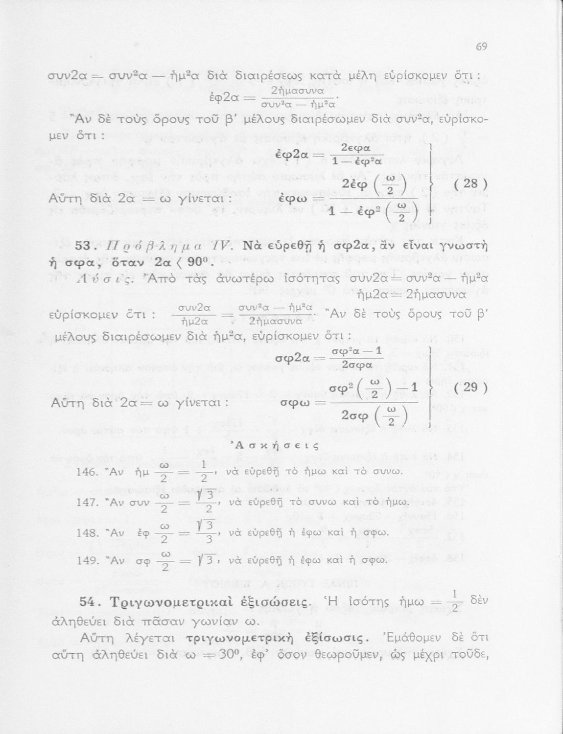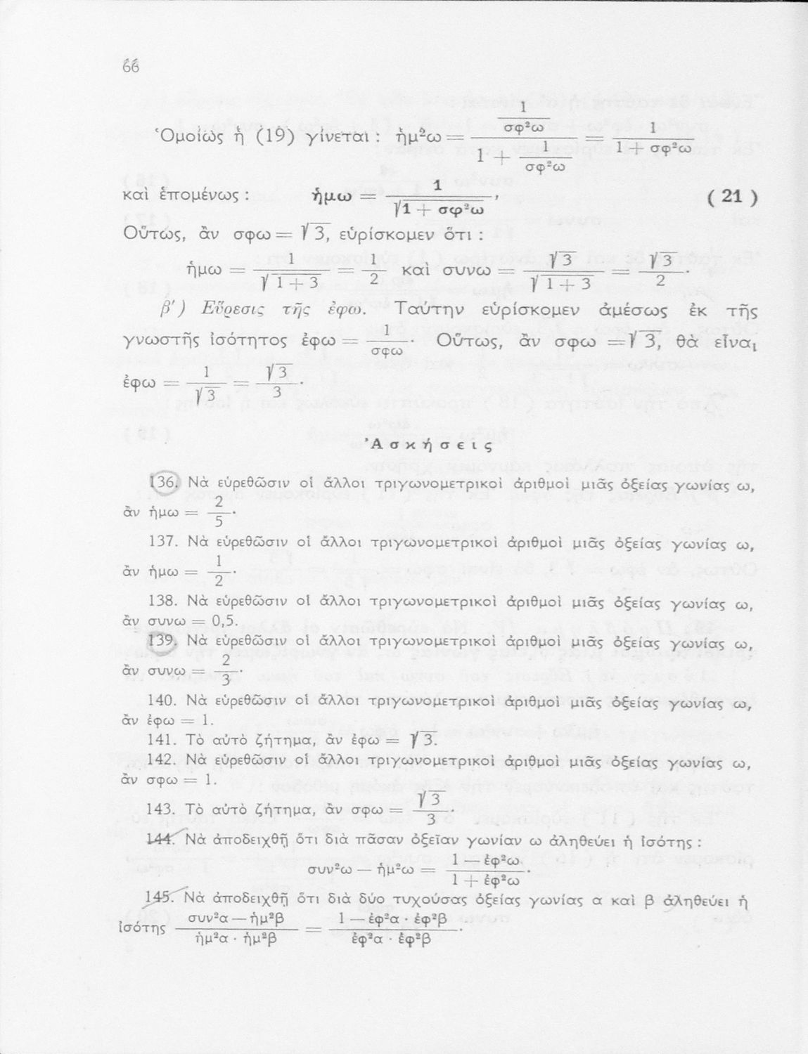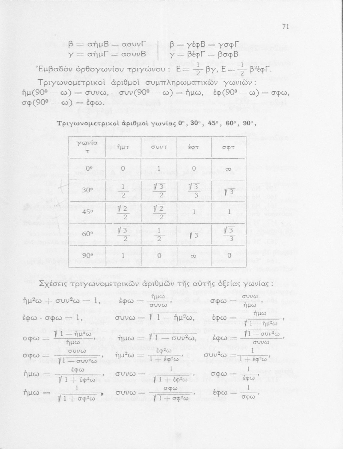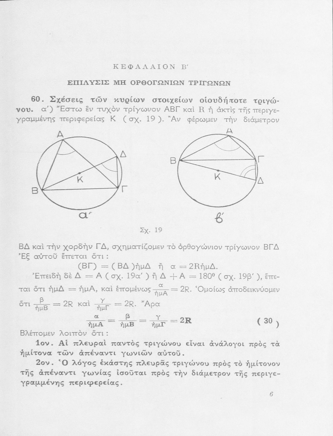 Σχολικό εγχειρίδιο Τριγωνομετρίας για την ΣΤ΄ Γυμνασίου που περιλαμβάνει θεωρήματα και ασκήσεις.