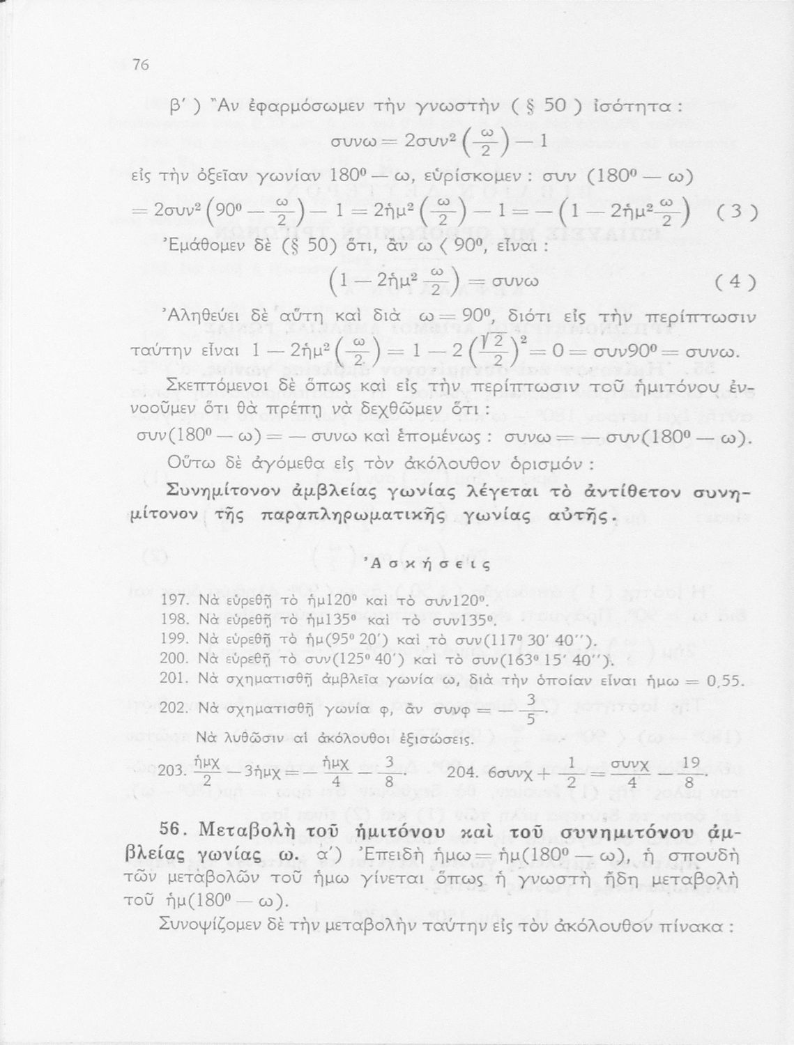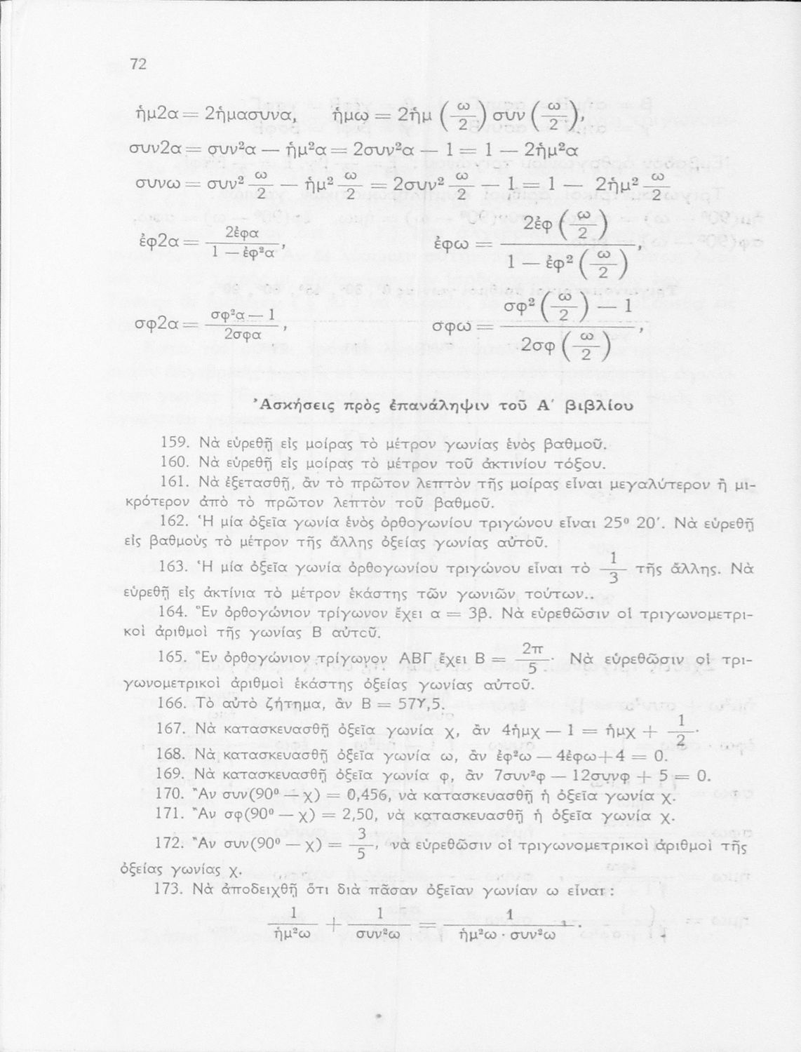 Σχολικό εγχειρίδιο Τριγωνομετρίας για την Η' Γυμνασίου που περιλαμβάνει θεωρία και ασκήσεις.