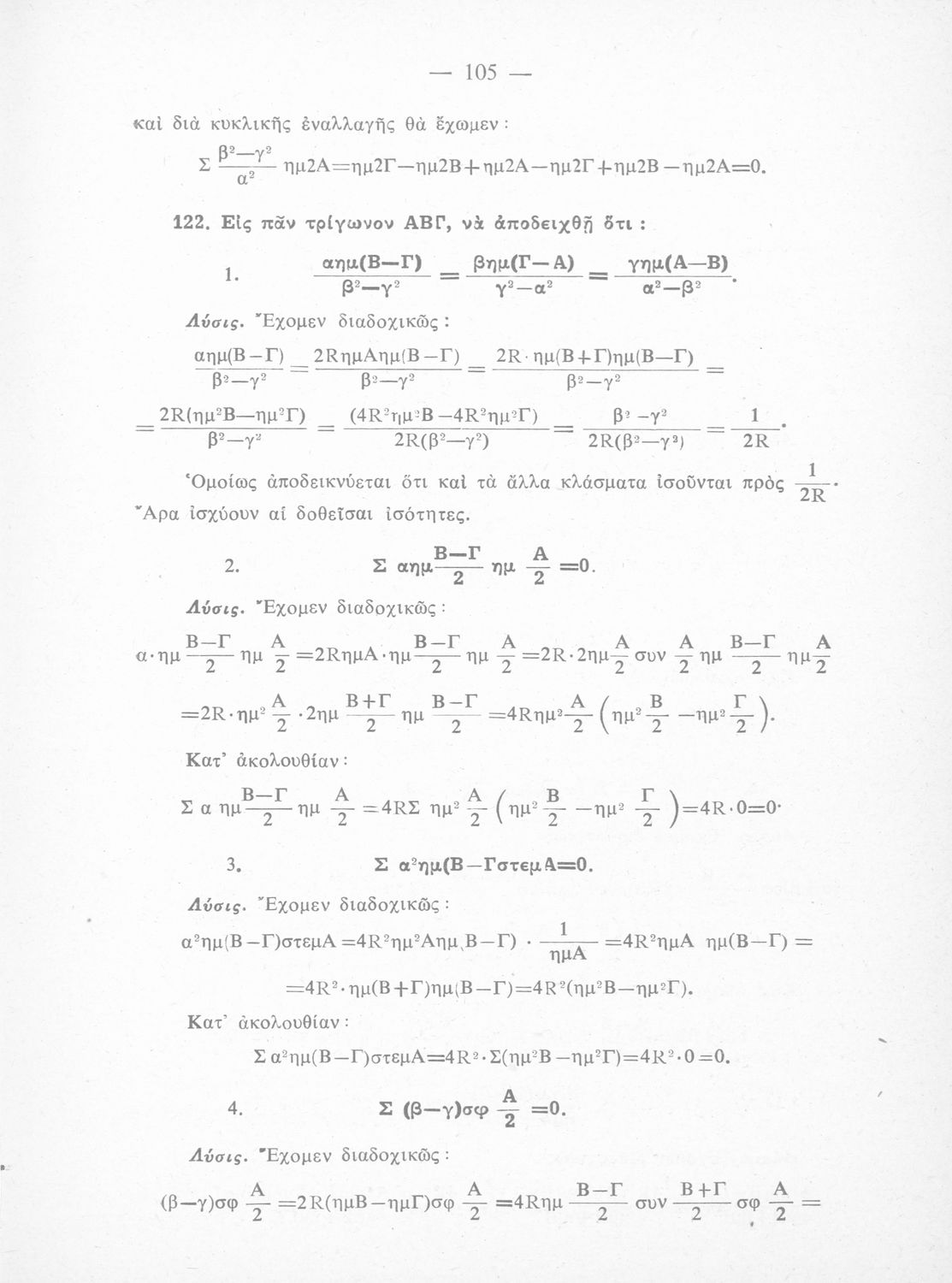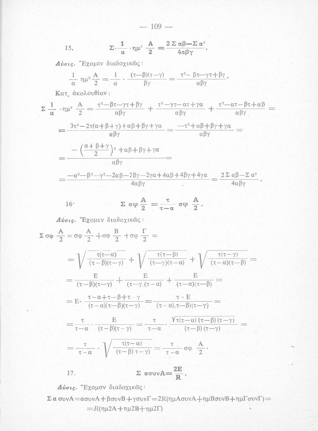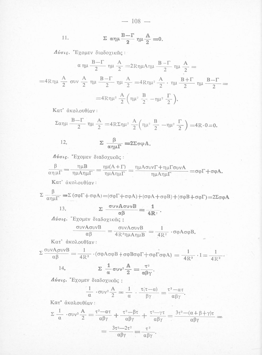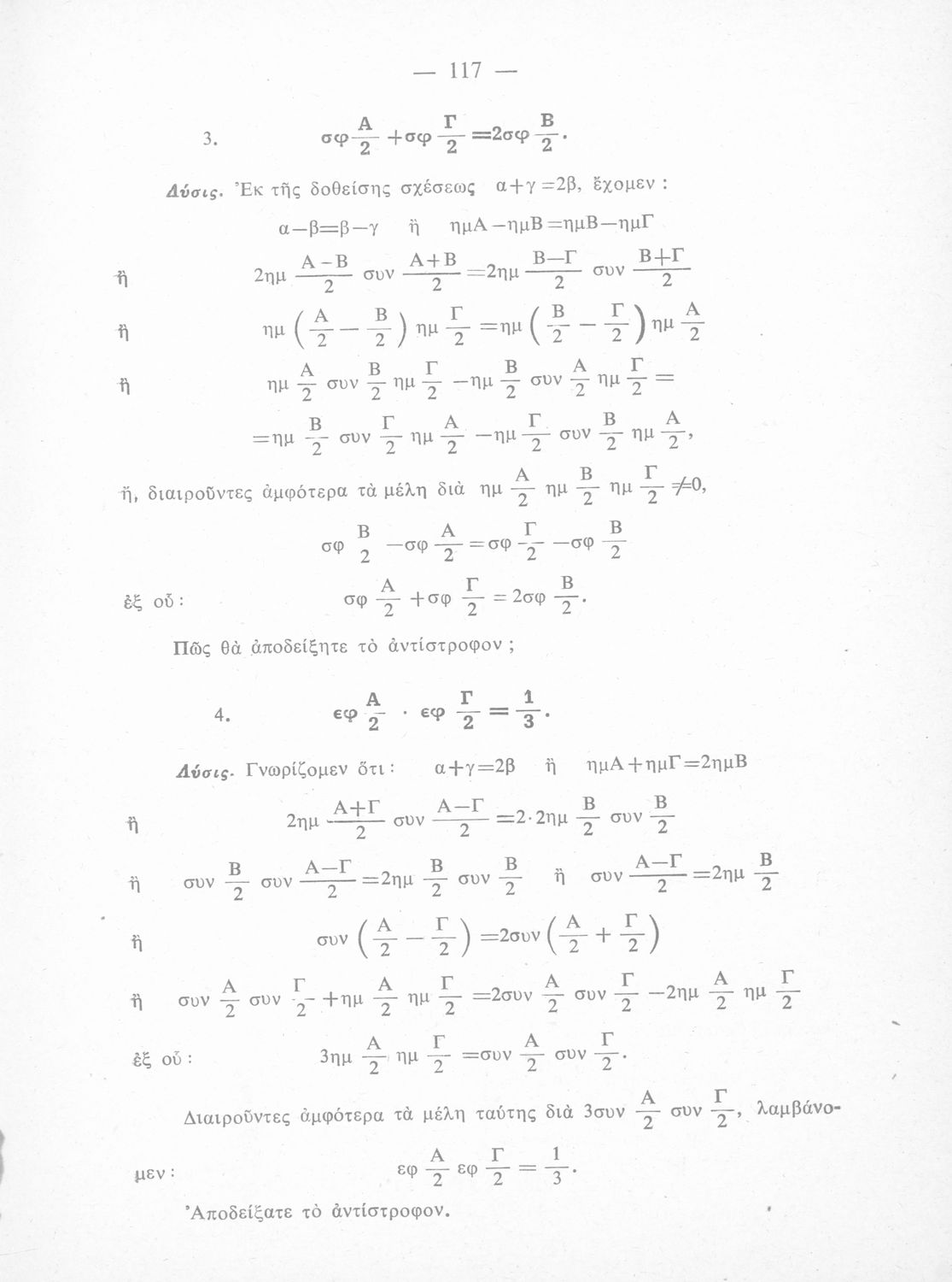 Λύσεις των ασκήσεων Τριγωνομετρίας: περιέχει τας λύσεις των ασκήσεων της Τριγωνομετρίας του ιδίου της Ε΄ τάξεως του Γυμνασίου, Θετικής κατευθύνσεως