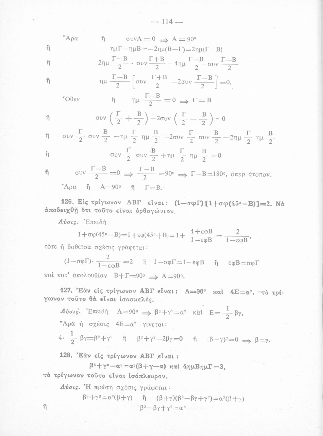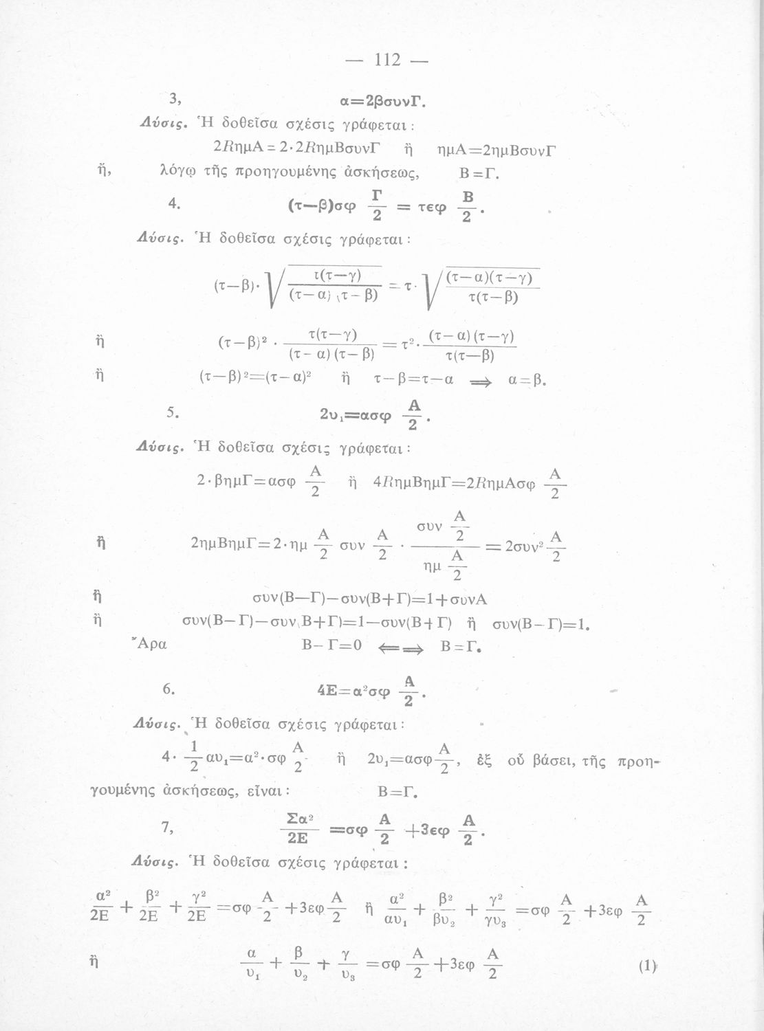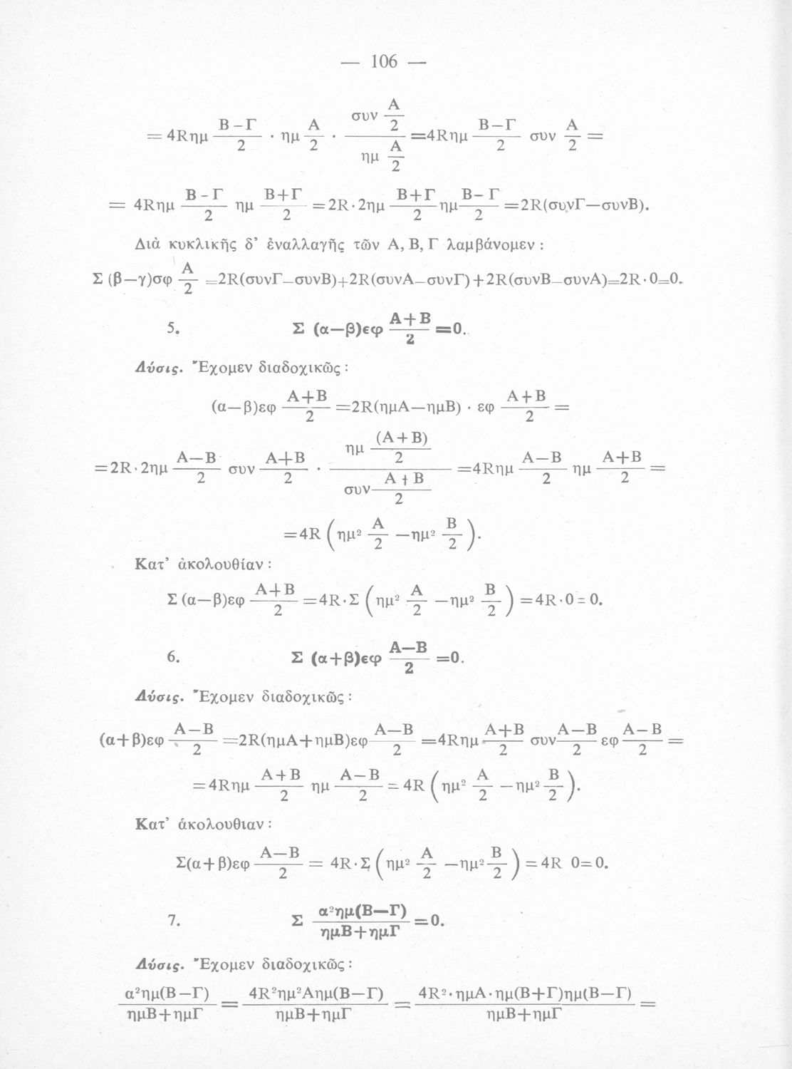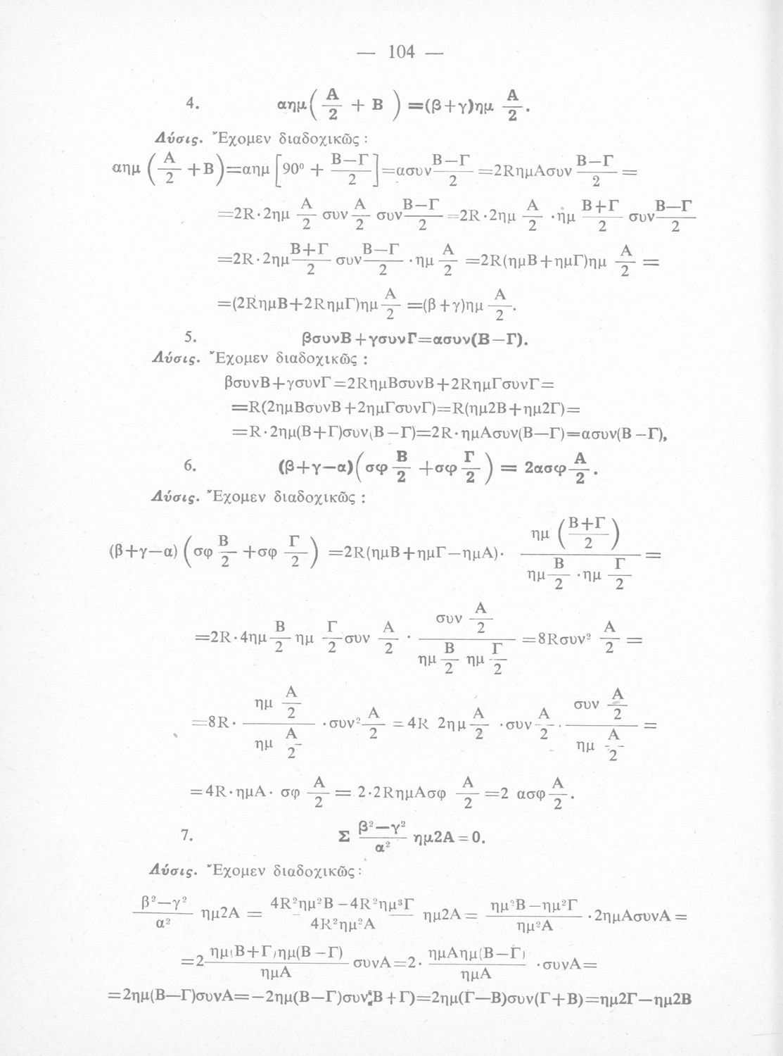 Λύσεις των ασκήσεων Τριγωνομετρίας: περιέχει τας λύσεις των ασκήσεων της Τριγωνομετρίας του ιδίου της Ε΄ τάξεως του Γυμνασίου, Θετικής κατευθύνσεως