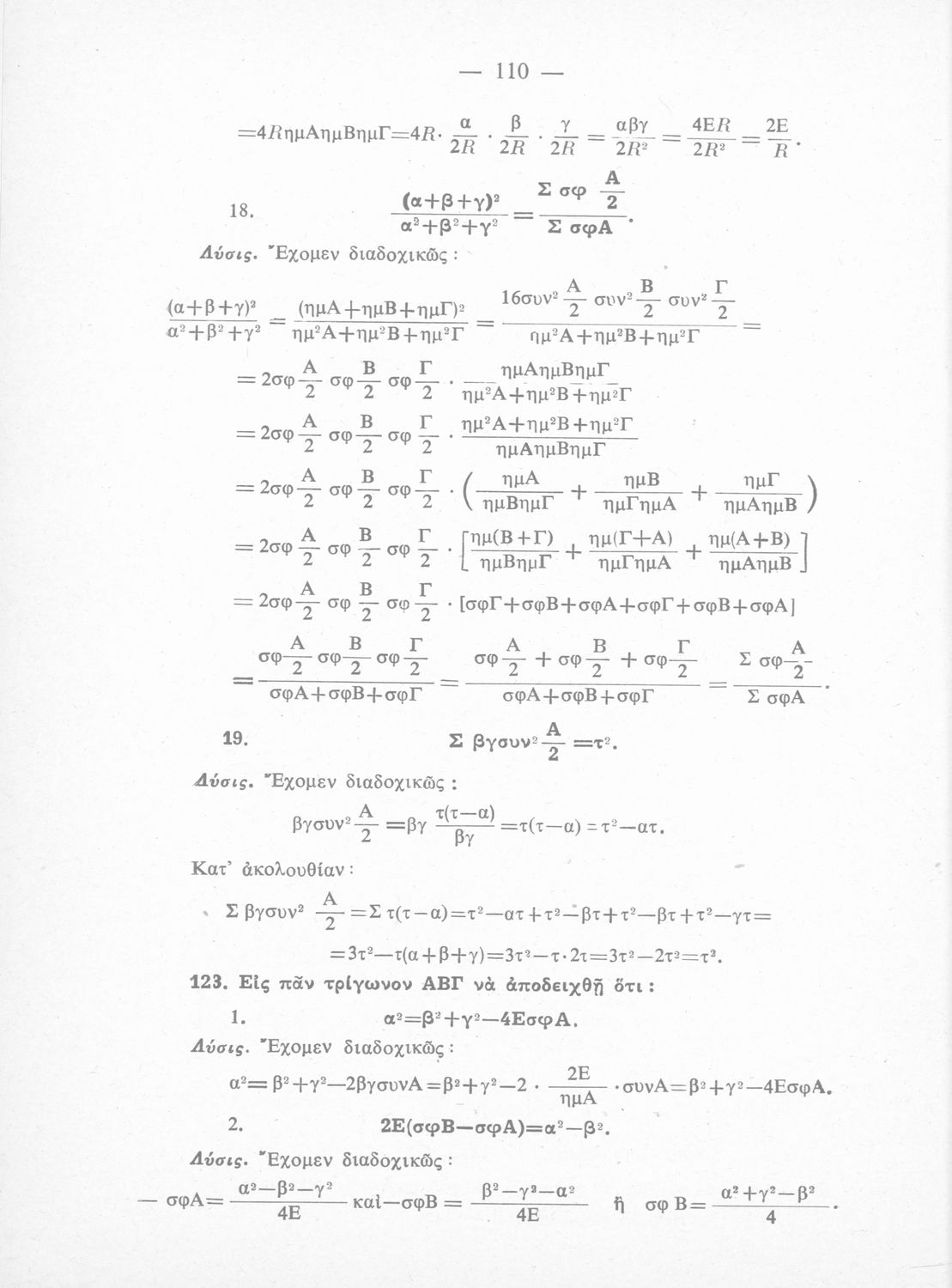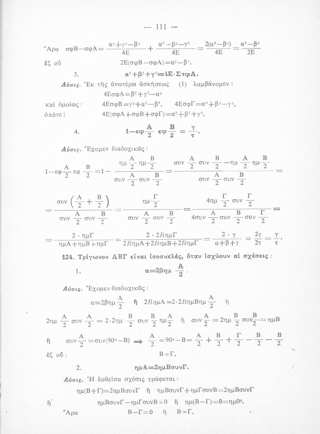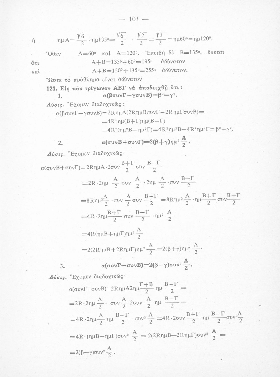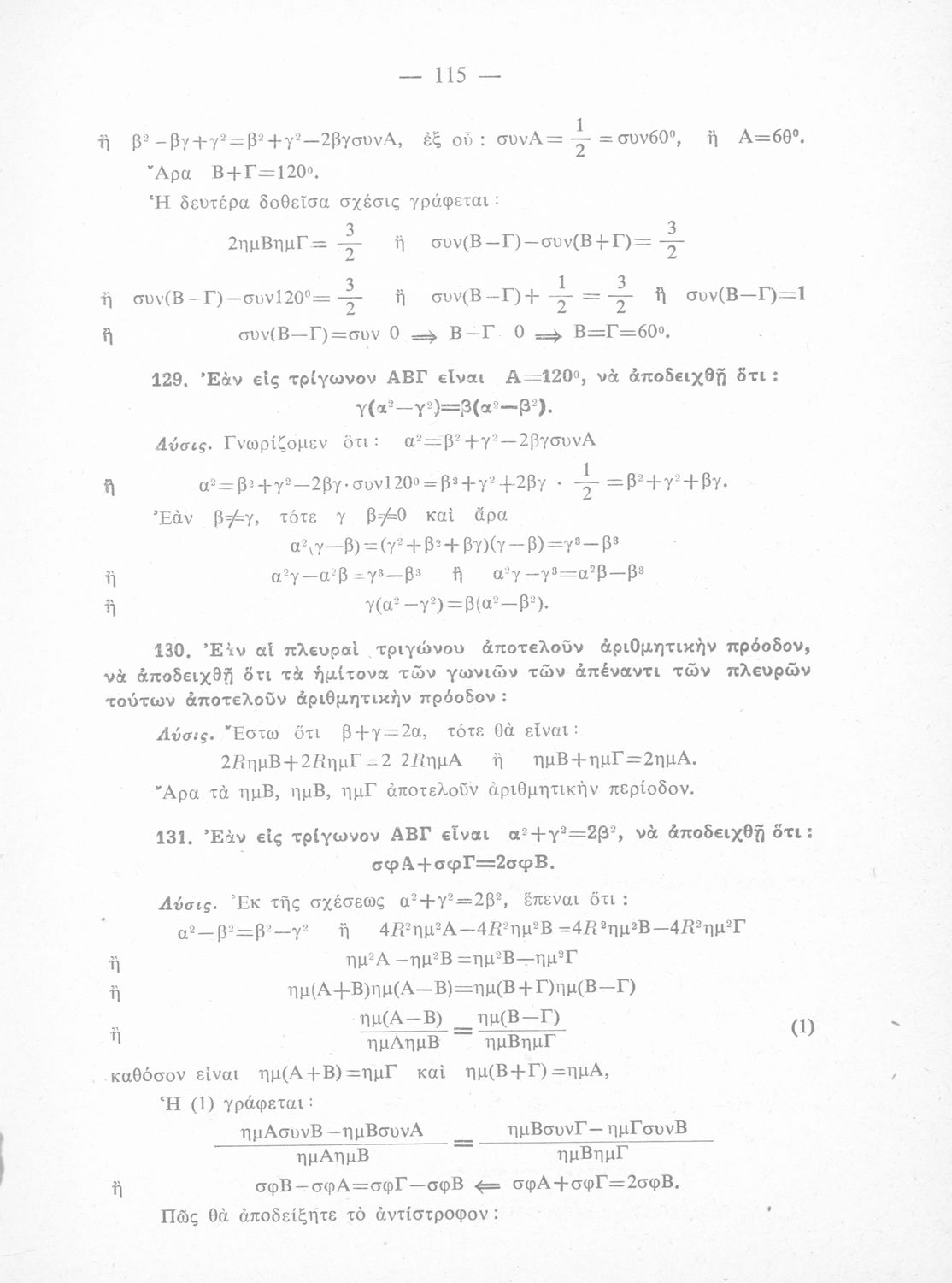 Λύσεις των ασκήσεων Τριγωνομετρίας: περιέχει τας λύσεις των ασκήσεων της Τριγωνομετρίας του ιδίου της Ε΄ τάξεως του Γυμνασίου, Θετικής κατευθύνσεως