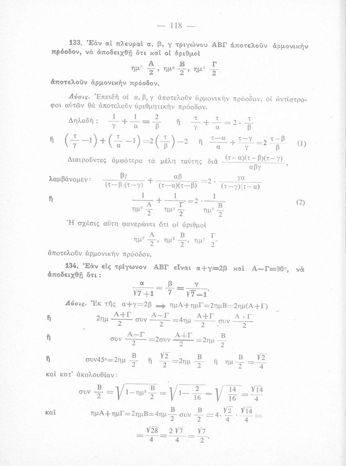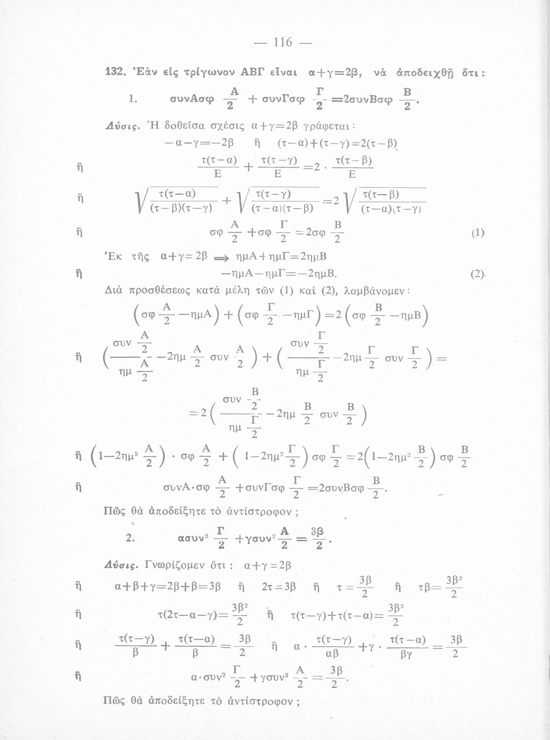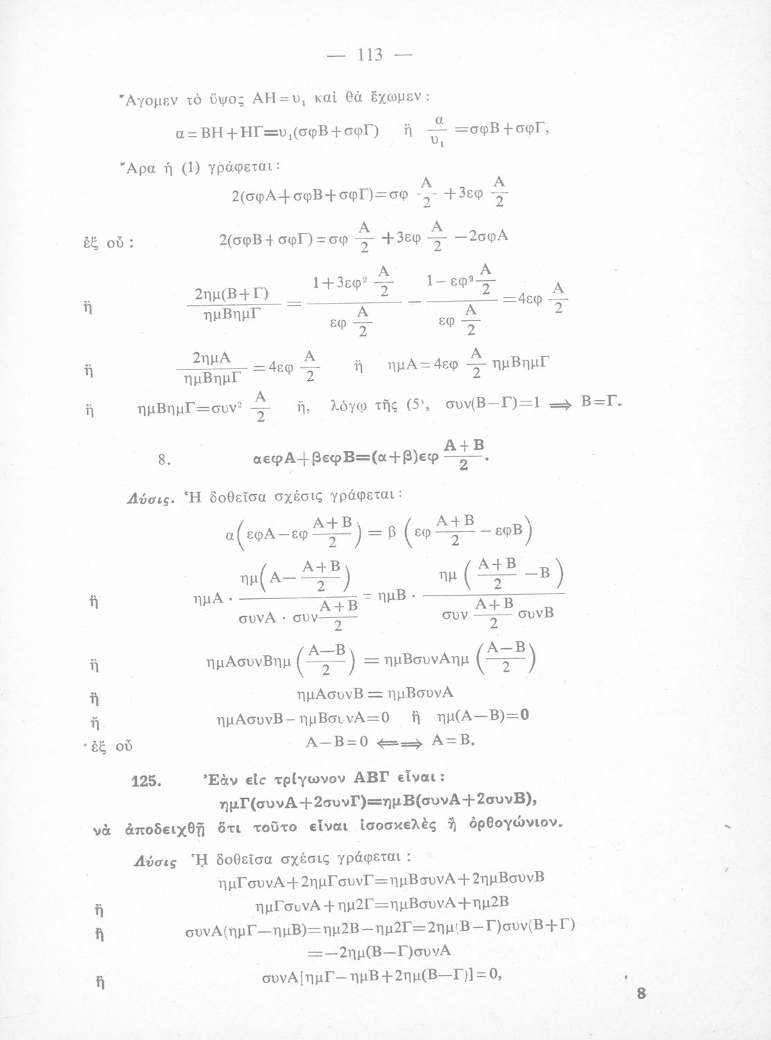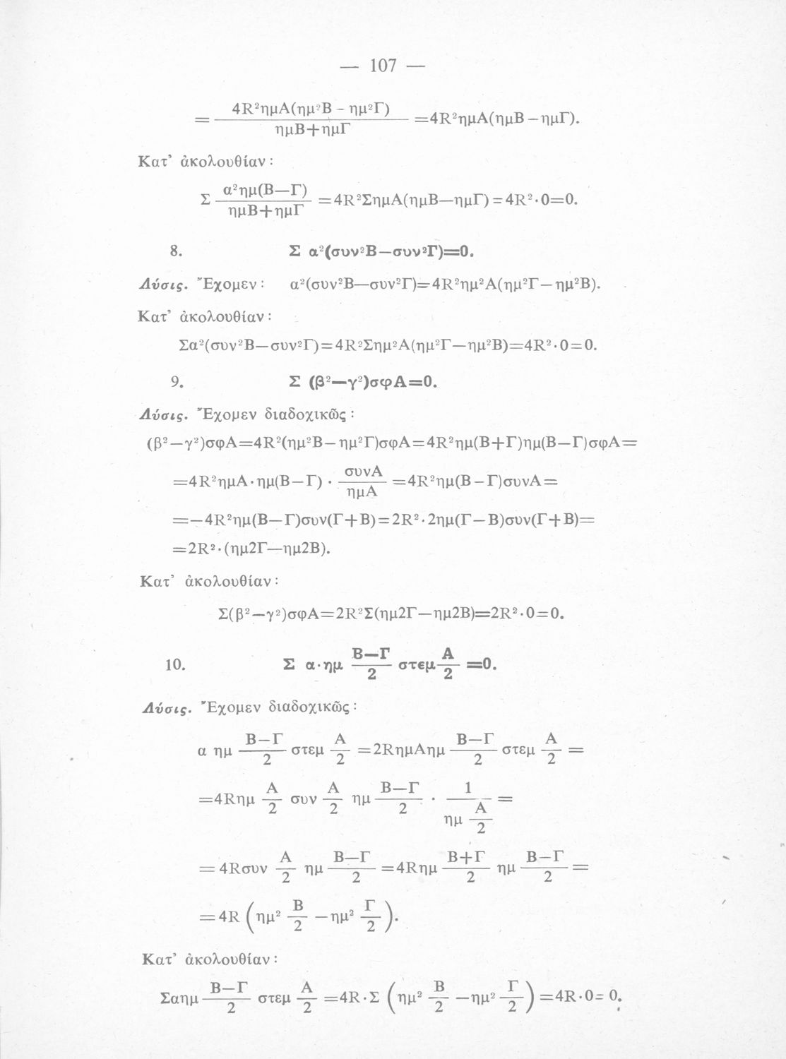 Λύσεις των ασκήσεων Τριγωνομετρίας: περιέχει τας λύσεις των ασκήσεων της Τριγωνομετρίας του ιδίου της Ε΄ τάξεως του Γυμνασίου, Θετικής κατευθύνσεως