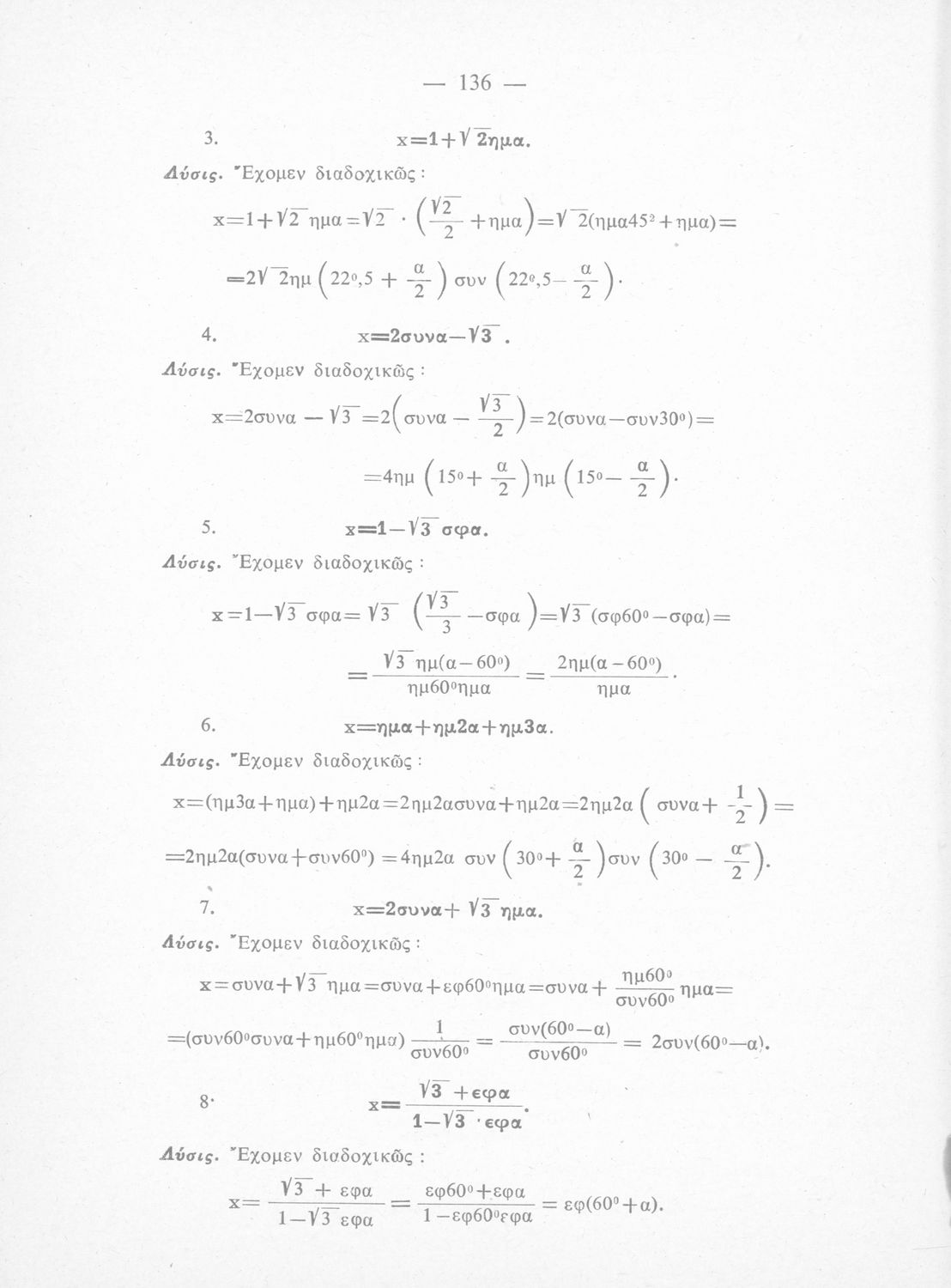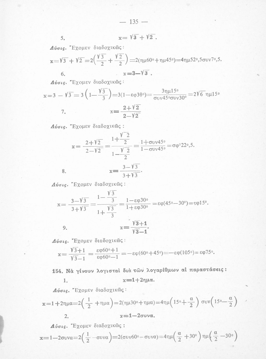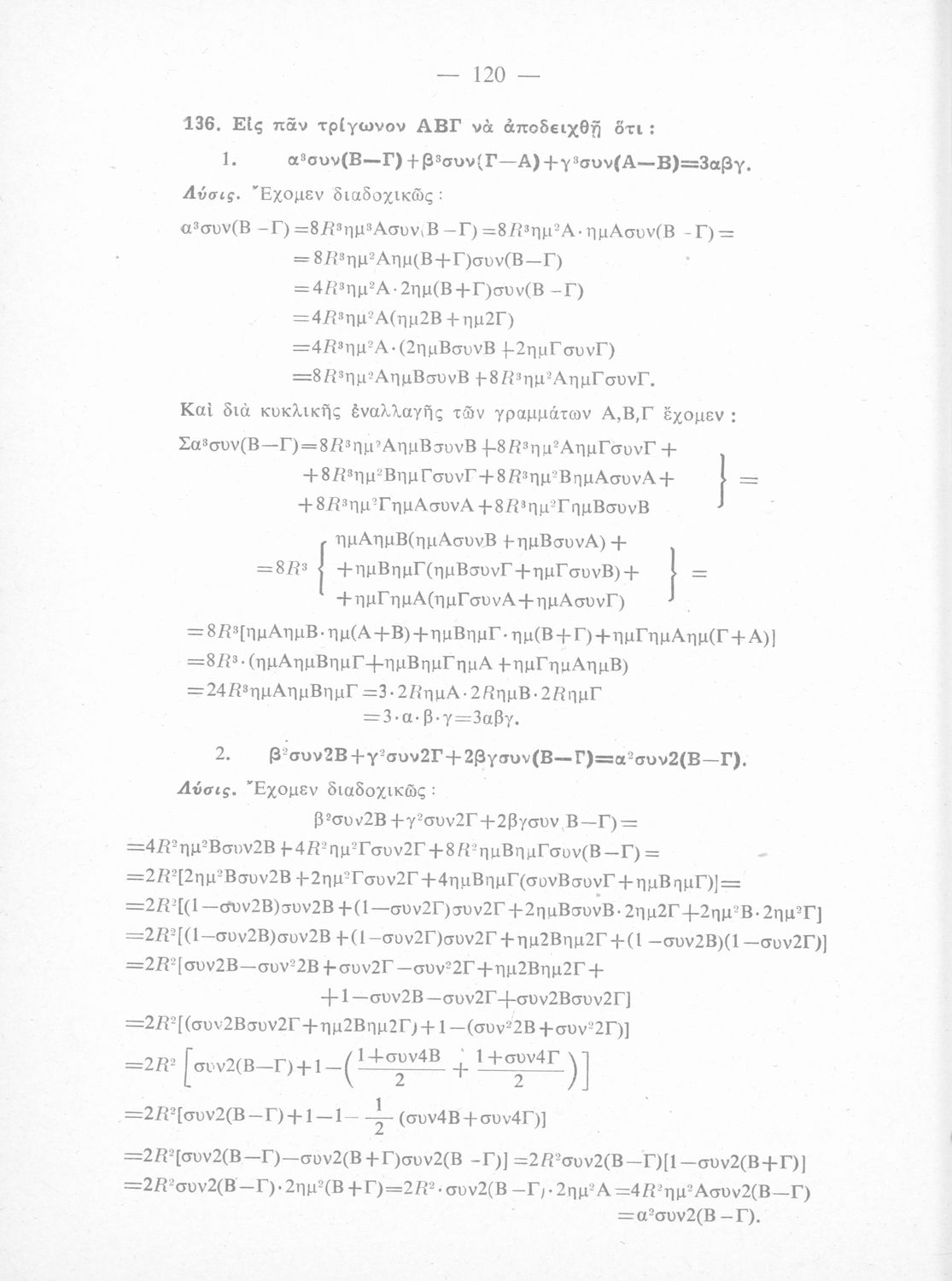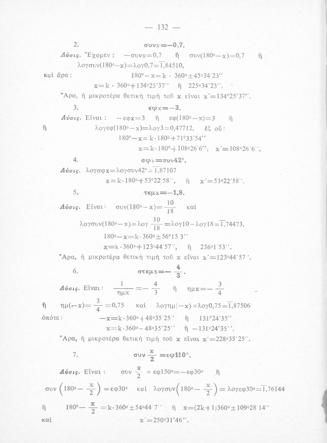 Λύσεις των ασκήσεων Τριγωνομετρίας: περιέχει τας λύσεις των ασκήσεων της Τριγωνομετρίας του ιδίου της Ε΄ τάξεως του Γυμνασίου, Θετικής κατευθύνσεως