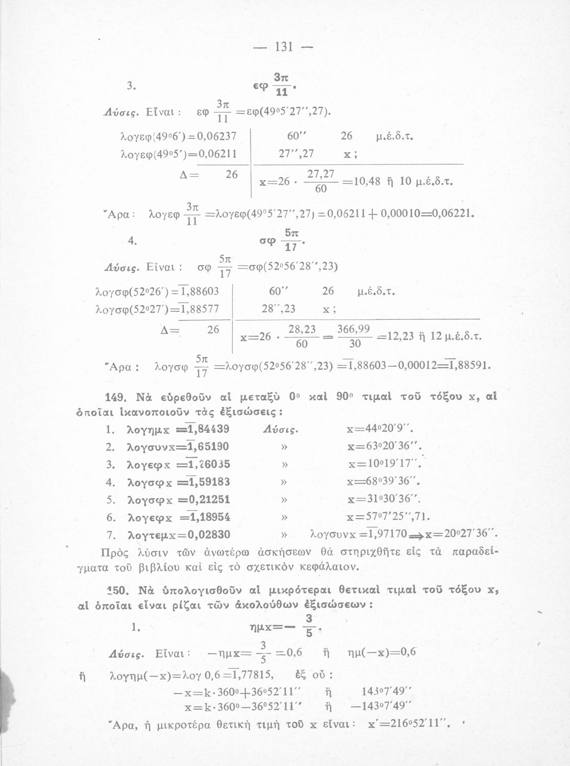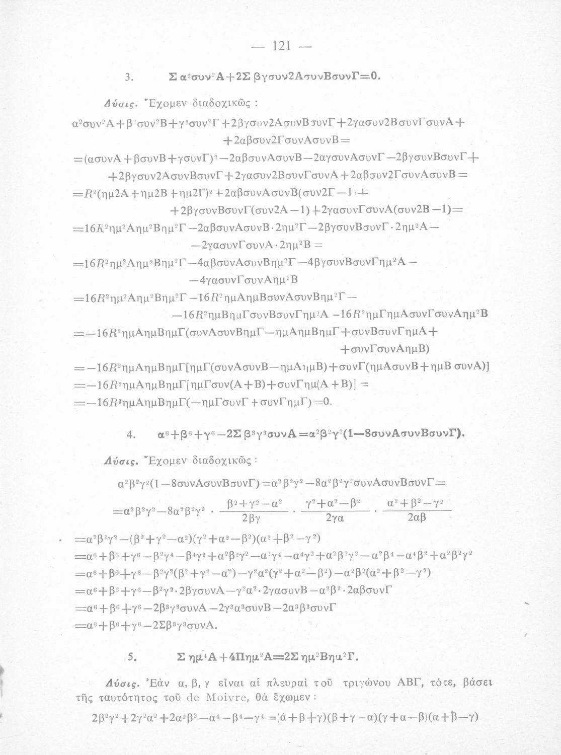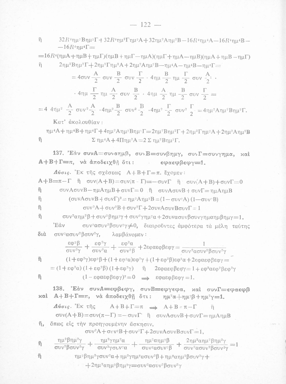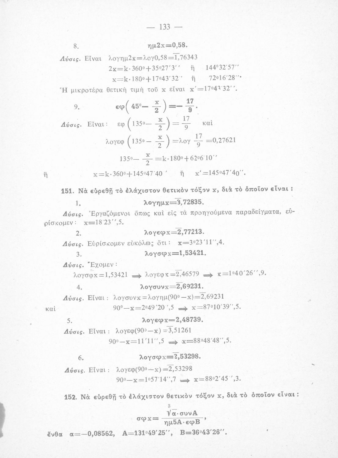 Λύσεις των ασκήσεων Τριγωνομετρίας: περιέχει τας λύσεις των ασκήσεων της Τριγωνομετρίας του ιδίου της Ε΄ τάξεως του Γυμνασίου, Θετικής κατευθύνσεως