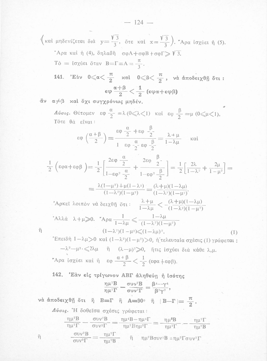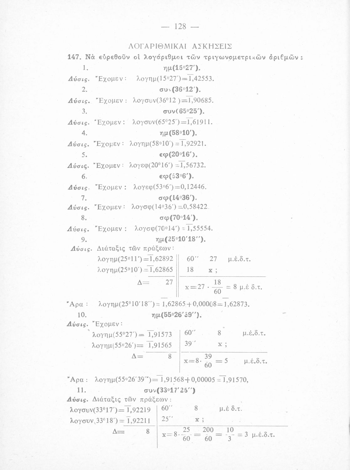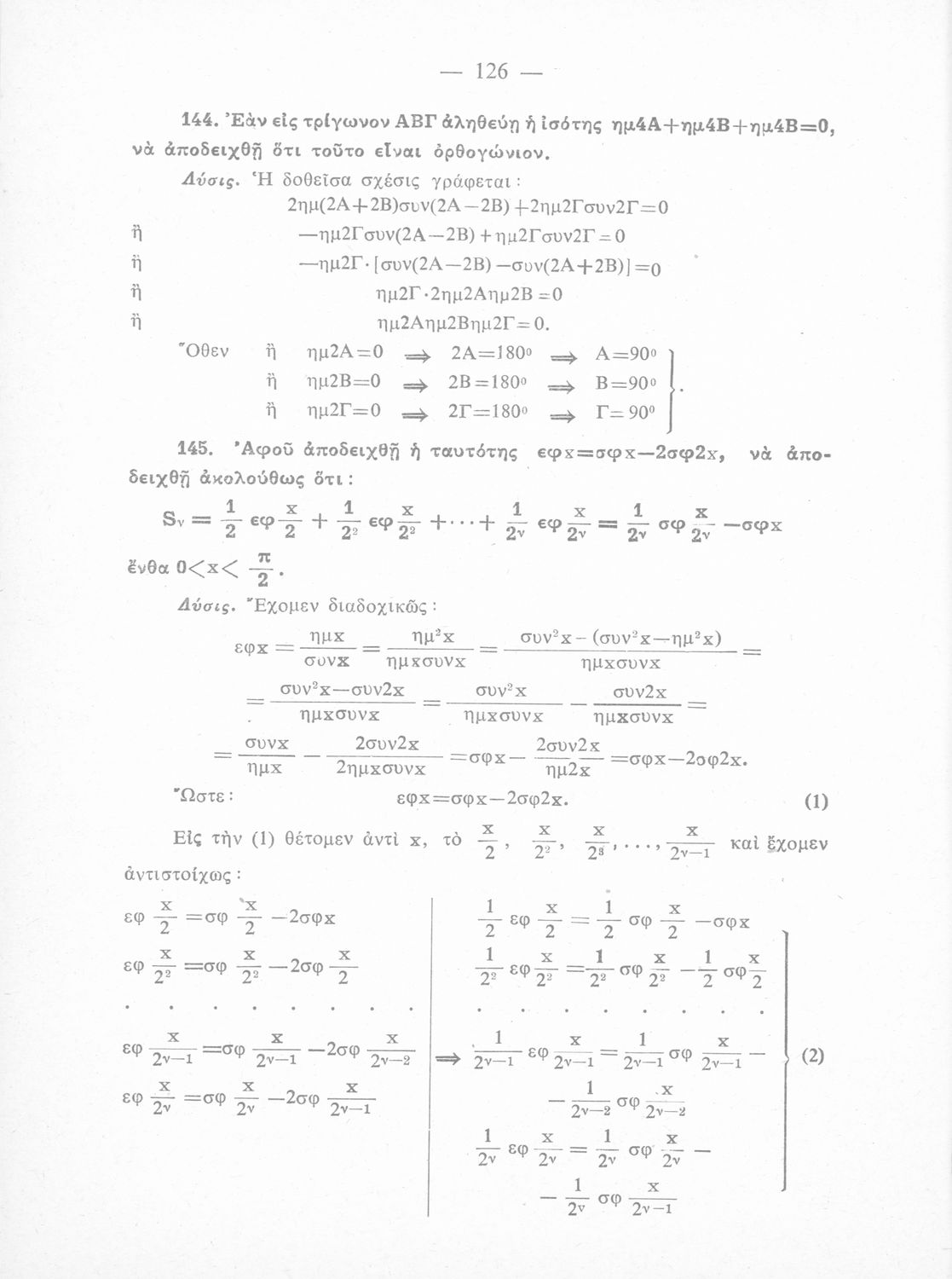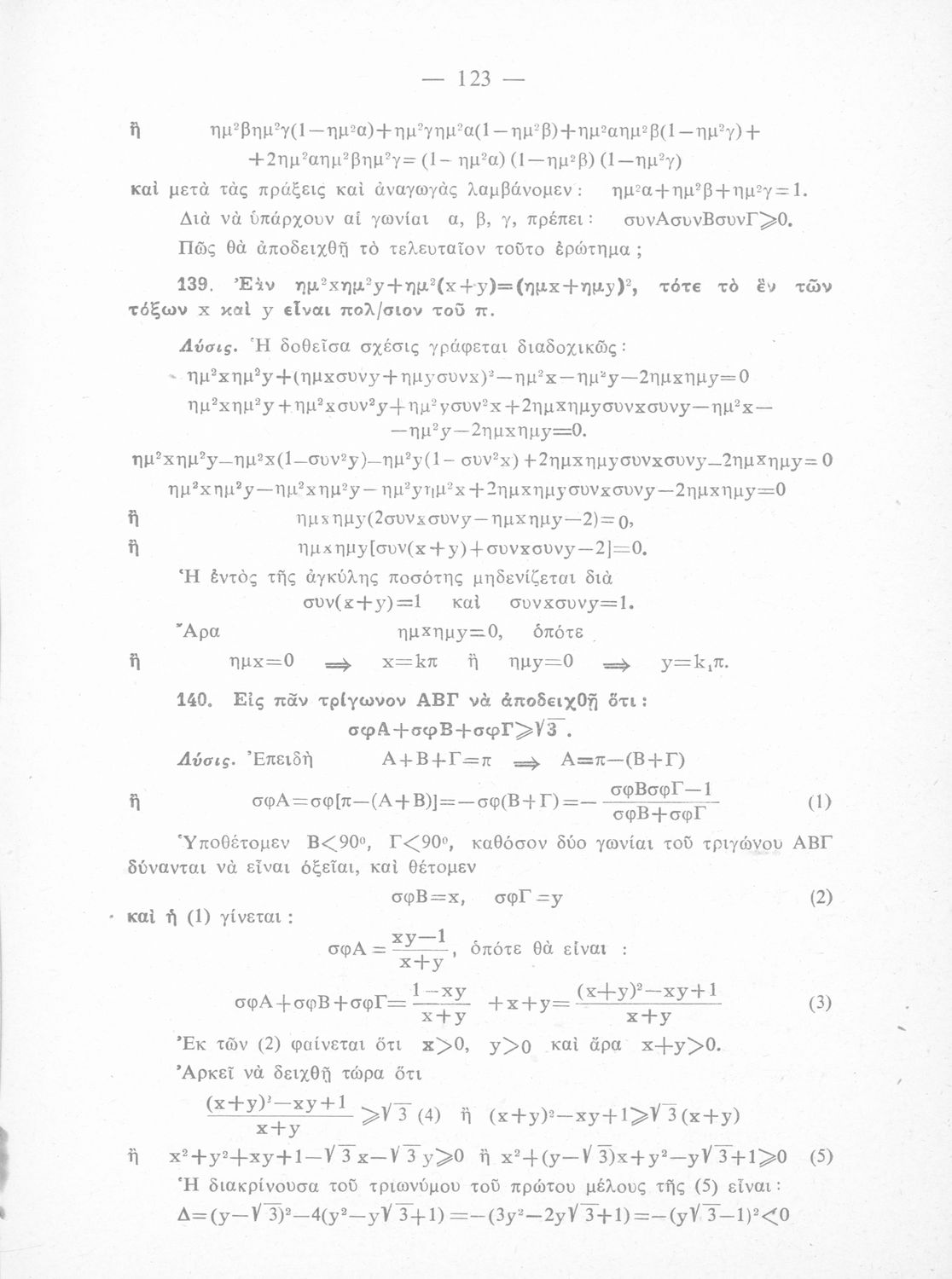 Λύσεις των ασκήσεων Τριγωνομετρίας: περιέχει τας λύσεις των ασκήσεων της Τριγωνομετρίας του ιδίου της Ε΄ τάξεως του Γυμνασίου, Θετικής κατευθύνσεως