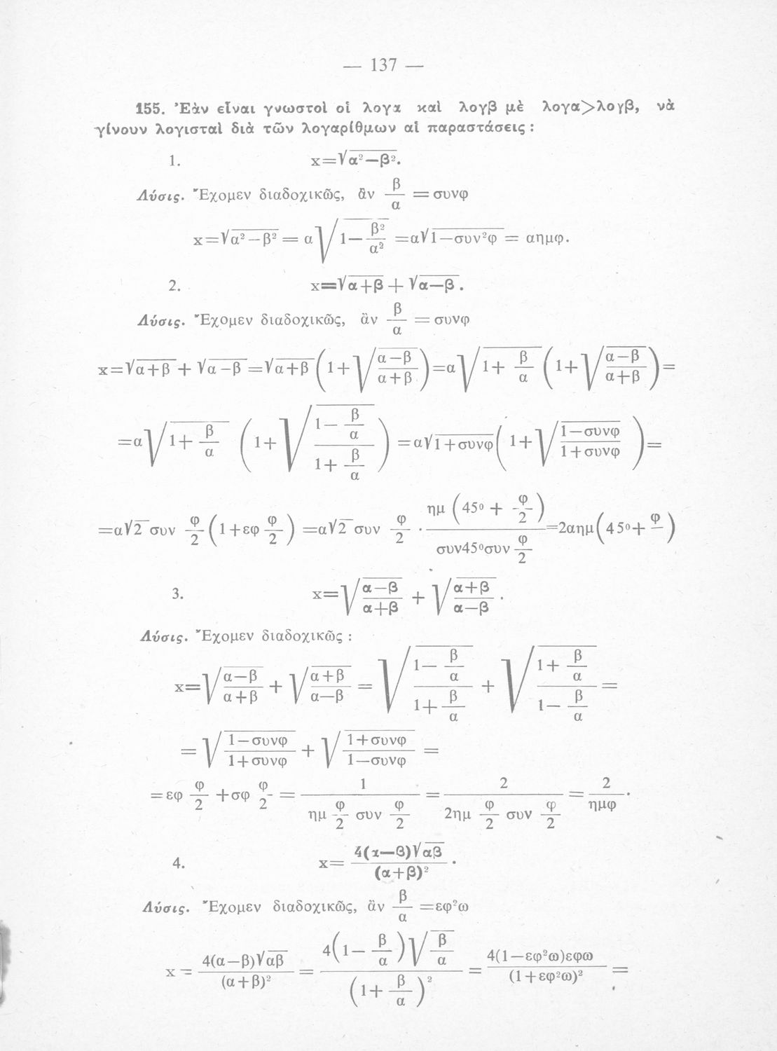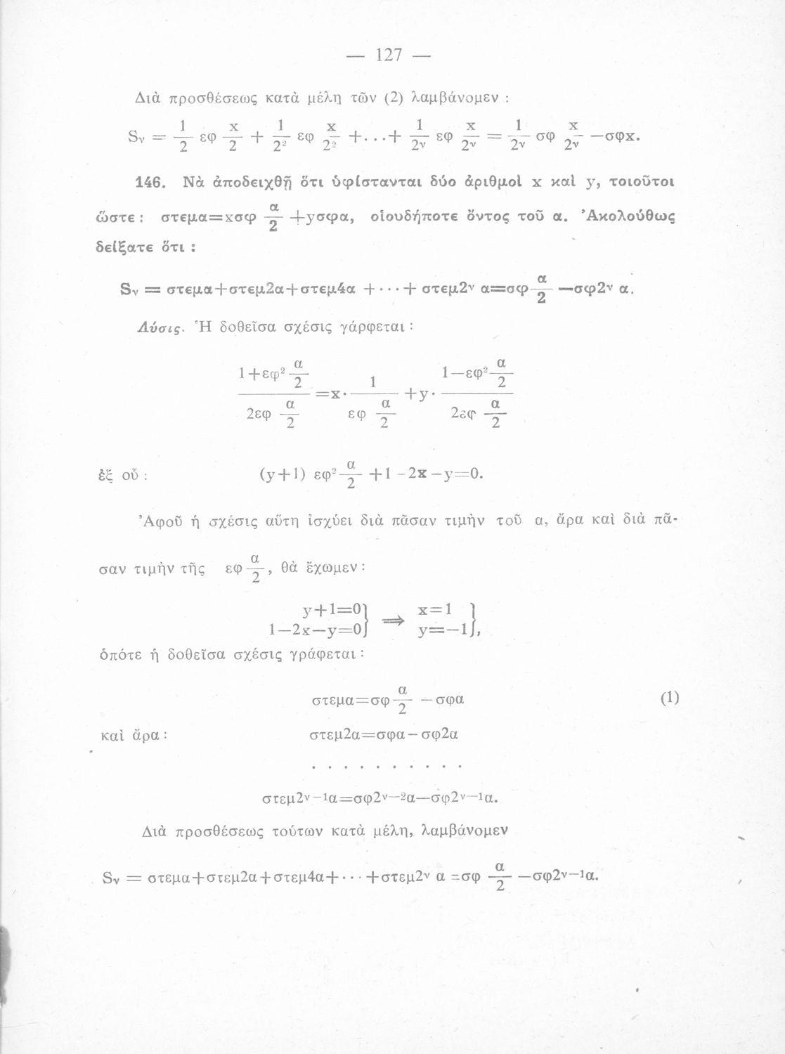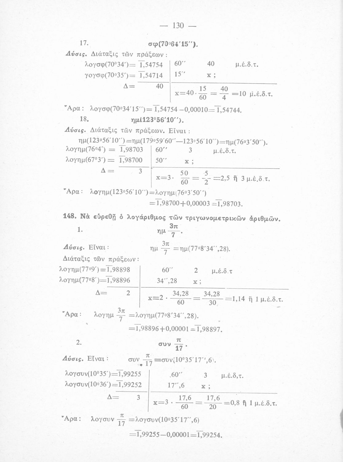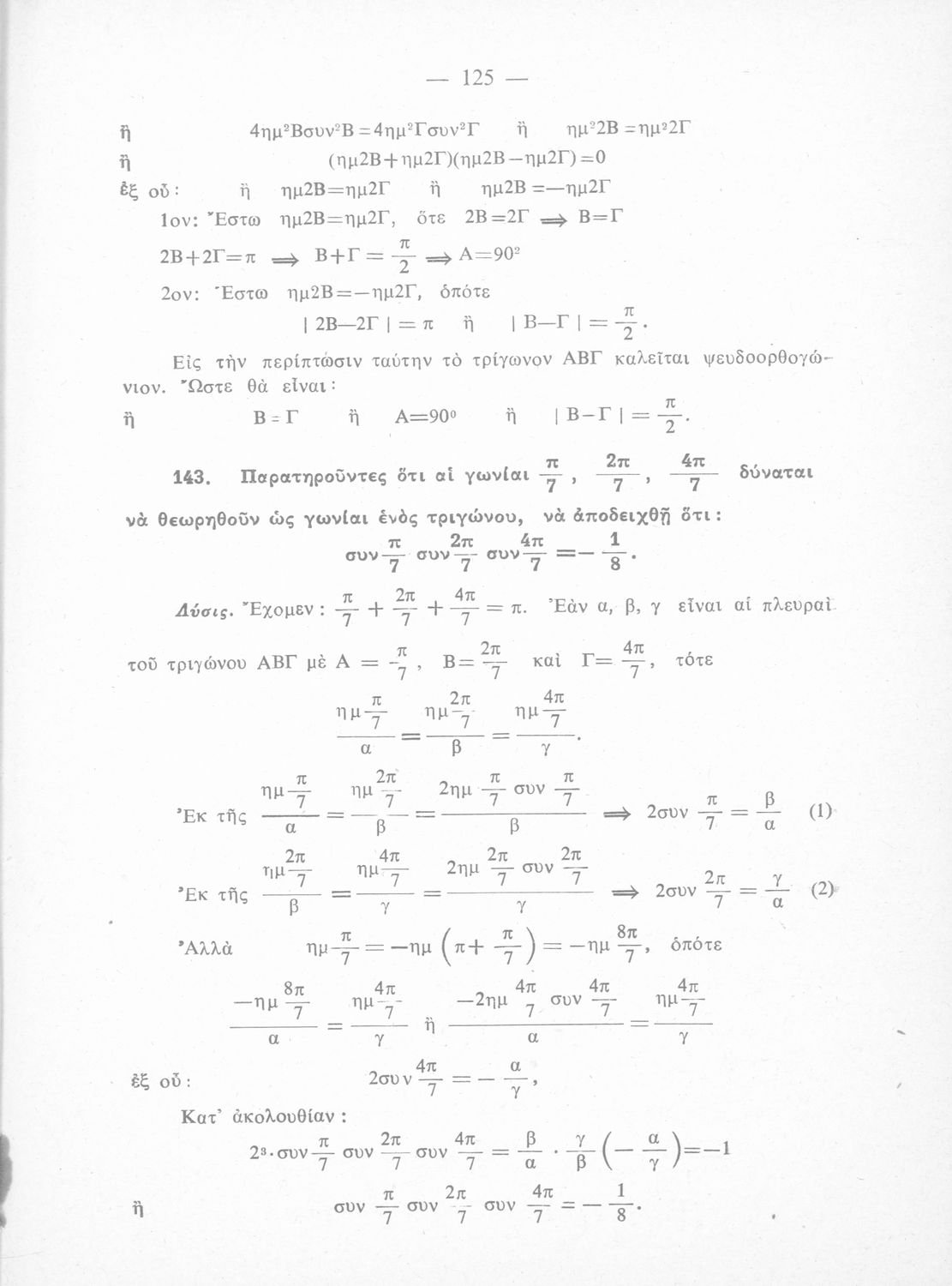 Λύσεις των ασκήσεων Τριγωνομετρίας: περιέχει τας λύσεις των ασκήσεων της Τριγωνομετρίας του ιδίου της Ε΄ τάξεως του Γυμνασίου, Θετικής κατευθύνσεως
