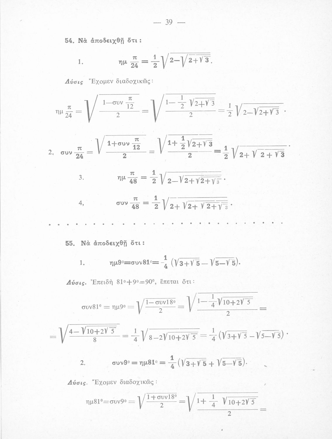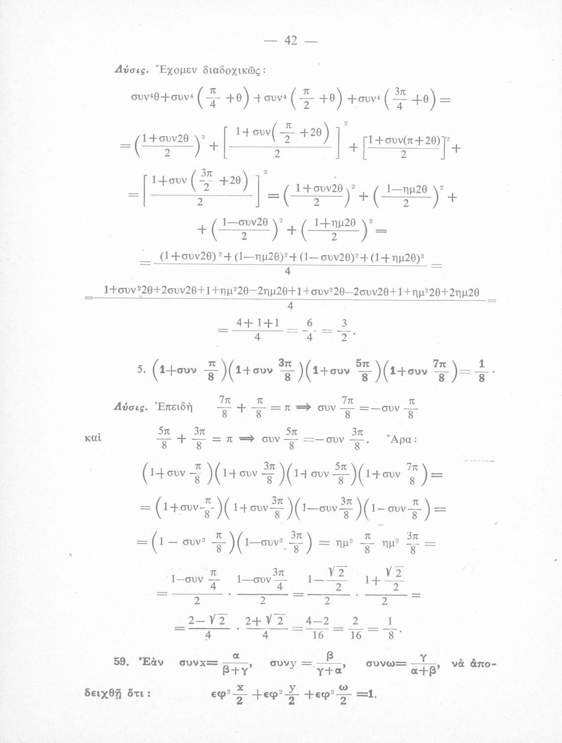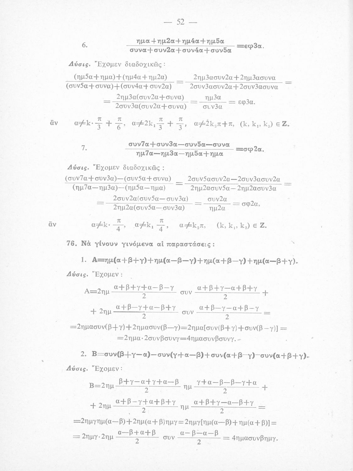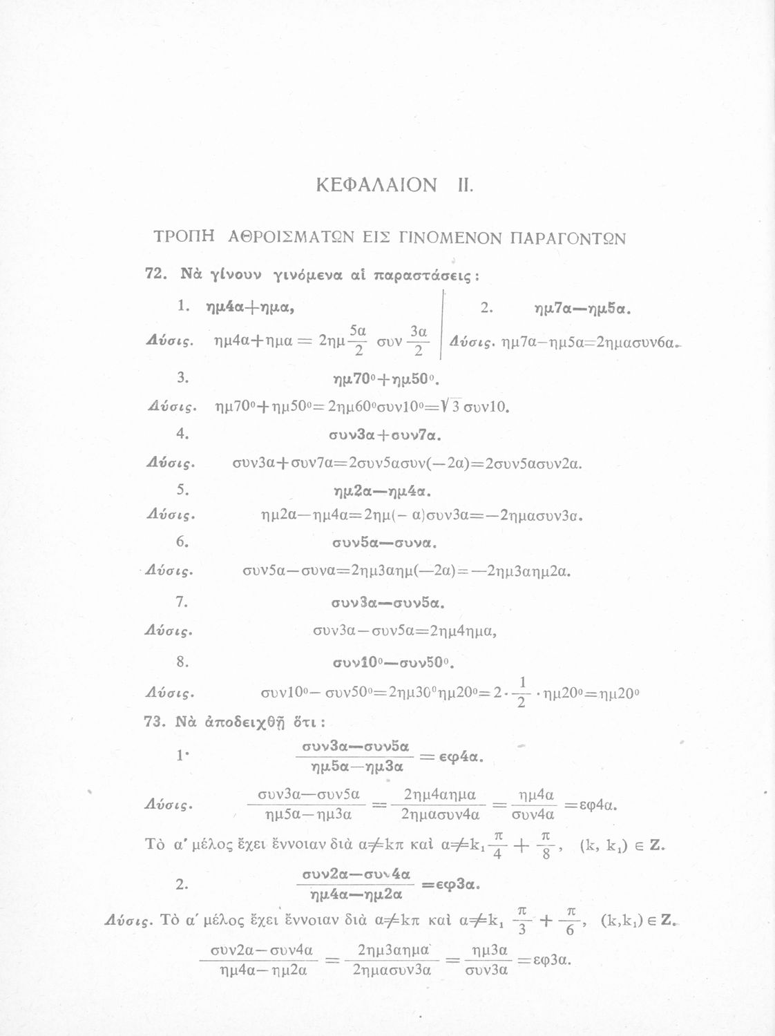 Λύσεις των ασκήσεων Τριγωνομετρίας: περιέχει τας λύσεις των ασκήσεων της Τριγωνομετρίας του ιδίου της Ε΄ τάξεως του Γυμνασίου, Θετικής κατευθύνσεως
