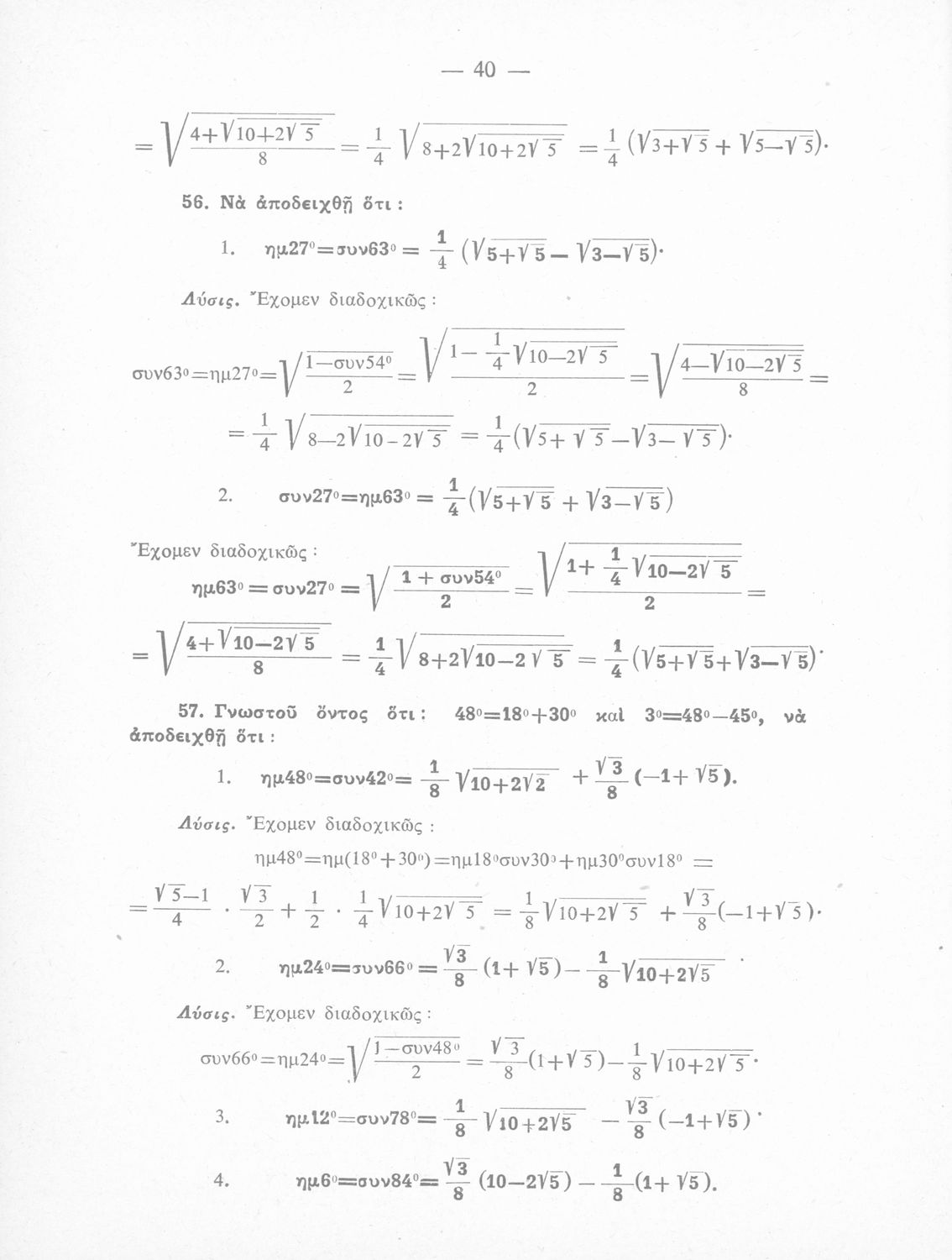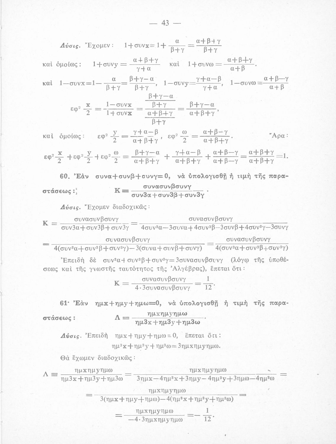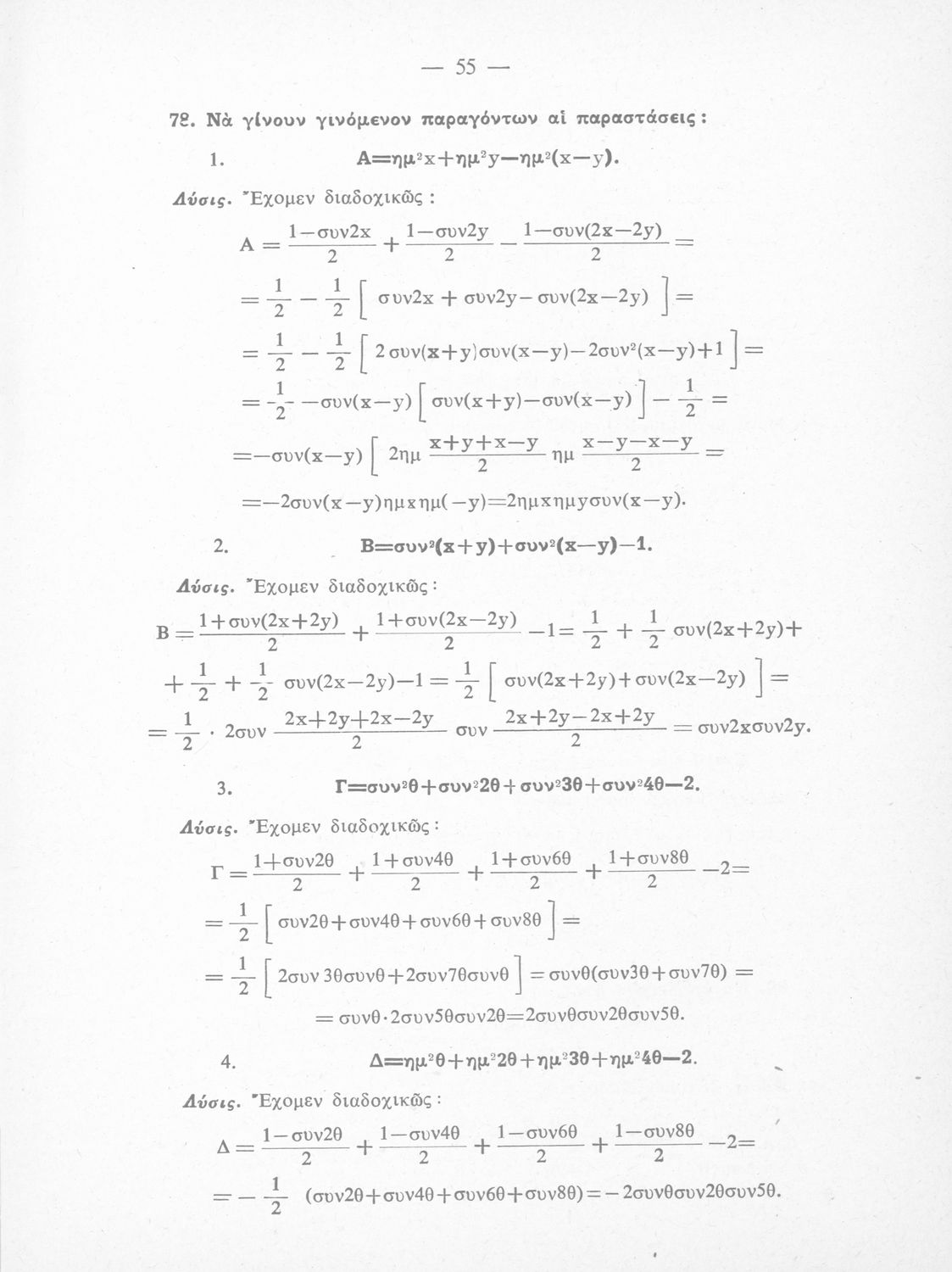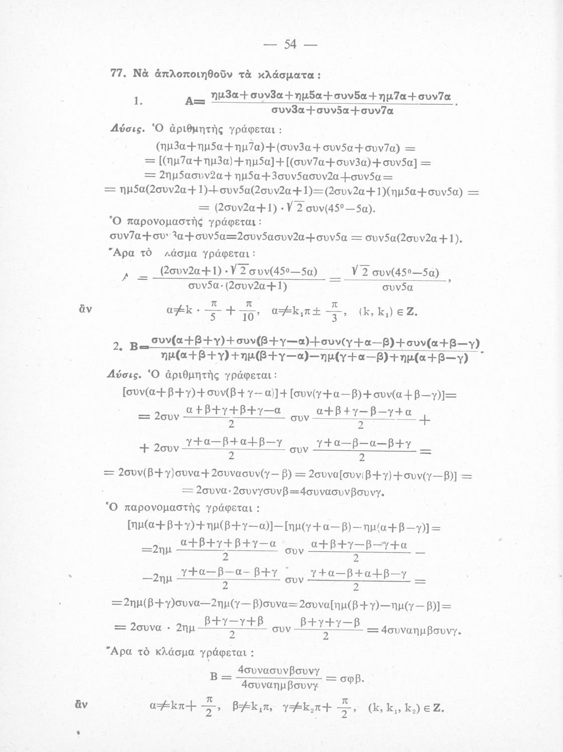 Λύσεις των ασκήσεων Τριγωνομετρίας: περιέχει τας λύσεις των ασκήσεων της Τριγωνομετρίας του ιδίου της Ε΄ τάξεως του Γυμνασίου, Θετικής κατευθύνσεως