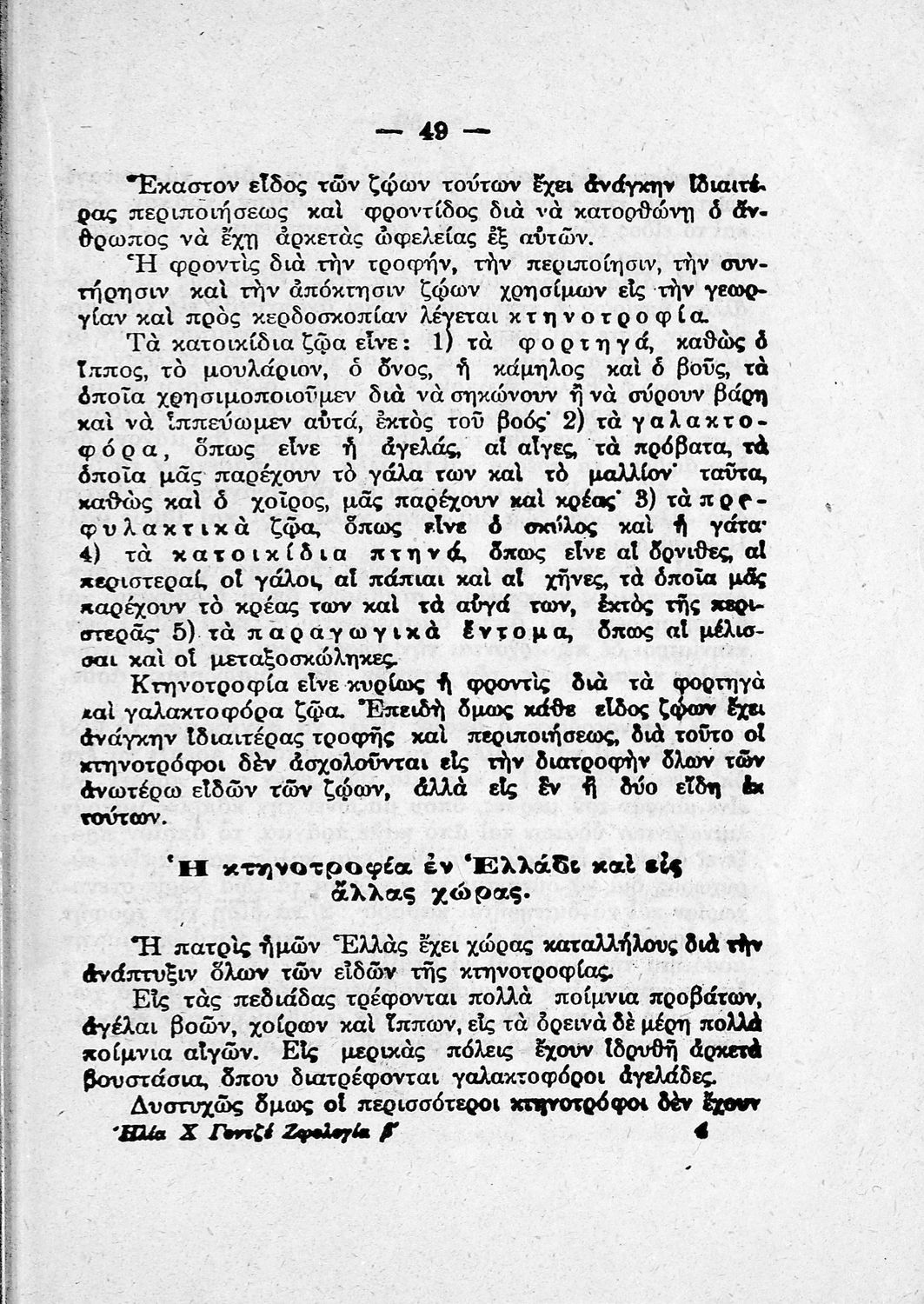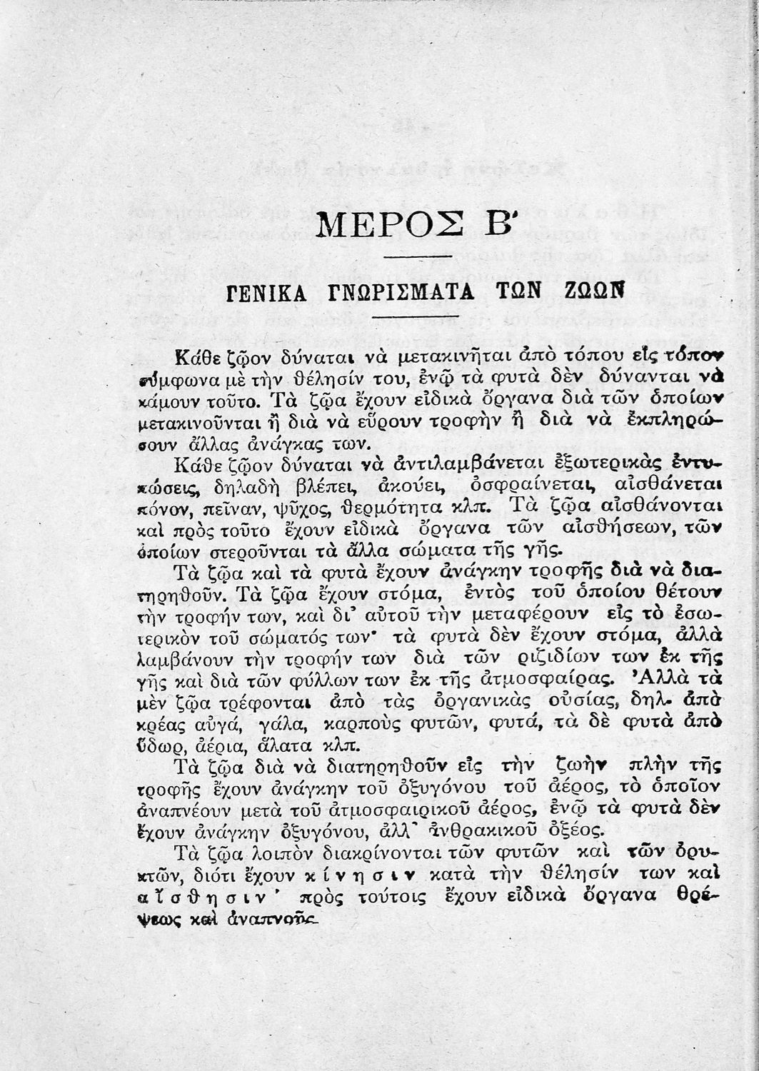 Βαθμίδα εκπαίδευσης: Πρωτοβάθμια Τάξη: Ε' Δημοτικού / ΣΤ' Δημοτικού Μάθημα: Ζωολογία Γλώσσα: Απλή καθαρεύουσα Παρουσίαση περιεχομένου: Μαθητικό βοήθημα Ζωολογίας για τις Ε΄ και ΣΤ΄ Δημοτικού που παρουσιάζει τα ζώα με βάση το χώρο στον οποίο διαβιούν και την συνομοταξία στην οποία ανήκουν. |