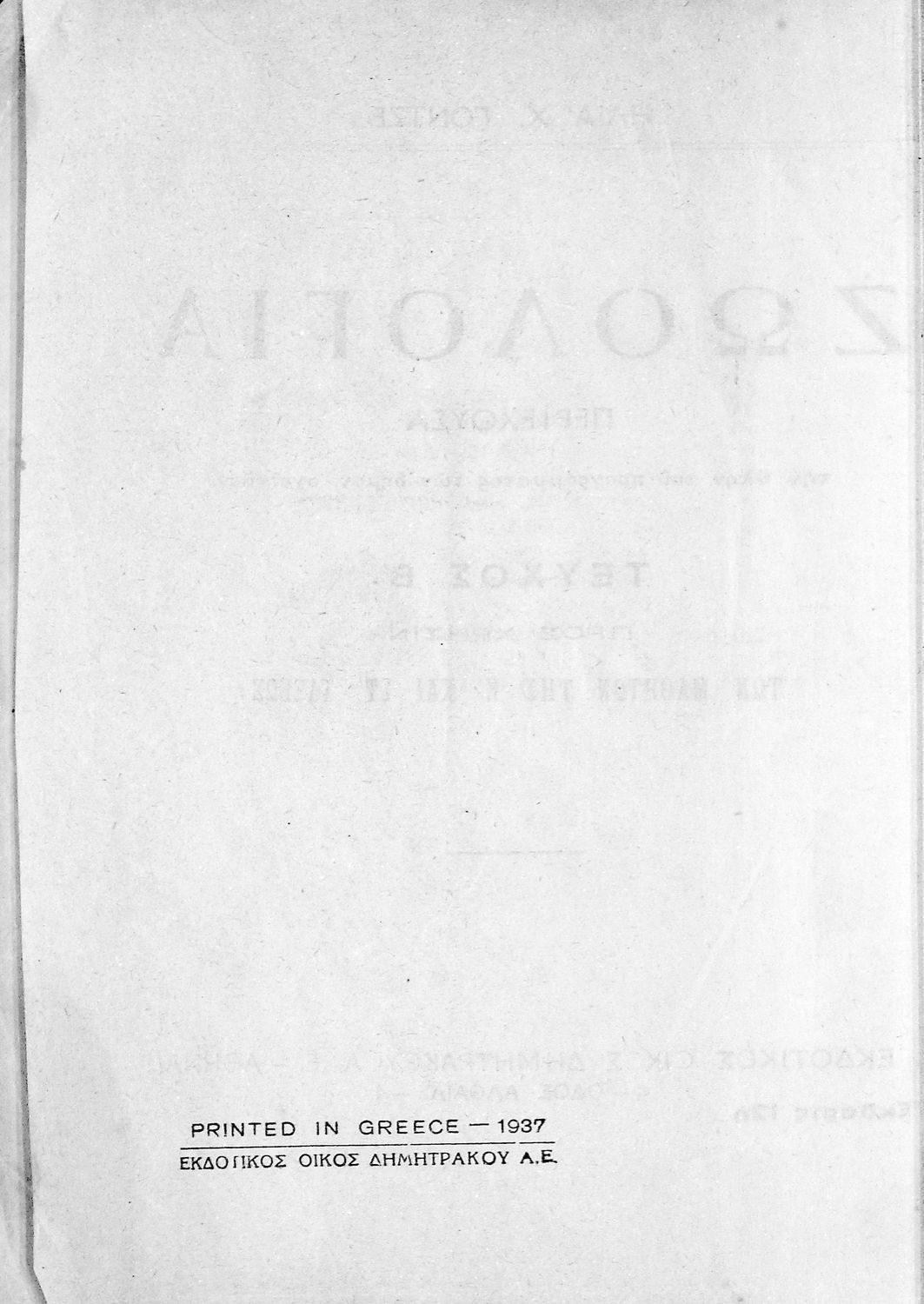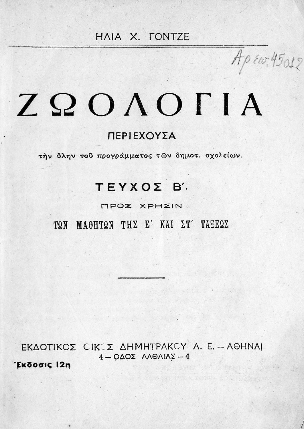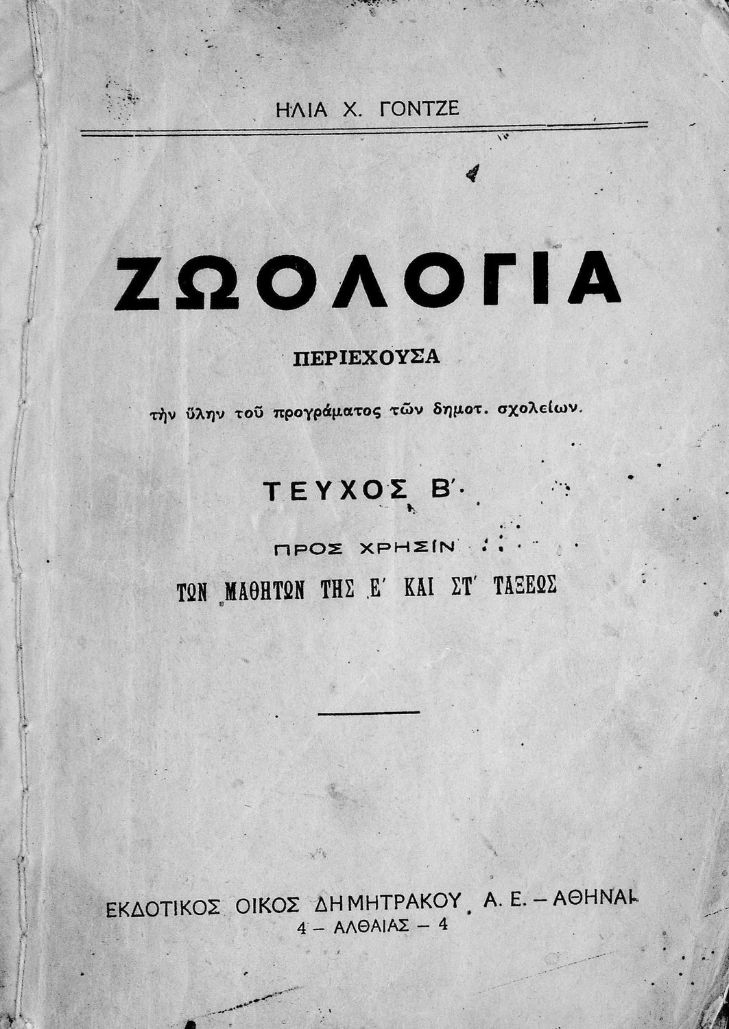 Τίτλος: Ζωολογία προς χρήσιν των μαθητών της Ε΄ και ΣΤ΄ τάξεως τεύχος Β΄