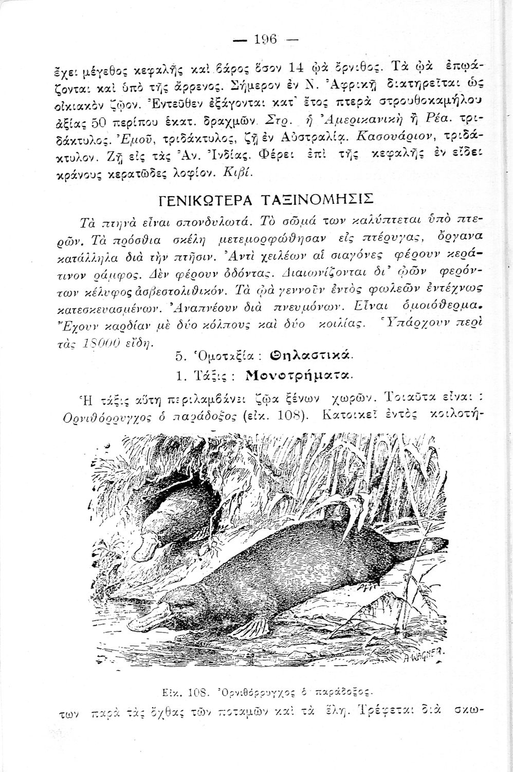 Σχολικό εγχειρίδιο Ζωολογίας για τα Γυμνάσια και τα Διδασκαλεία που εστιάζει στην ανθρώπινη φυσιολογία και παρουσιάζει τα διάφορα ζώα ανάλογα με την συνομοταξία στην οποία ανήκουν.