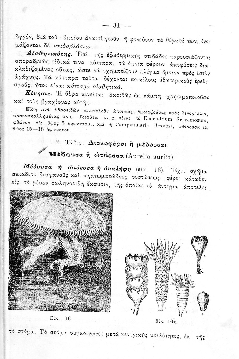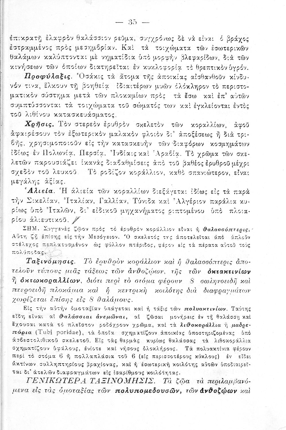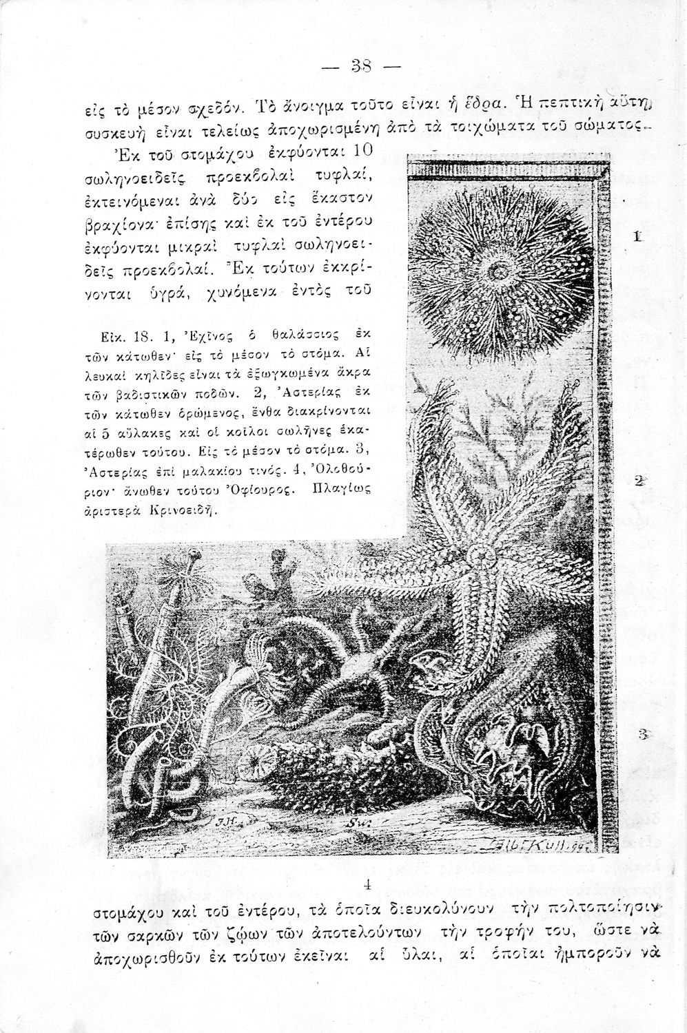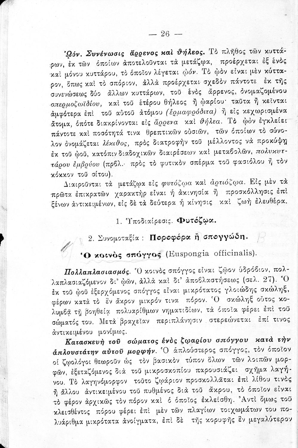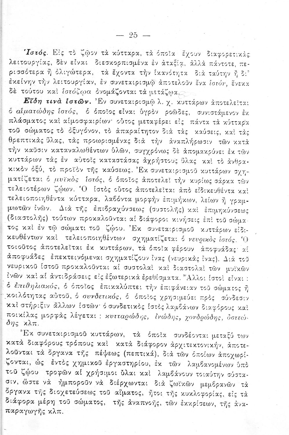 Σχολικό εγχειρίδιο Ζωολογίας για τα Γυμνάσια και τα Διδασκαλεία που εστιάζει στην ανθρώπινη φυσιολογία και παρουσιάζει τα διάφορα ζώα ανάλογα με την συνομοταξία στην οποία ανήκουν.