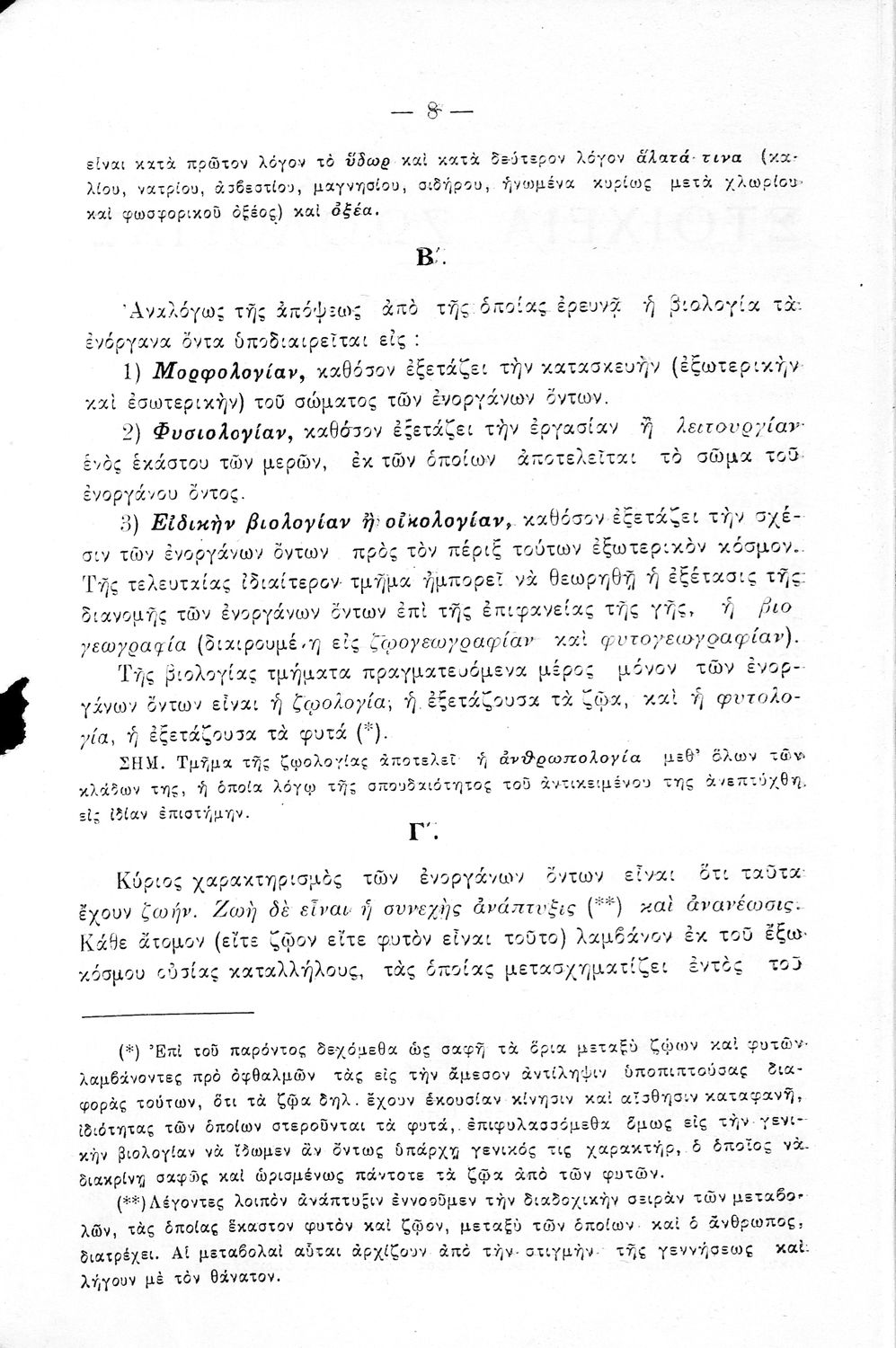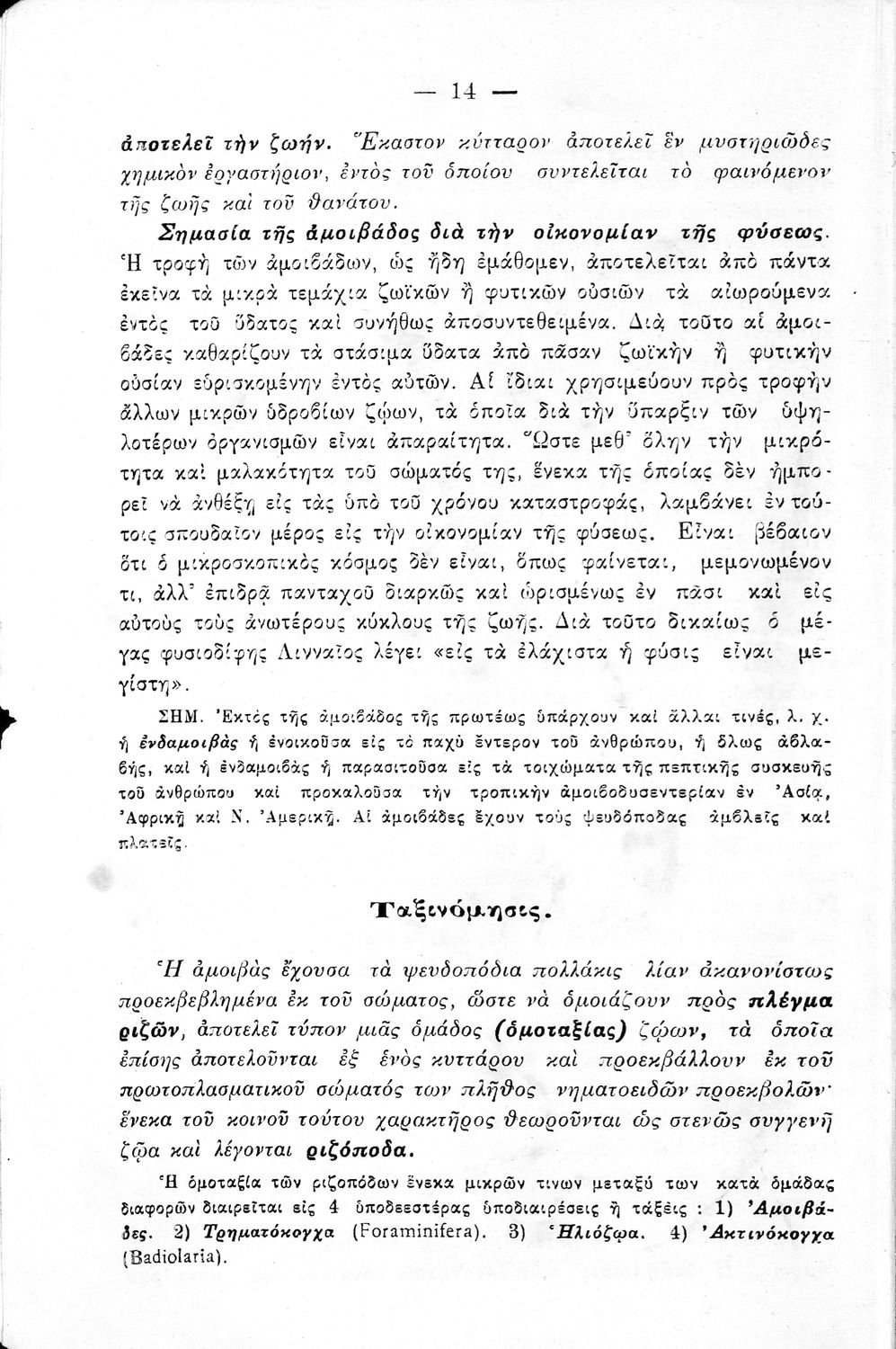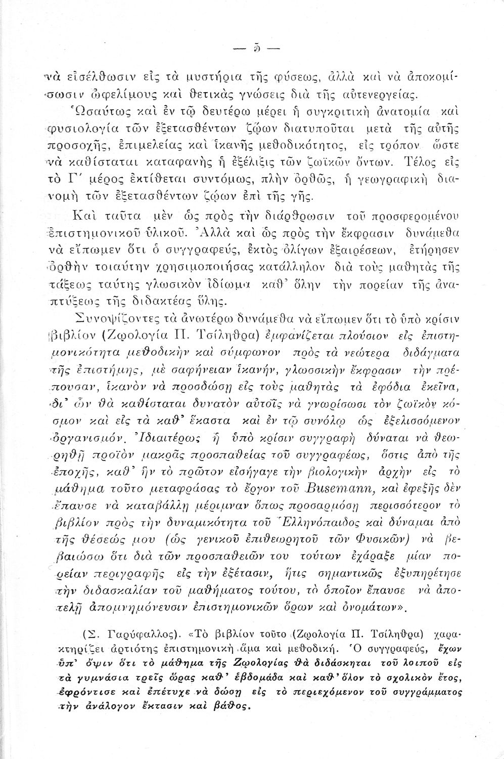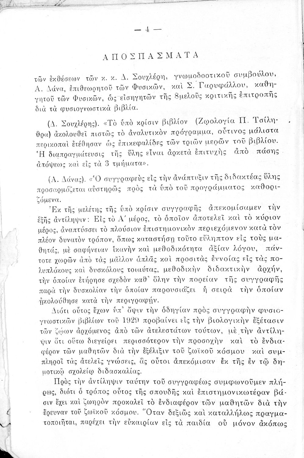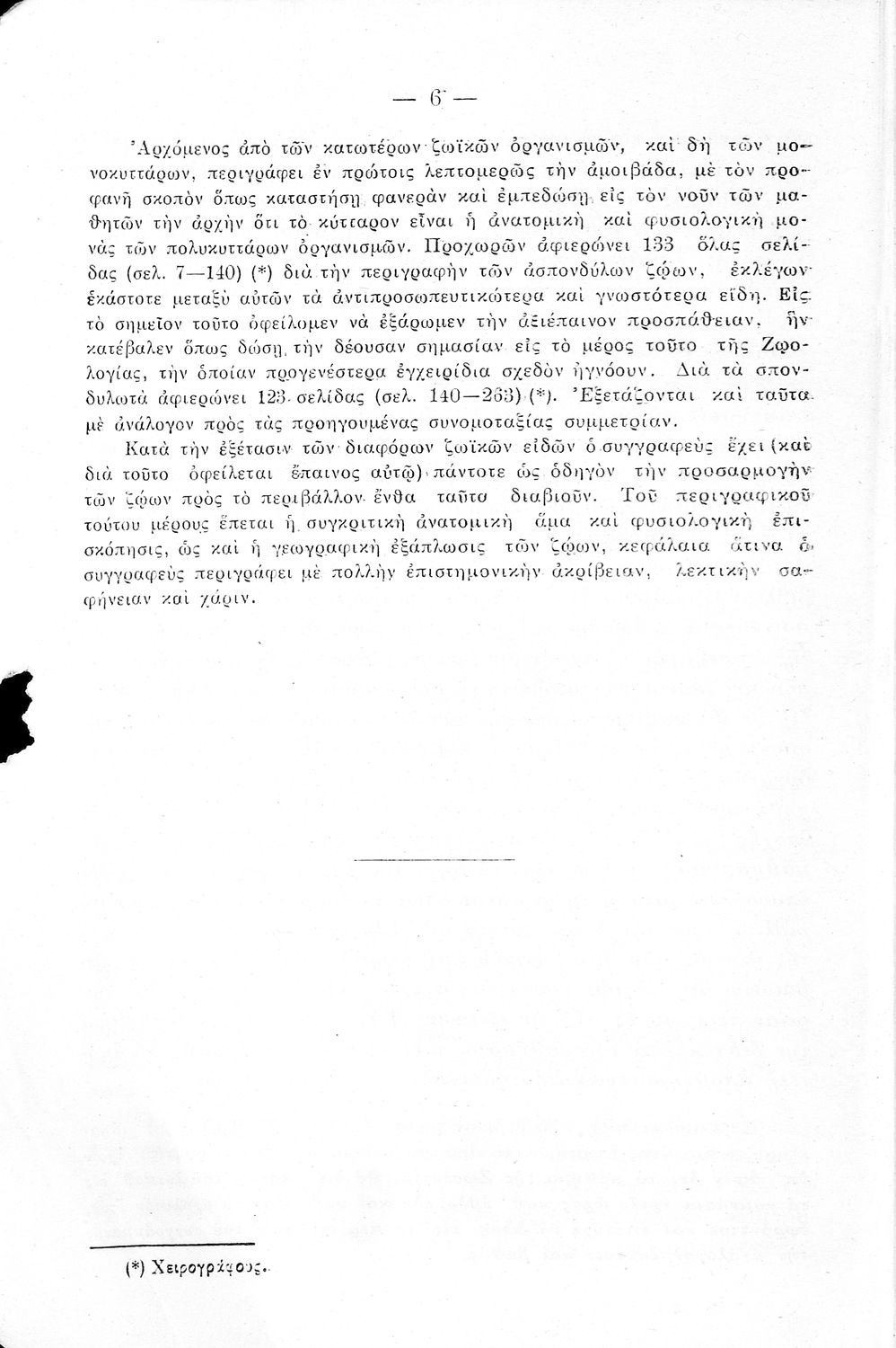 Σχολικό εγχειρίδιο Ζωολογίας για τα Γυμνάσια και τα Διδασκαλεία που εστιάζει στην ανθρώπινη φυσιολογία και παρουσιάζει τα διάφορα ζώα ανάλογα με την συνομοταξία στην οποία ανήκουν.
