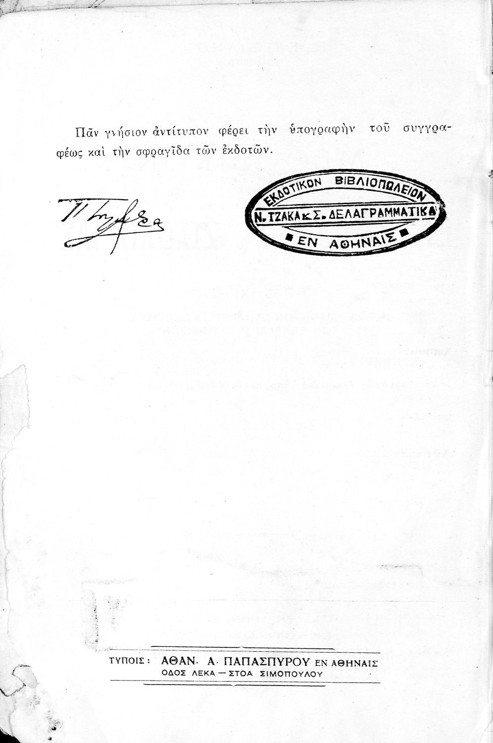 Εκδότης: Δημ. Ν. Τζάκας, Στεφ. Δελαγραμμάτικας