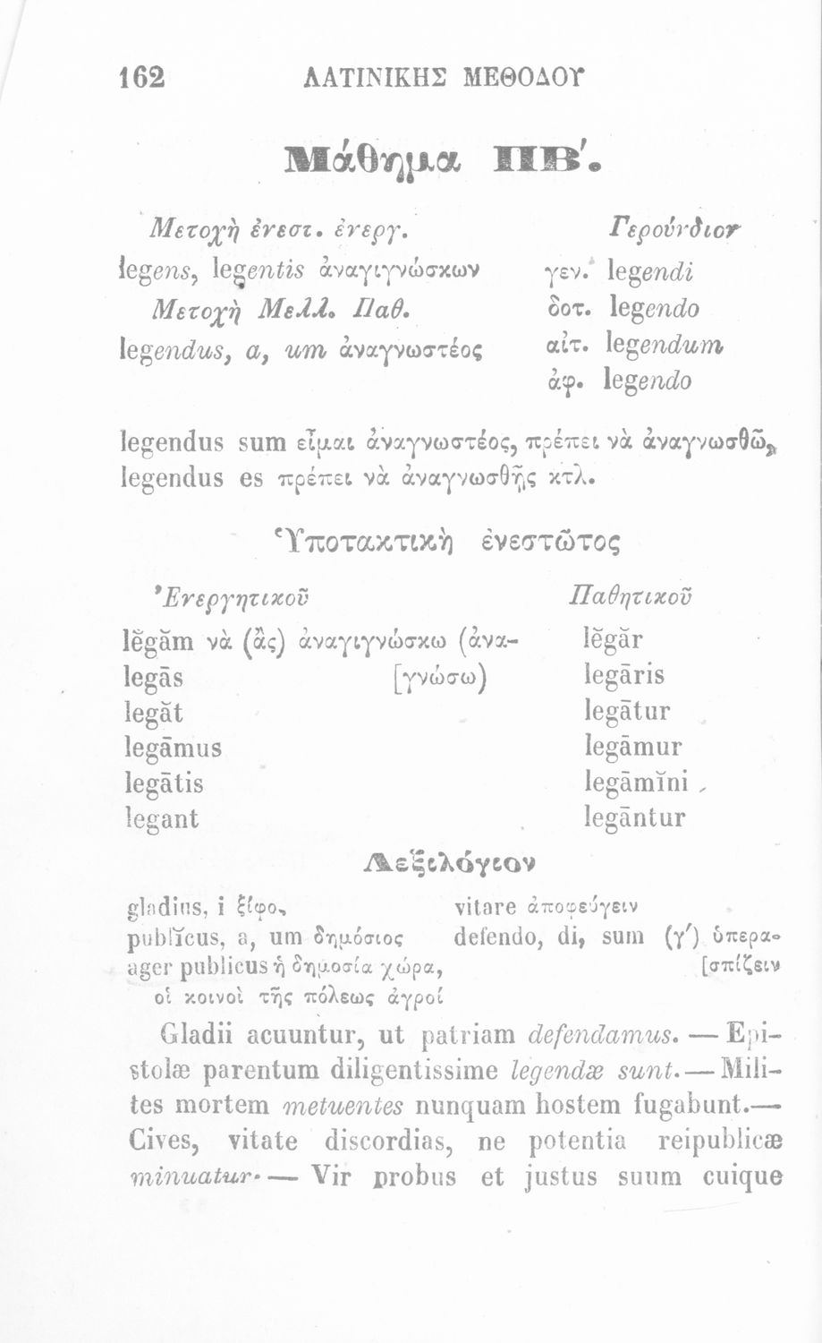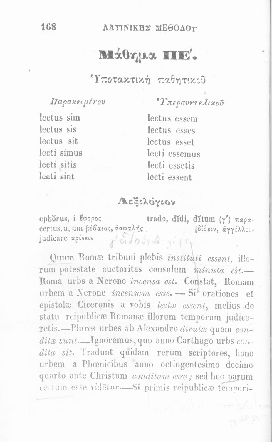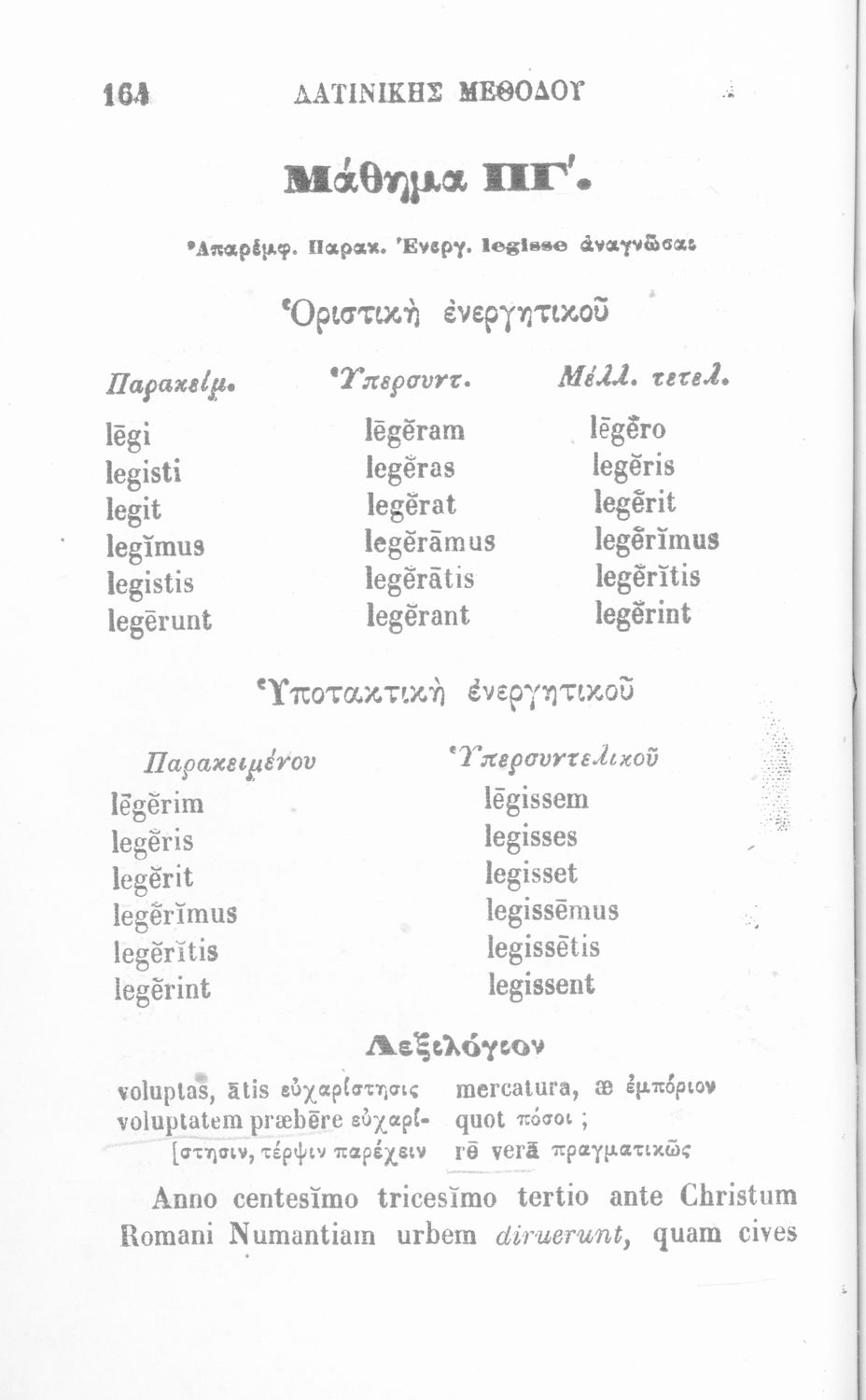 Σχολικό εγχειρίδιο Λατινικών που περιλαμβάνει γραμματική, συντακτικό, κείμενα και λεξιλόγιο.