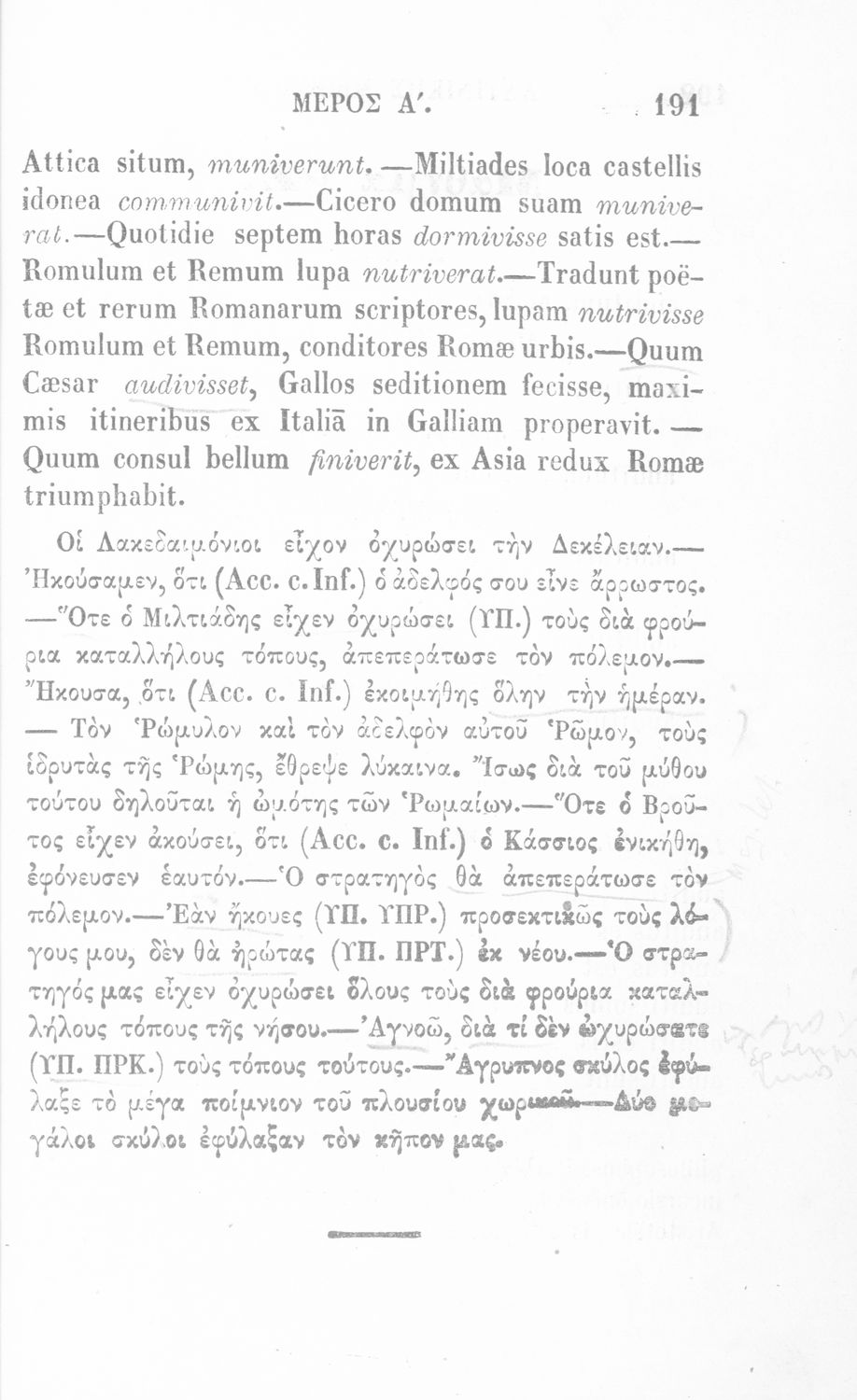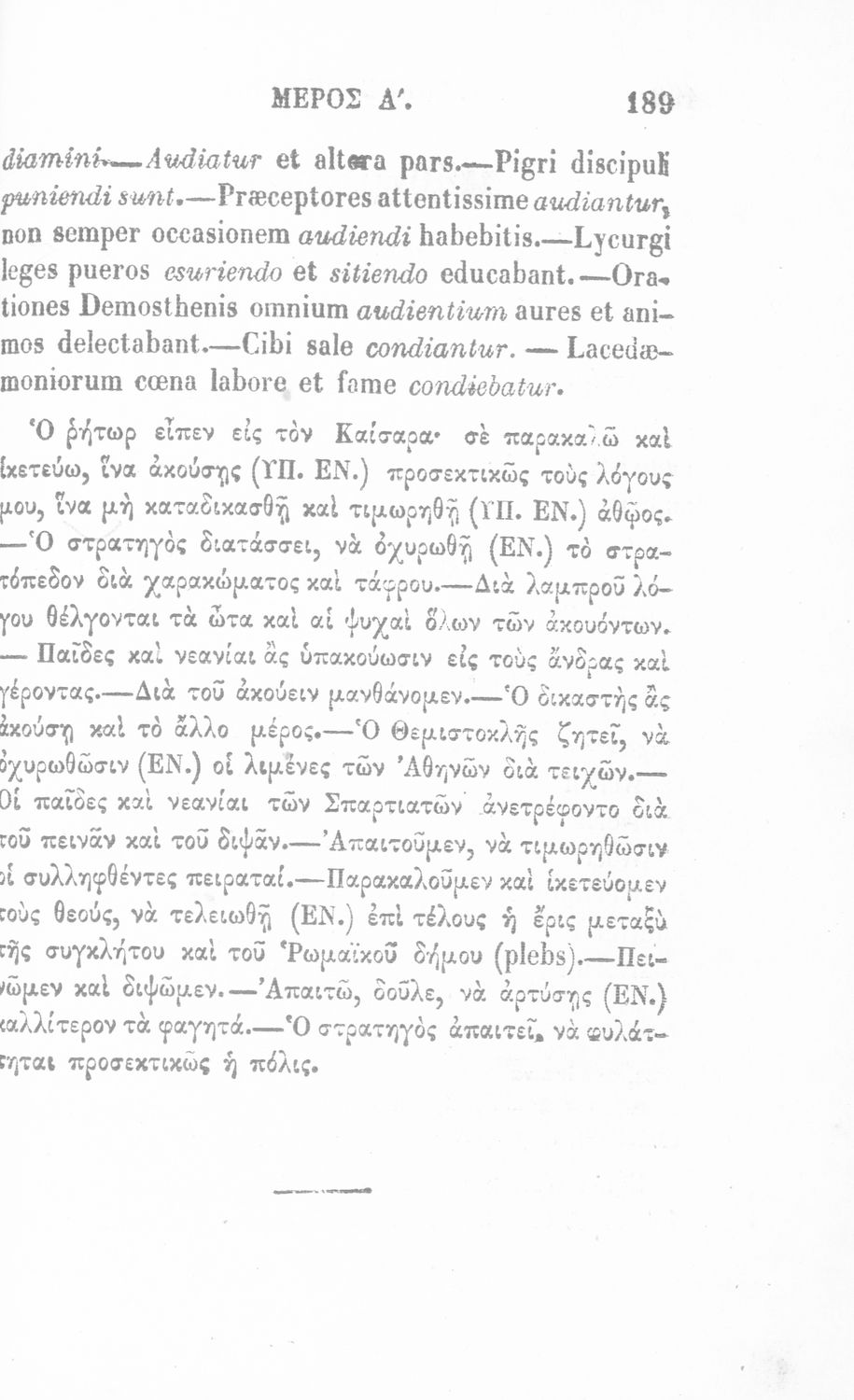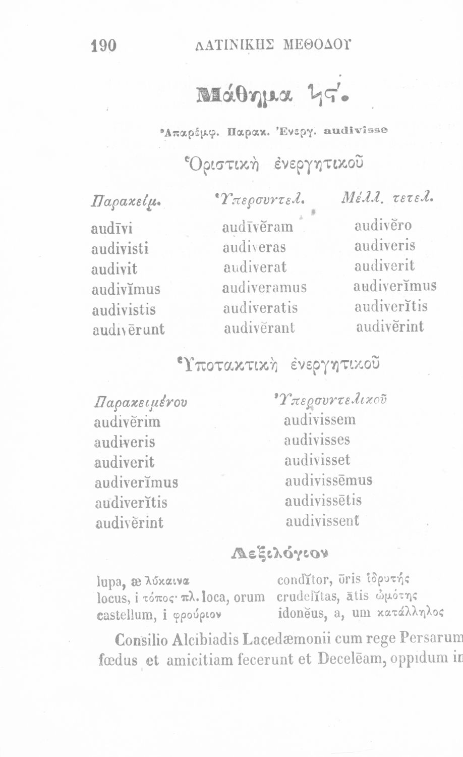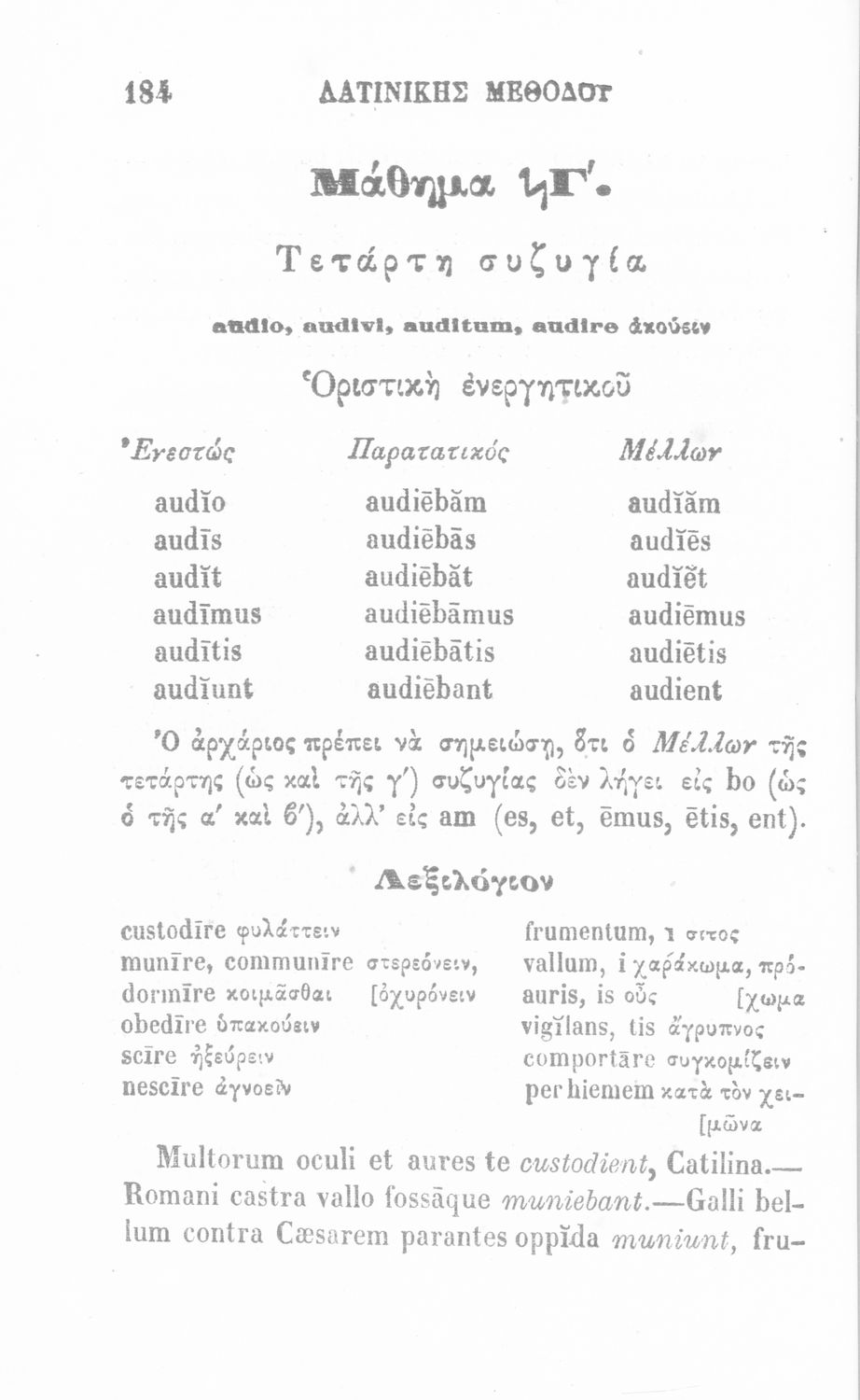 Σχολικό εγχειρίδιο Λατινικών που περιλαμβάνει γραμματική, συντακτικό, κείμενα και λεξιλόγιο.