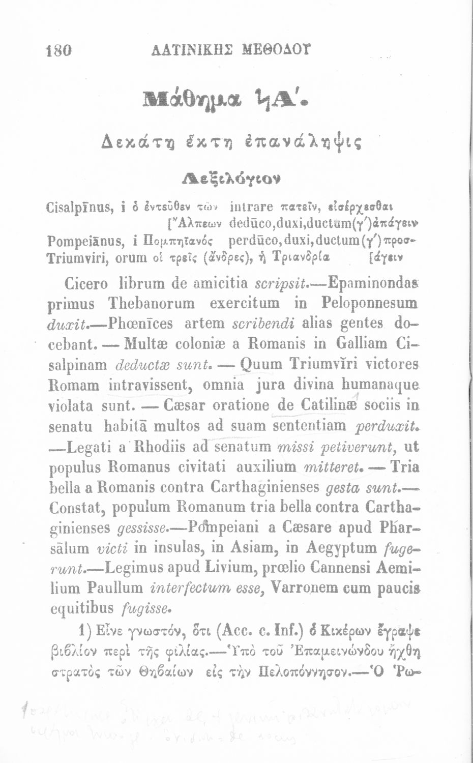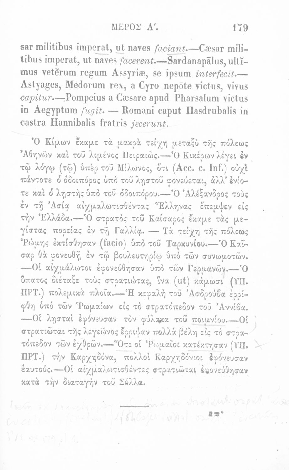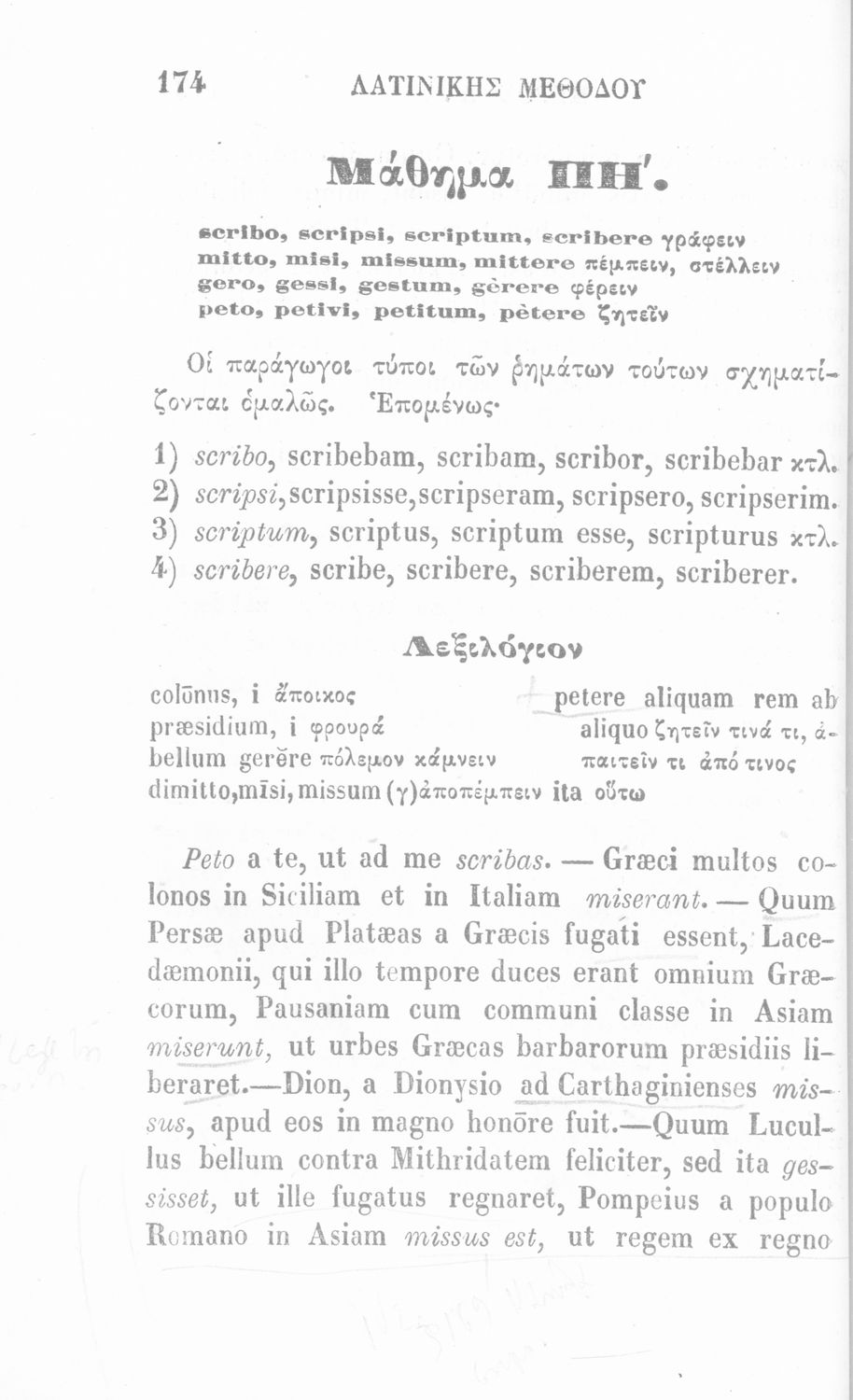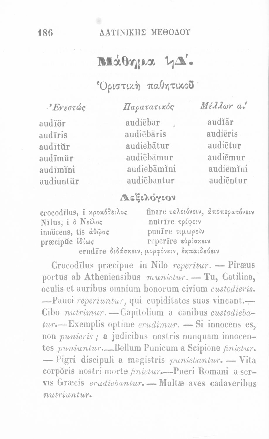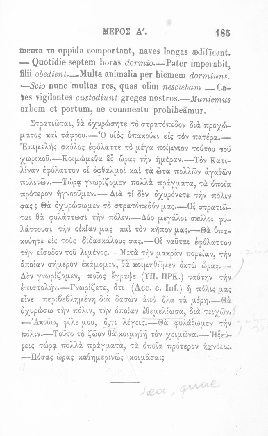 Σχολικό εγχειρίδιο Λατινικών που περιλαμβάνει γραμματική, συντακτικό, κείμενα και λεξιλόγιο.