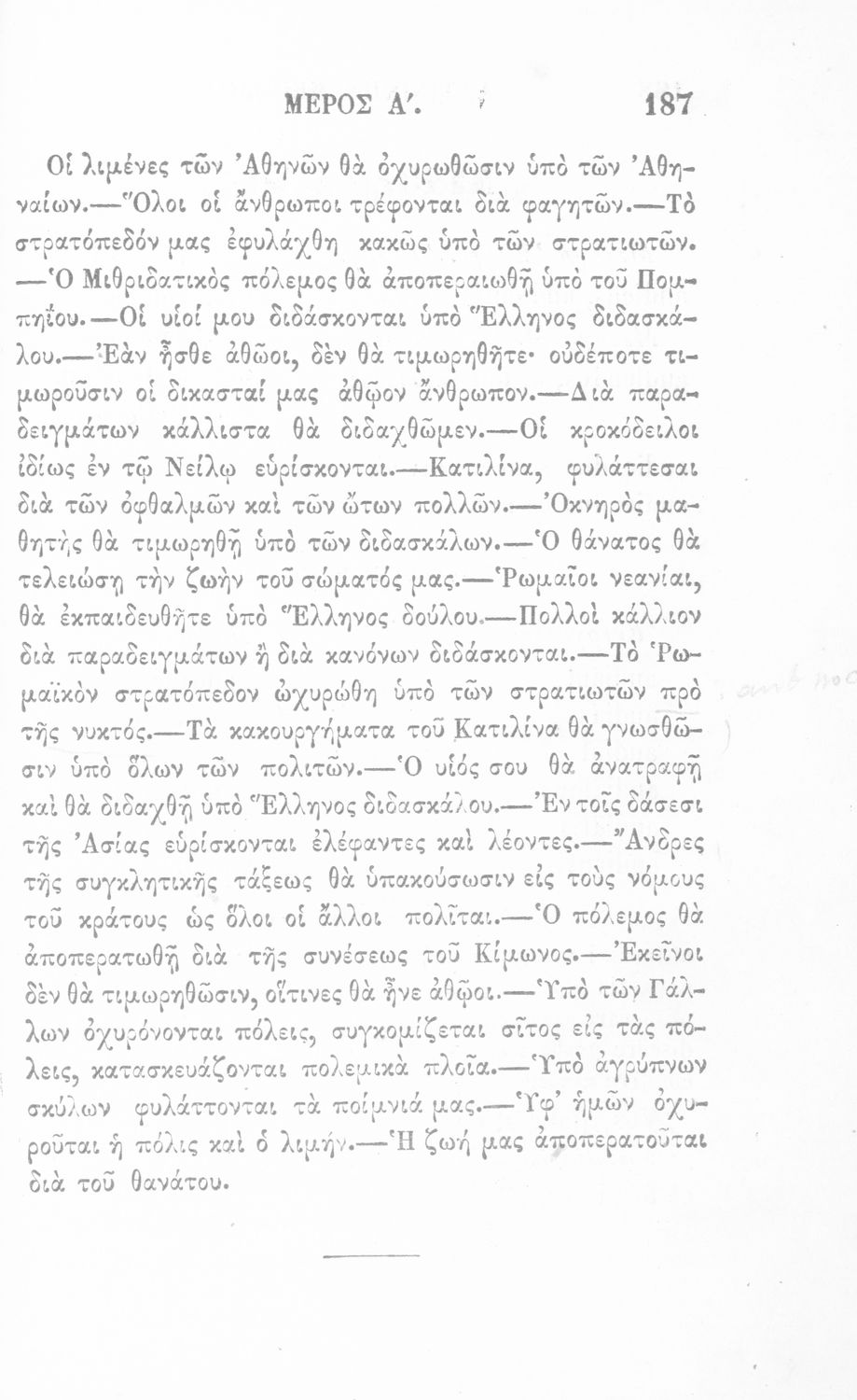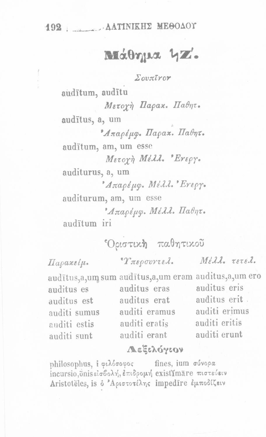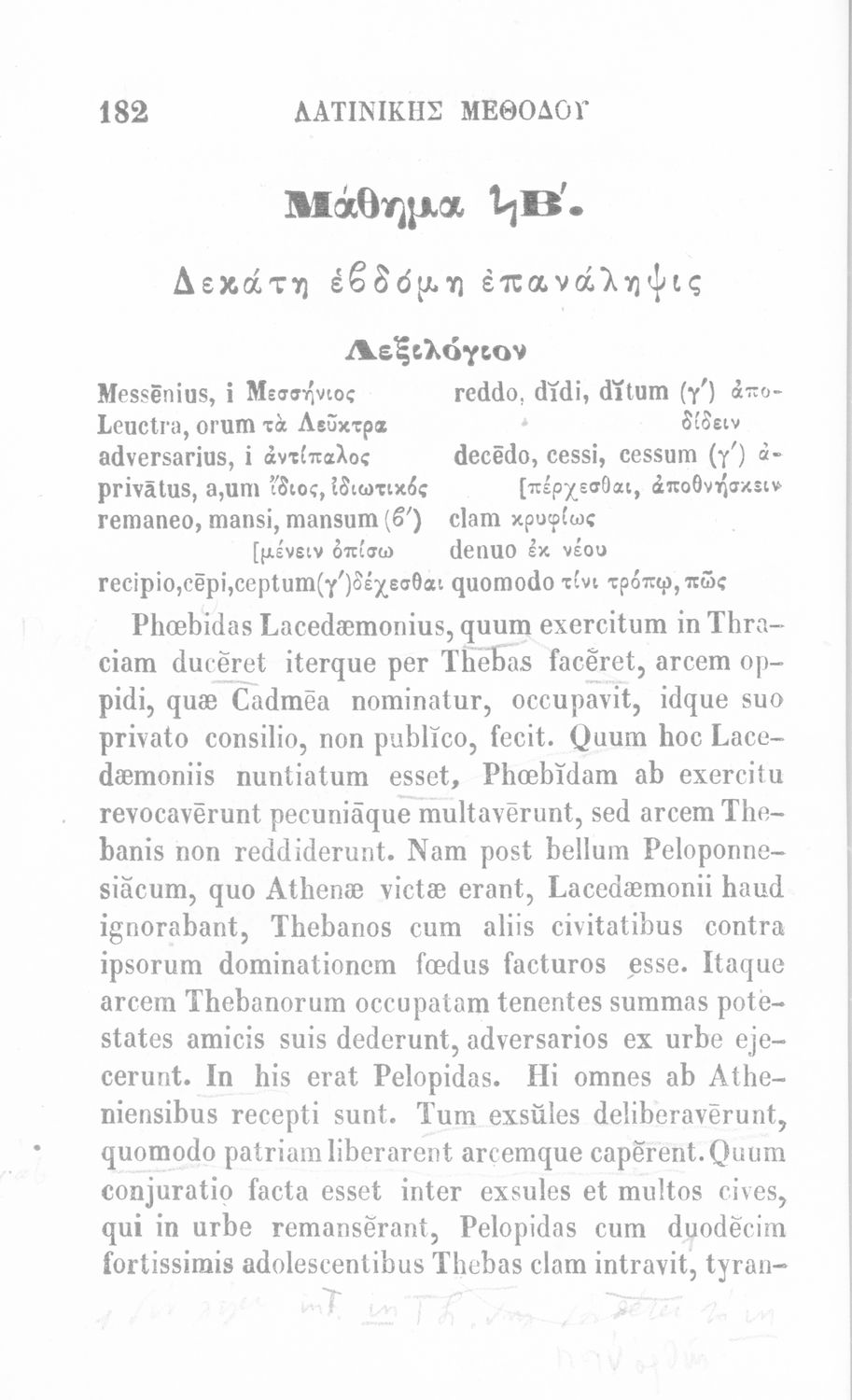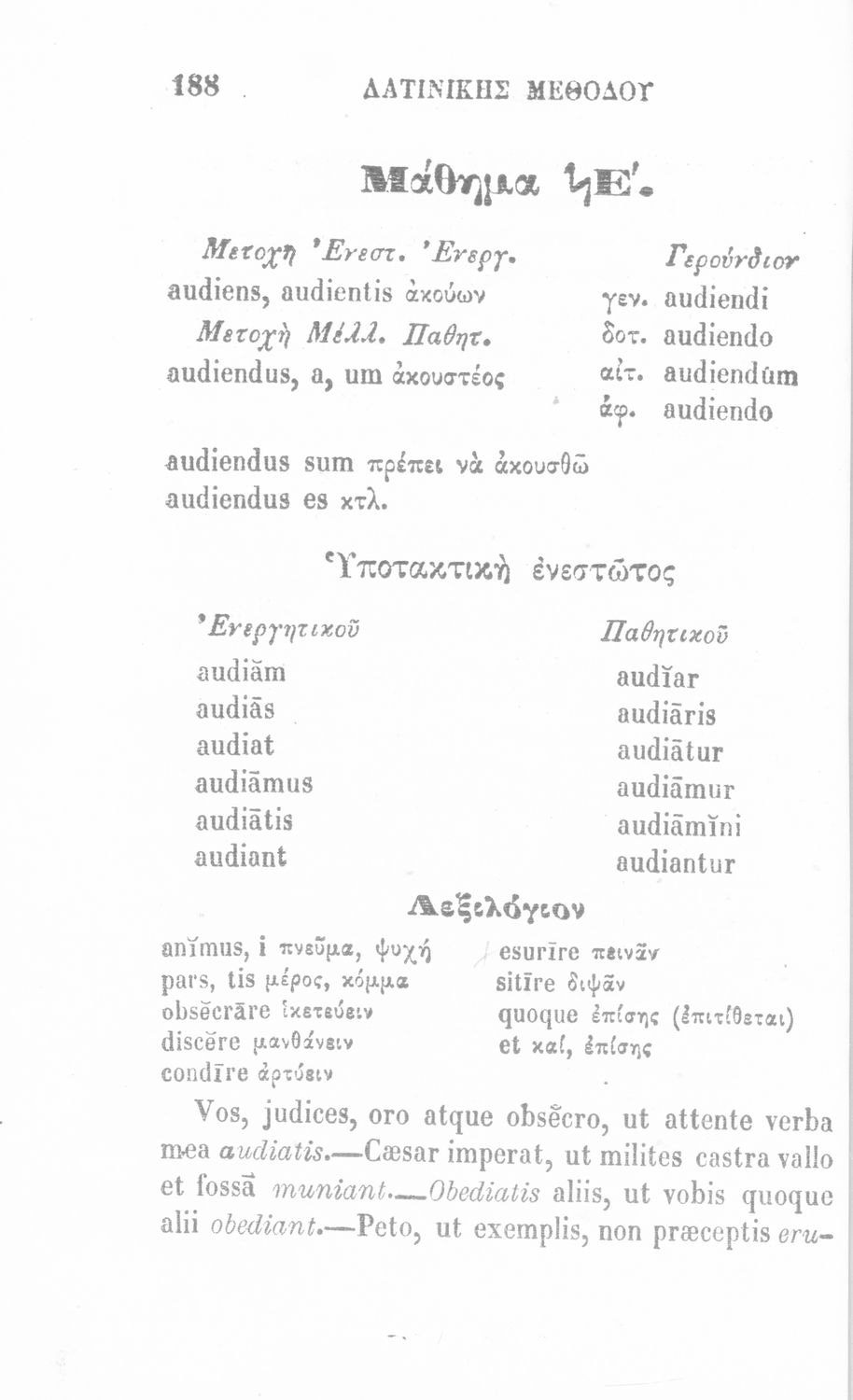 Σχολικό εγχειρίδιο Λατινικών που περιλαμβάνει γραμματική, συντακτικό, κείμενα και λεξιλόγιο.