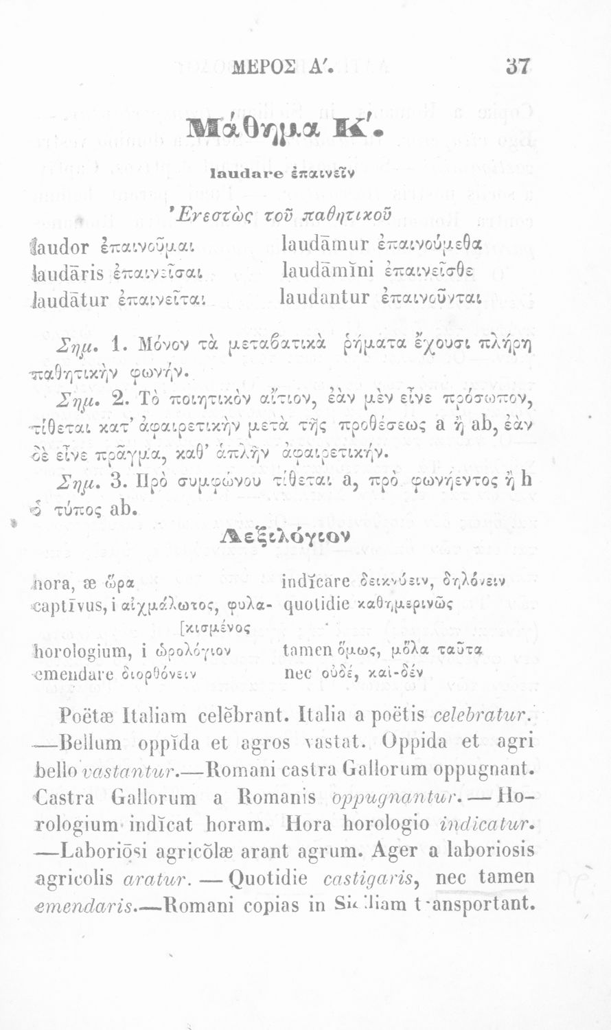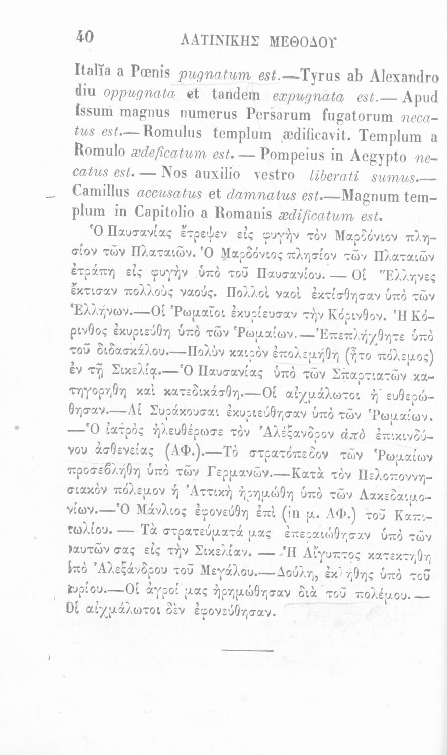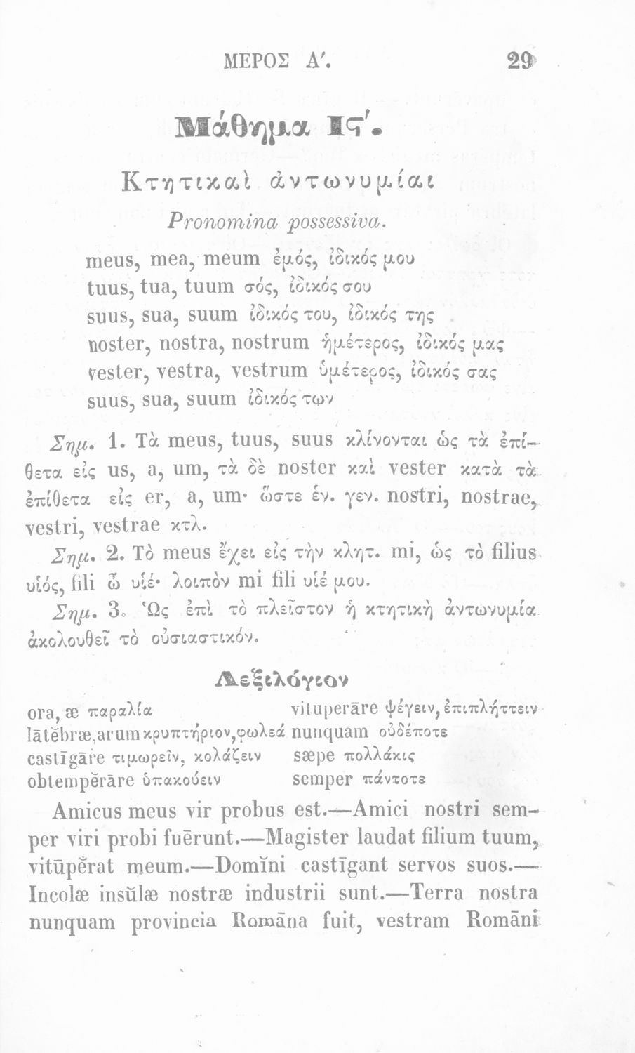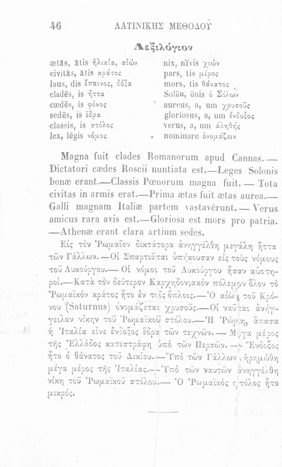 Σχολικό εγχειρίδιο Λατινικών που περιλαμβάνει γραμματική, συντακτικό, κείμενα και λεξιλόγιο.