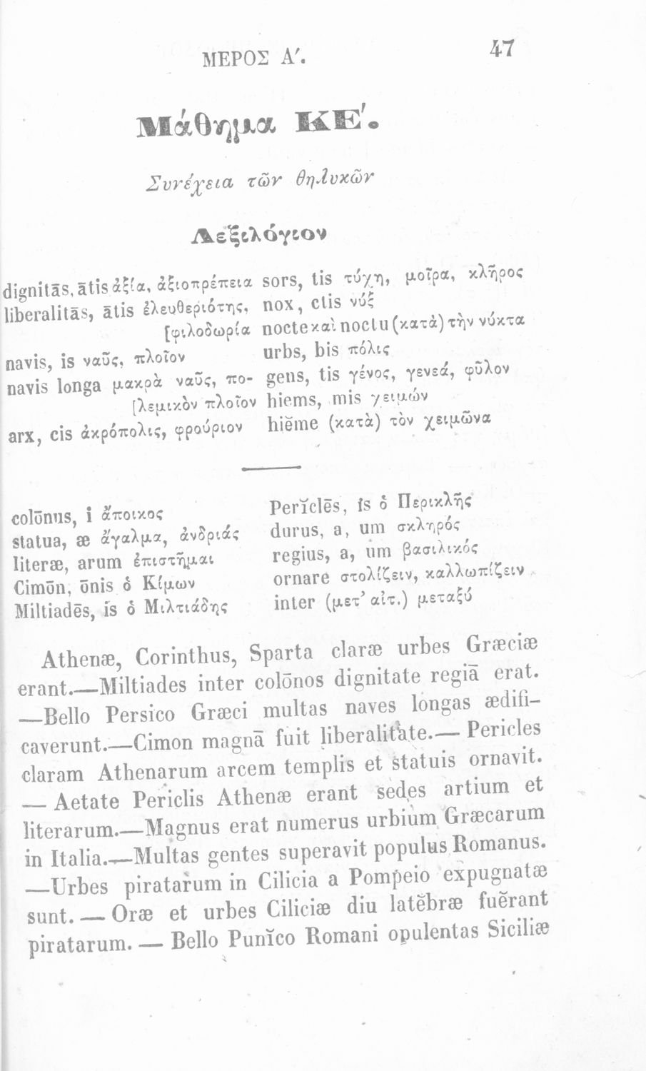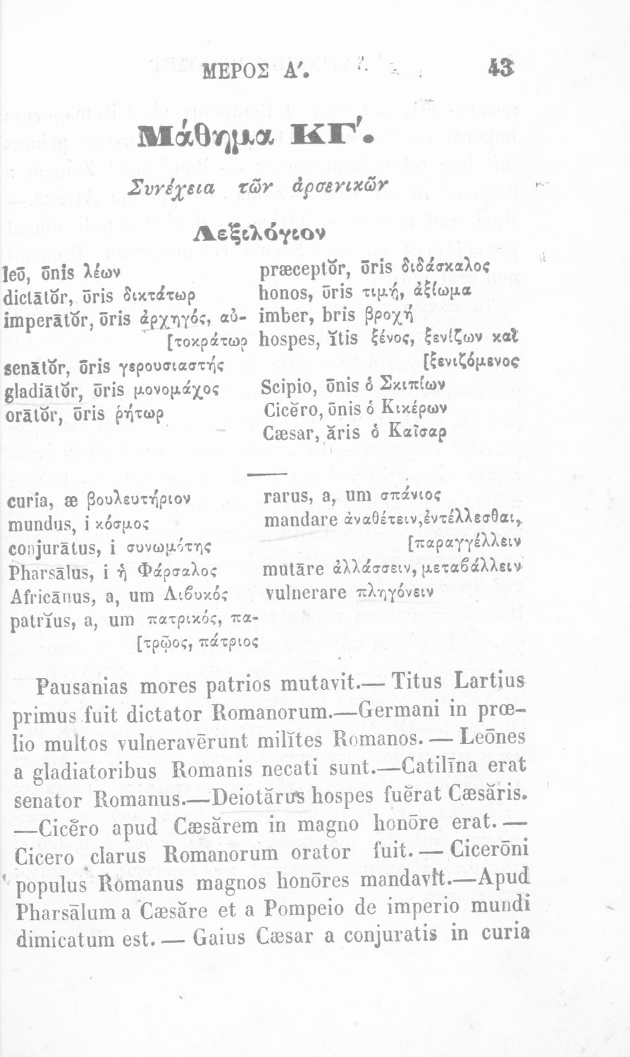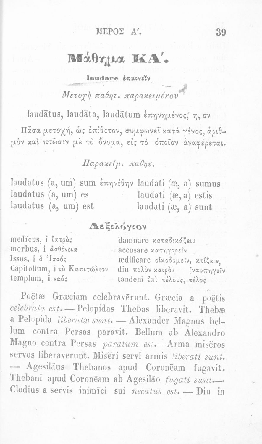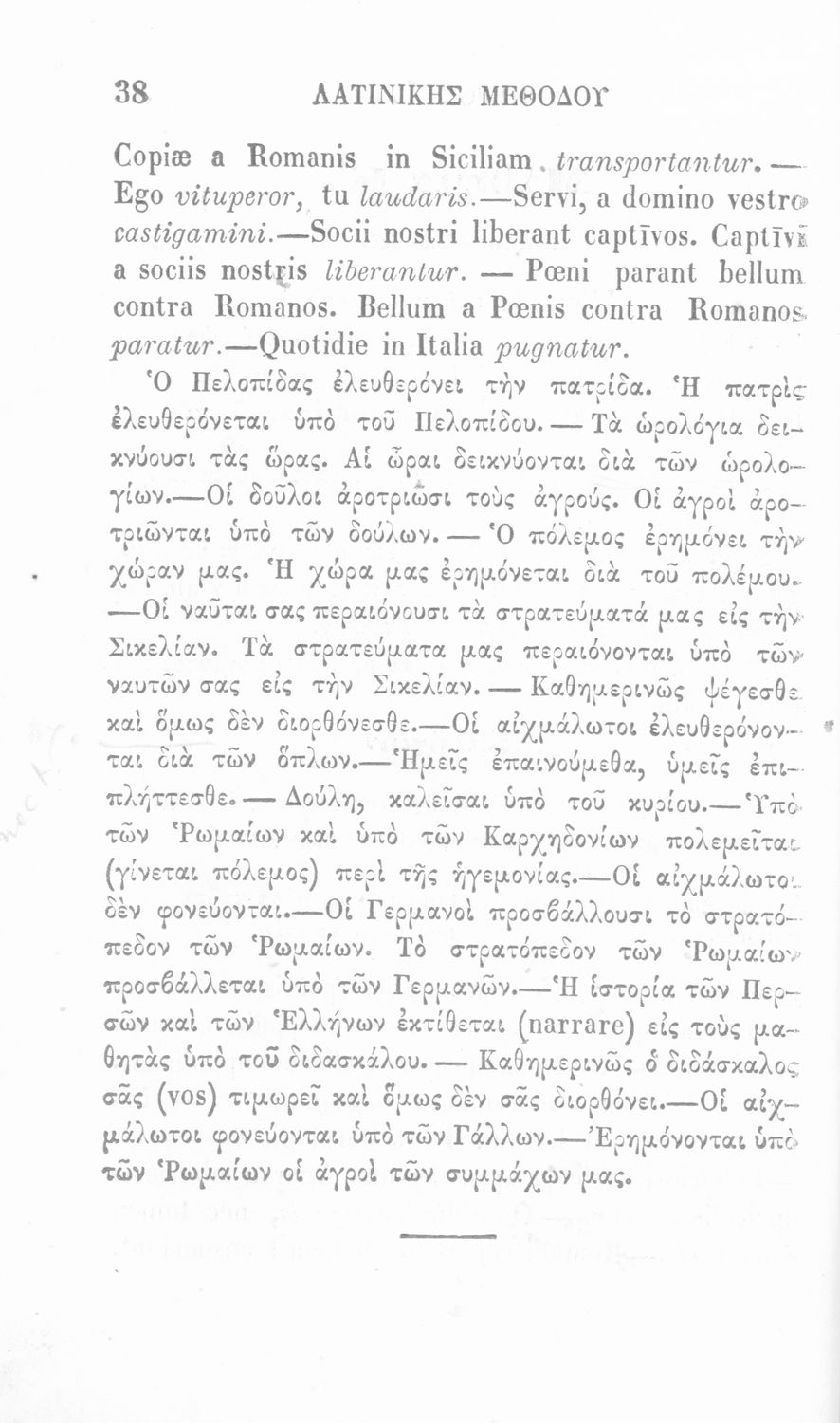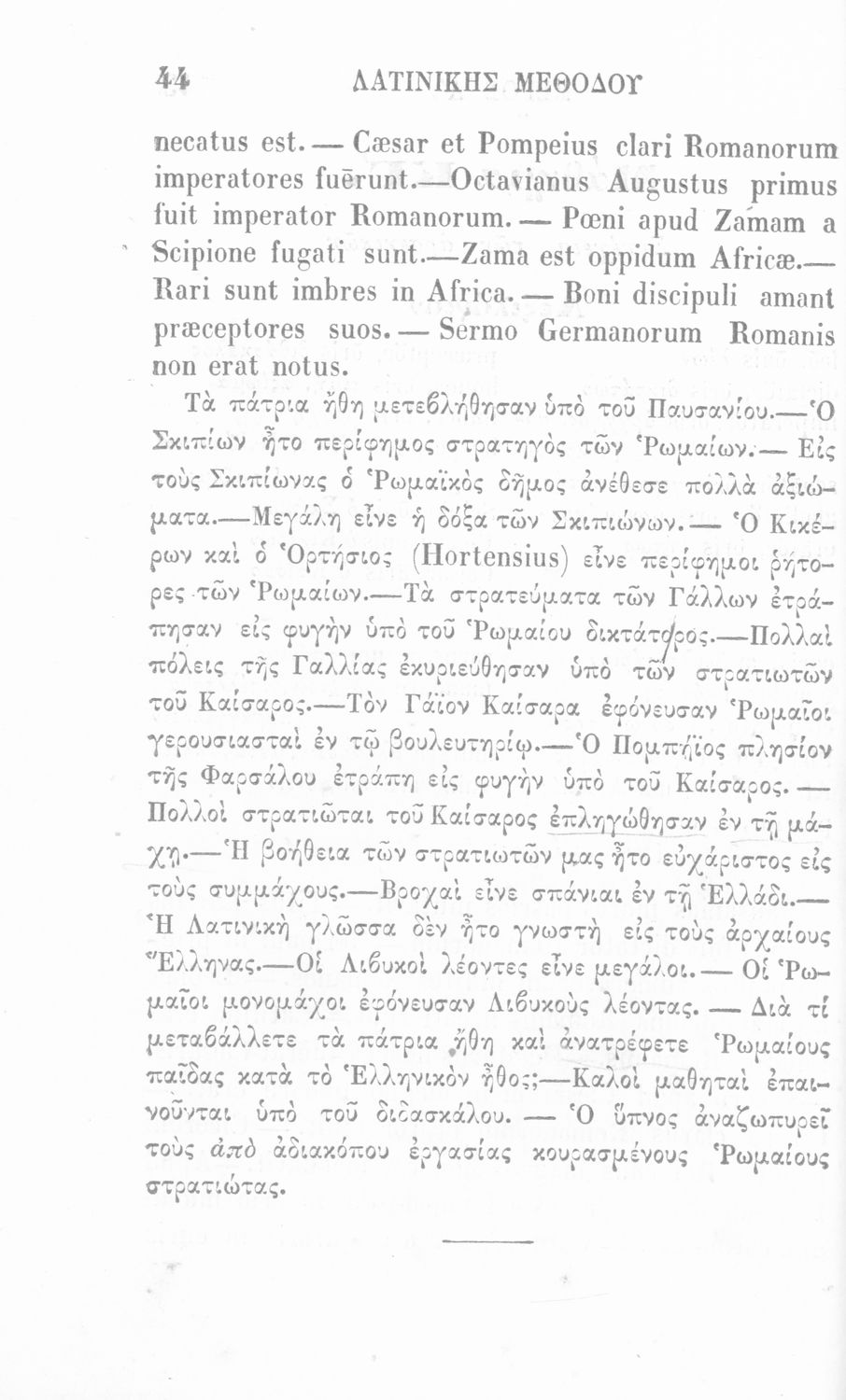 Σχολικό εγχειρίδιο Λατινικών που περιλαμβάνει γραμματική, συντακτικό, κείμενα και λεξιλόγιο.