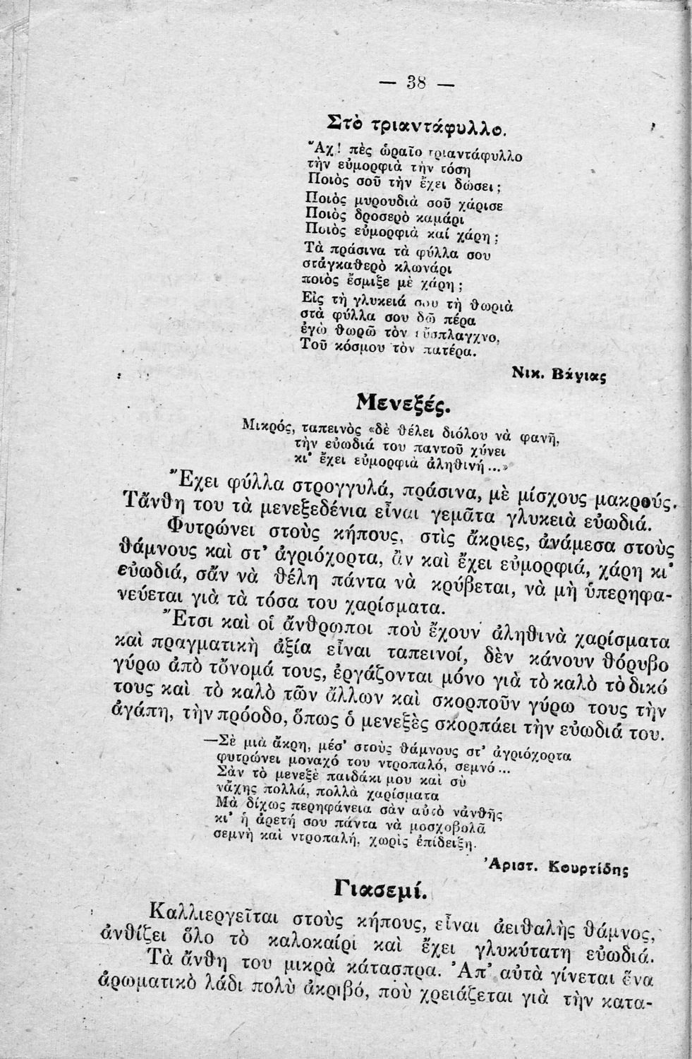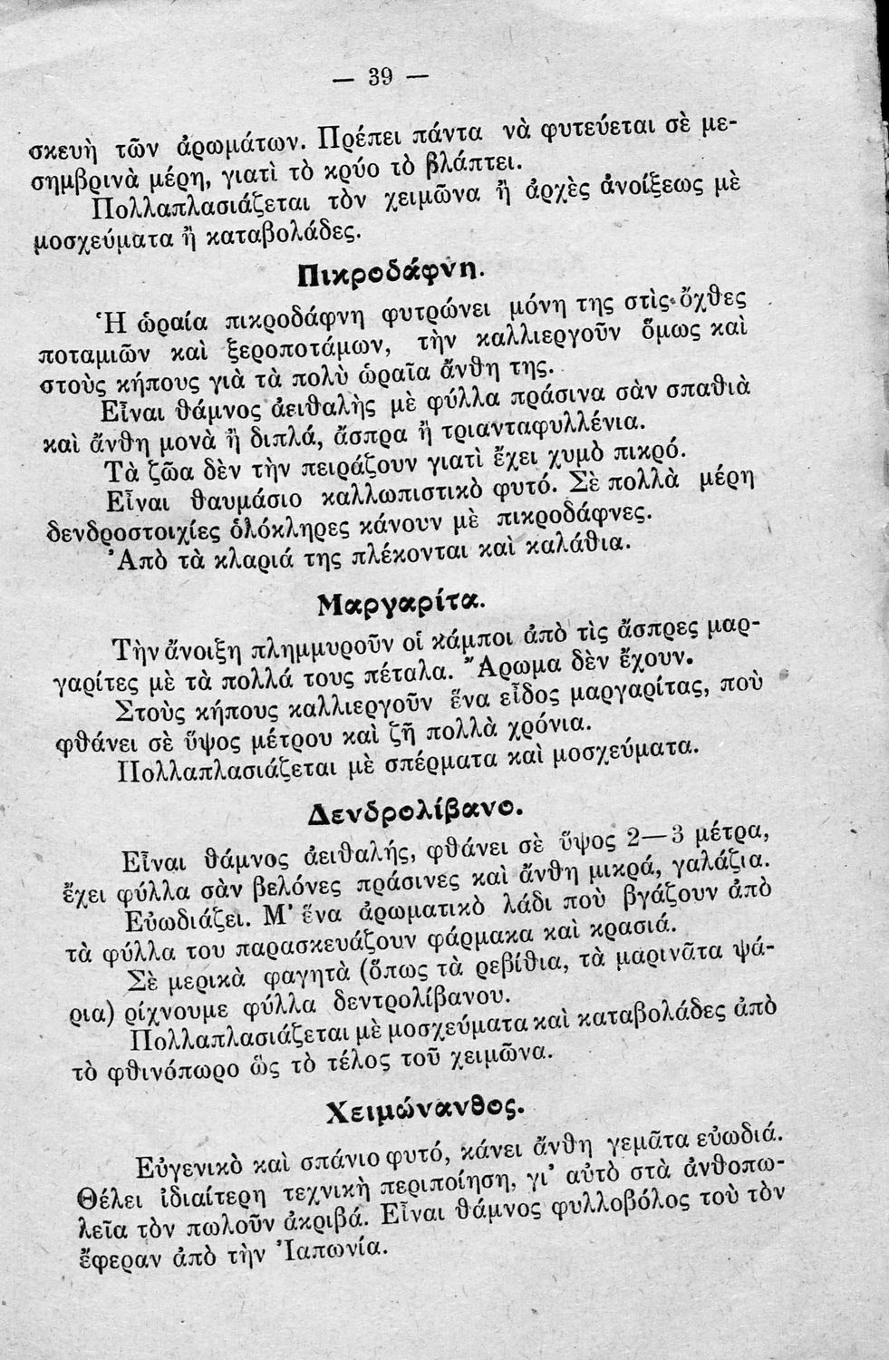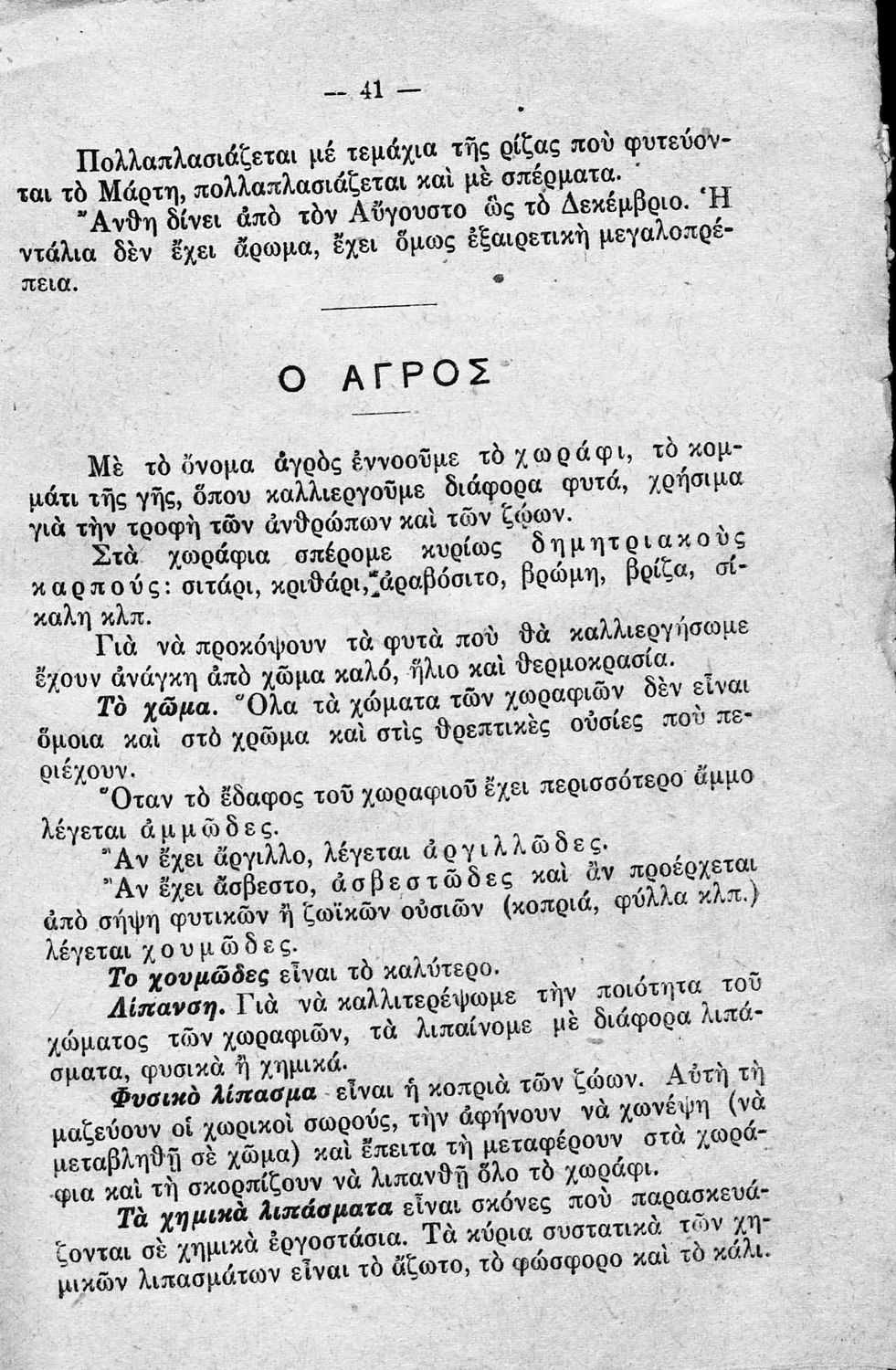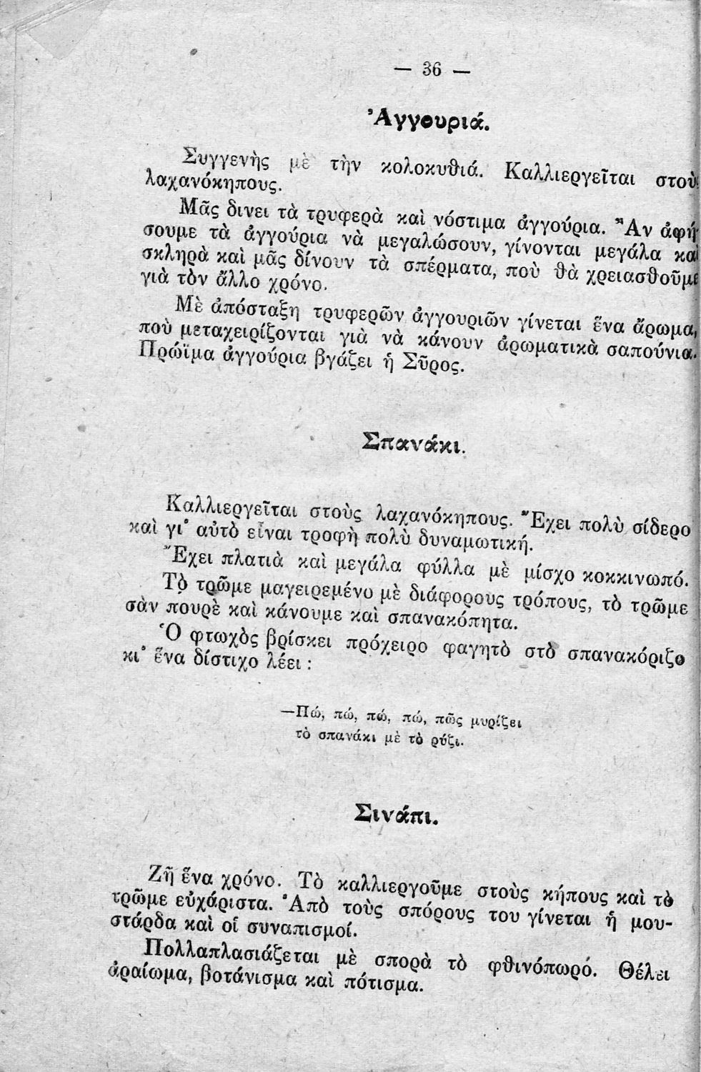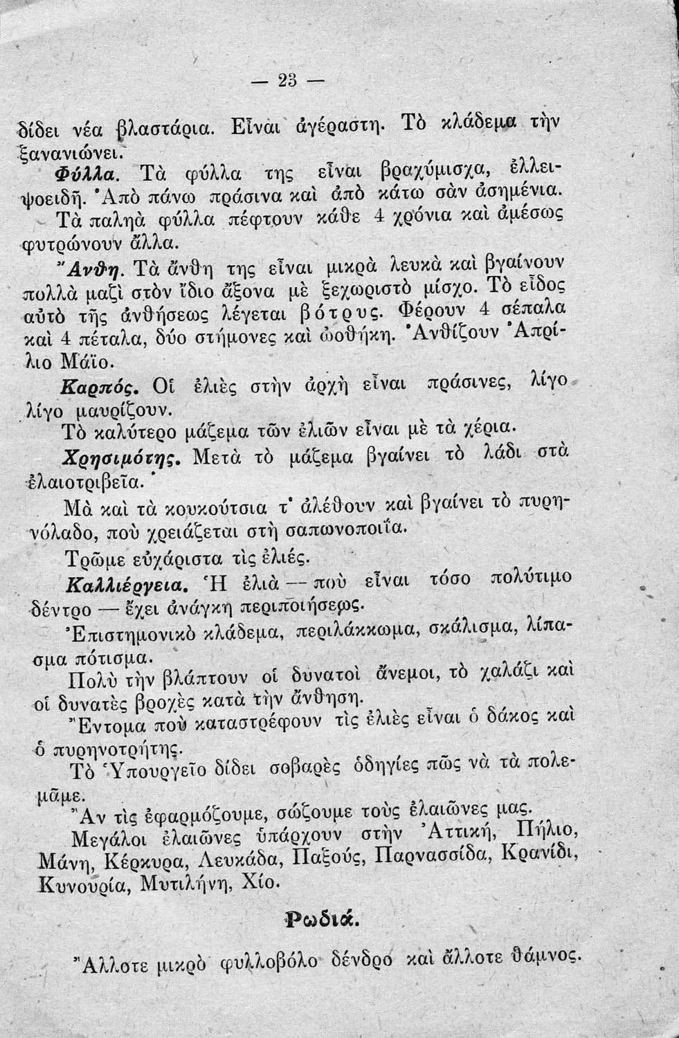 Βαθμίδα εκπαίδευσης: Πρωτοβάθμια Τάξη: Γ' Δημοτικού / Δ' Δημοτικού Μάθημα: Φυτολογία Γλώσσα: Καθαρεύουσα Παρουσίαση περιεχομένου: Μαθητικό βοήθημα Φυτολογίας Γ΄ και Δ΄ Δημοτικού που περιέχει βασικές γνώσεις για τα φυτά, που βρίσκονται στους κήπους των σπιτιών, στους αγρούς και τα φυτά της θάλασσας. |