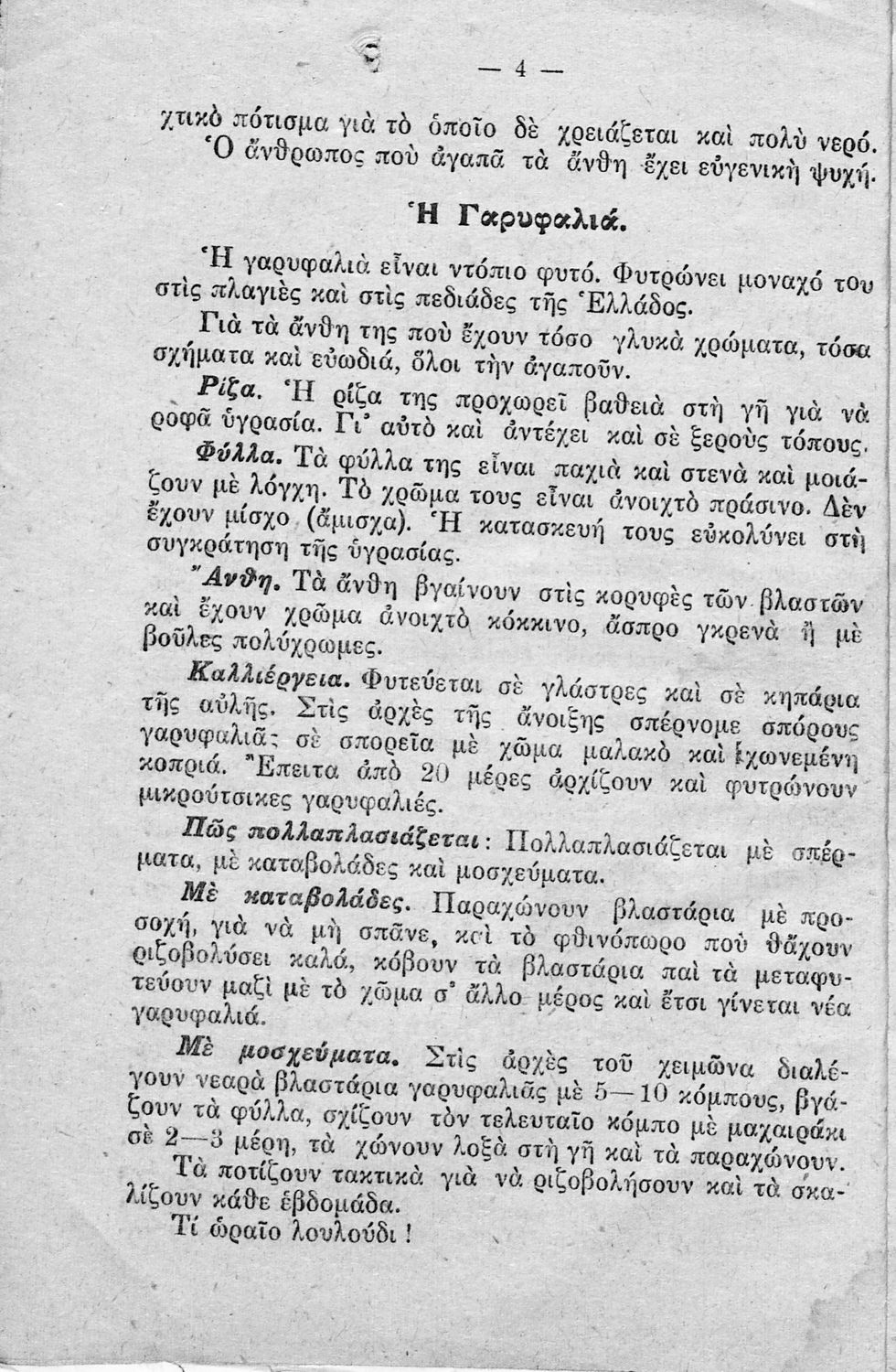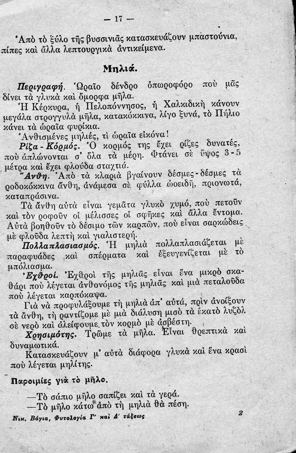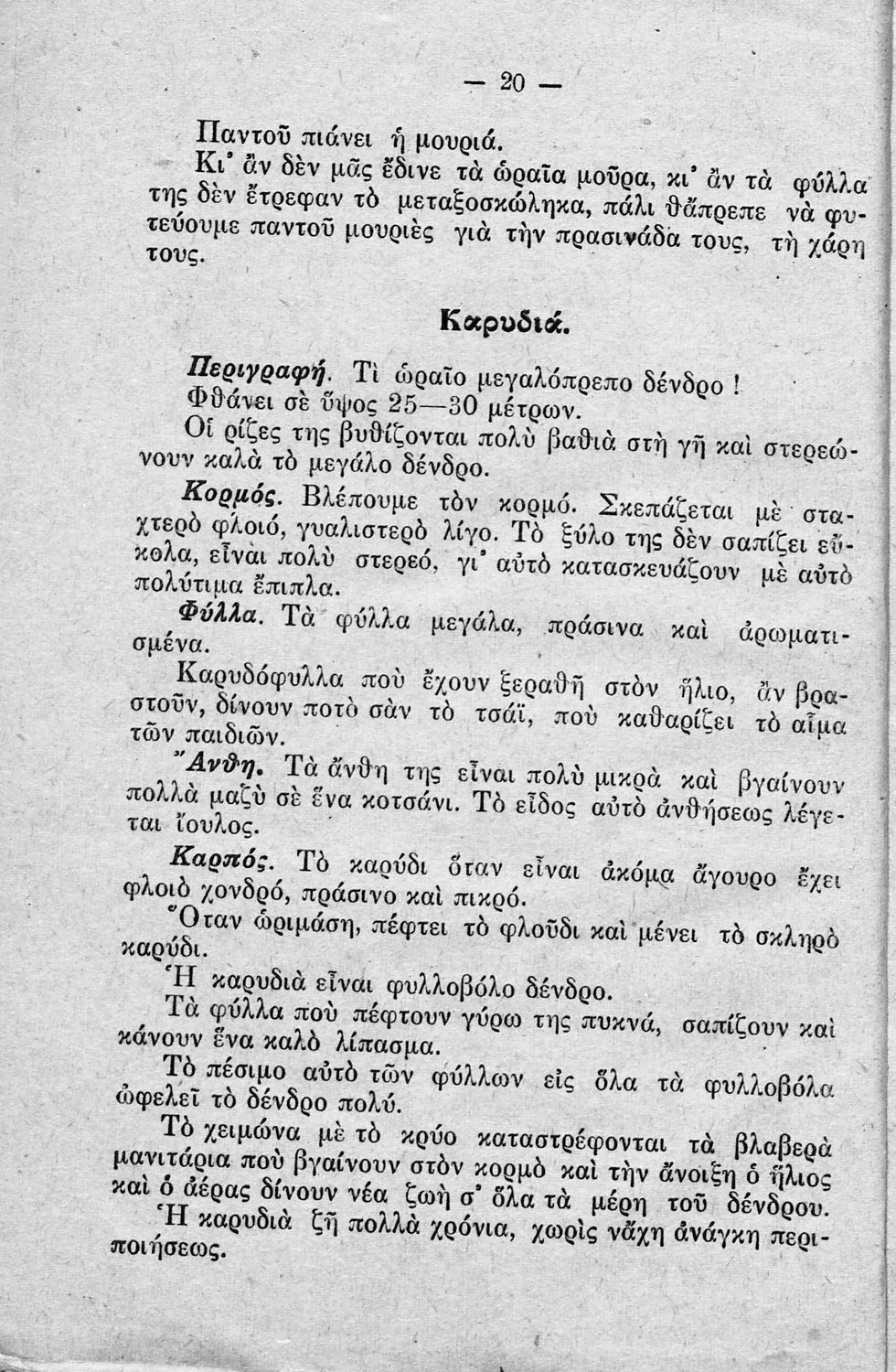 Βαθμίδα εκπαίδευσης: Πρωτοβάθμια Τάξη: Γ' Δημοτικού / Δ' Δημοτικού Μάθημα: Φυτολογία Γλώσσα: Καθαρεύουσα Παρουσίαση περιεχομένου: Μαθητικό βοήθημα Φυτολογίας Γ΄ και Δ΄ Δημοτικού που περιέχει βασικές γνώσεις για τα φυτά, που βρίσκονται στους κήπους των σπιτιών, στους αγρούς και τα φυτά της θάλασσας. |