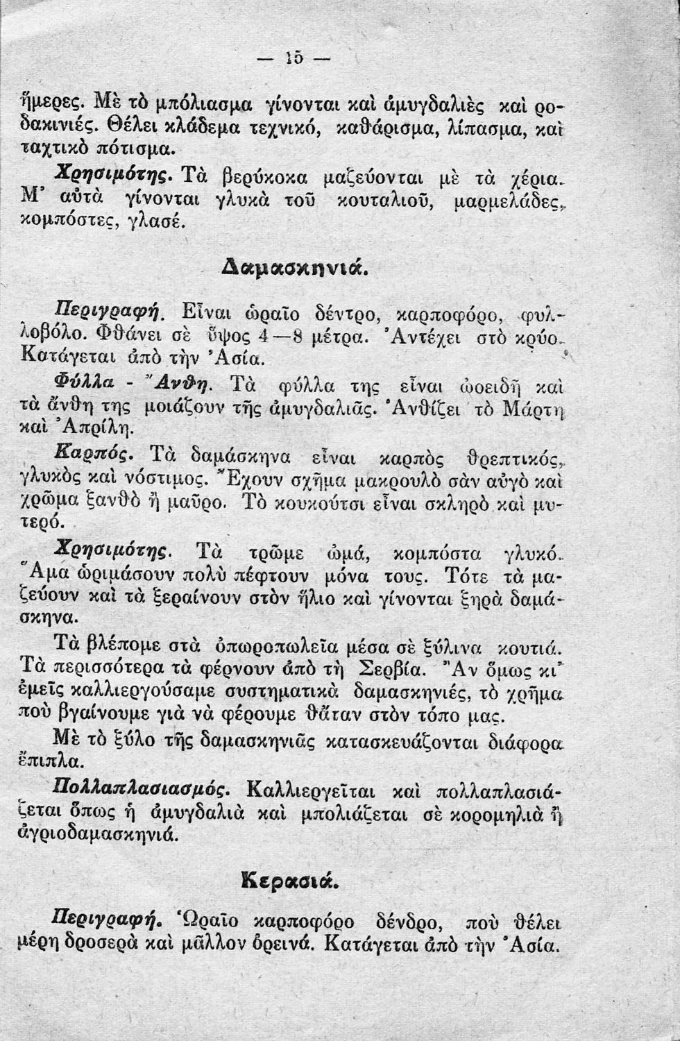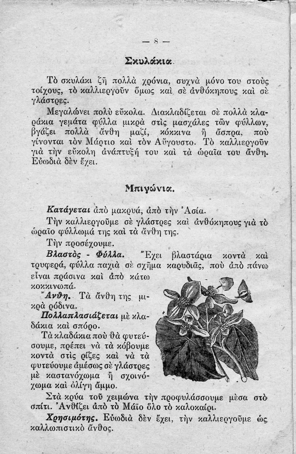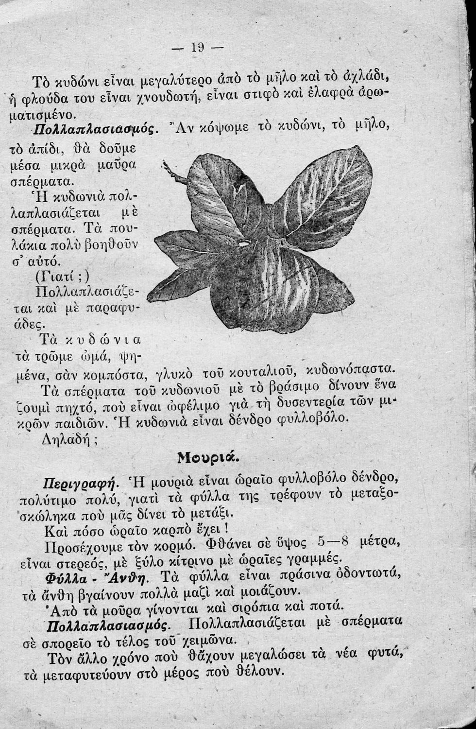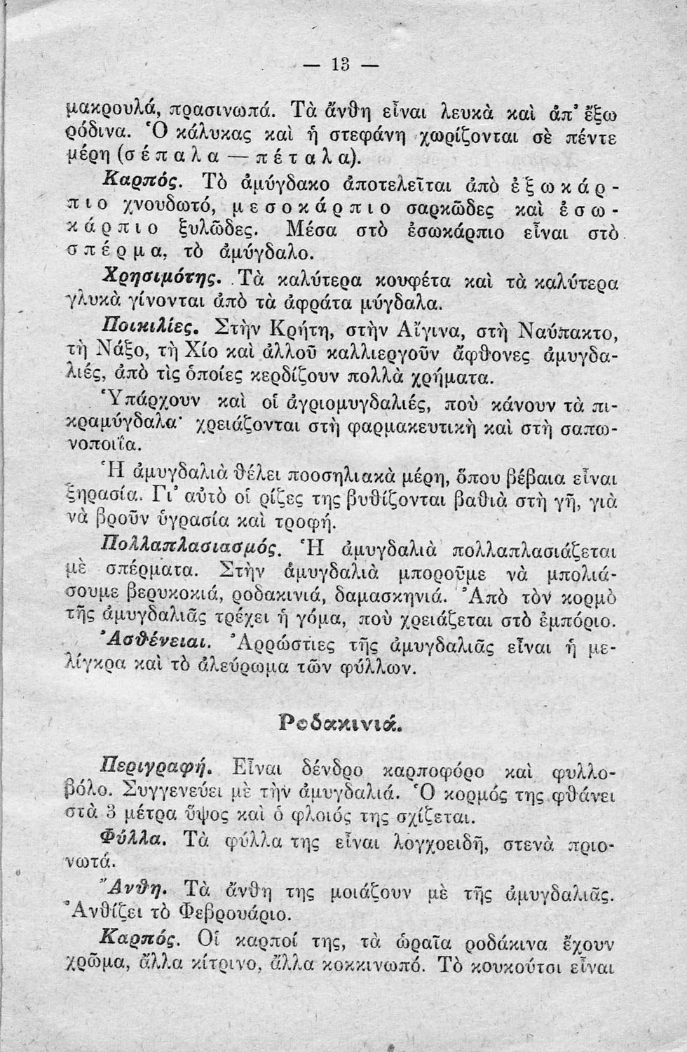 Βαθμίδα εκπαίδευσης: Πρωτοβάθμια Τάξη: Γ' Δημοτικού / Δ' Δημοτικού Μάθημα: Φυτολογία Γλώσσα: Καθαρεύουσα Παρουσίαση περιεχομένου: Μαθητικό βοήθημα Φυτολογίας Γ΄ και Δ΄ Δημοτικού που περιέχει βασικές γνώσεις για τα φυτά, που βρίσκονται στους κήπους των σπιτιών, στους αγρούς και τα φυτά της θάλασσας. |