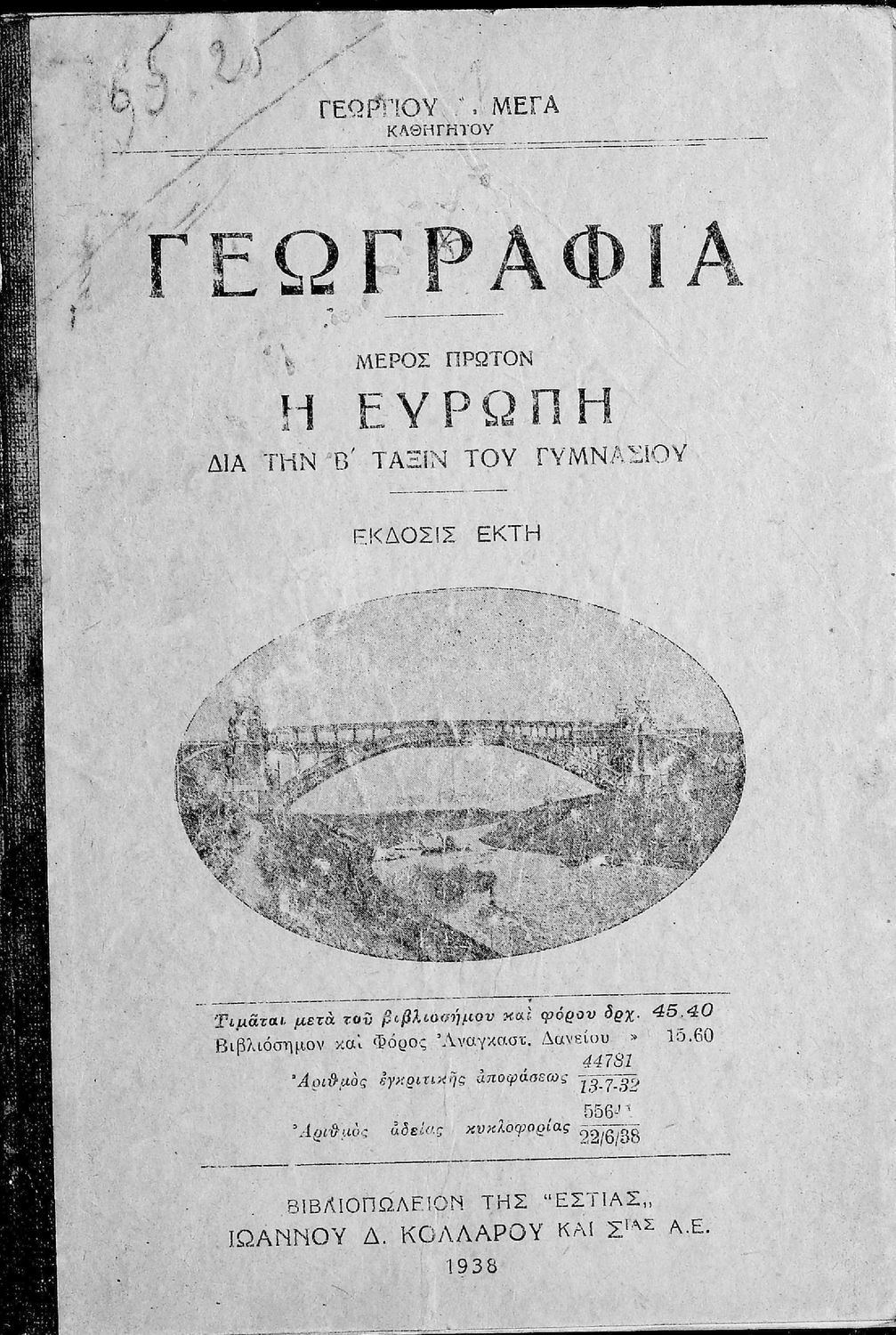 Κωδικός αναγνώρισης: 01-45017 Τίτλος: Γεωγραφία Μέρος πρώτον, Η Ευρώπη, δια την Β΄ τάξιν του Γυμνασίου Συγγραφέας: Γεώργιος Α. Μέγας Μέγεθος και υπόστρωμα: Σχολικό εγχειρίδιο, σκληρό εξώφυλλο, 168 σελίδες. Εικόνες (ασπρόμαυρες), χάρτες (ασπρόμαυροι). |