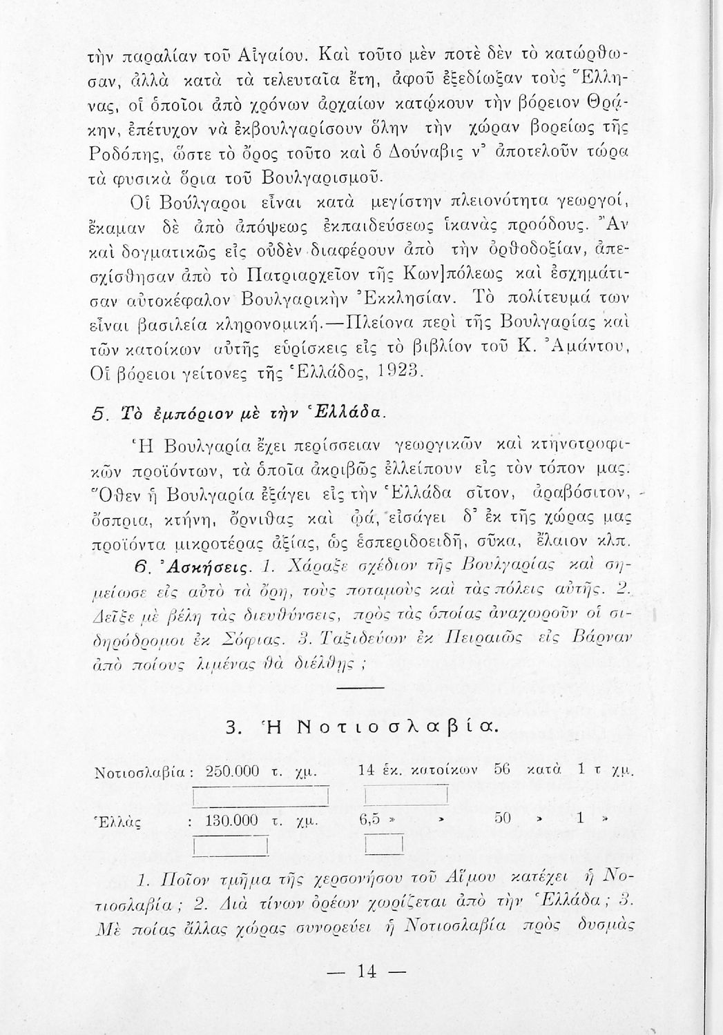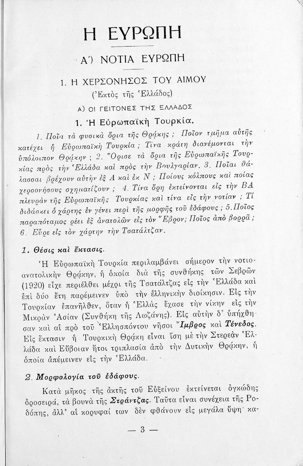Βαθμίδα εκπαίδευσης: Δευτεροβάθμια Τάξη: Β' Γυμνασίου Μάθημα: Γεωγραφία Γλώσσα: Απλή καθαρεύουσα Παρουσίαση περιεχομένου: Σχολικό εγχειρίδιο Γεωγραφίας Β' Γυμνασίου που εξετάζει την Ευρώπη και τα κράτη της από γεωφυσική, πολιτική και οικονομική άποψη. Γίνεται ειδική αναφορά στις εμπορικές σχέσεις των ευρωπαϊκών κρατών με την Ελλάδα. |